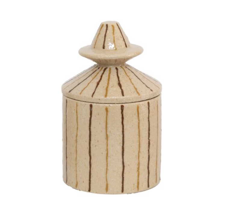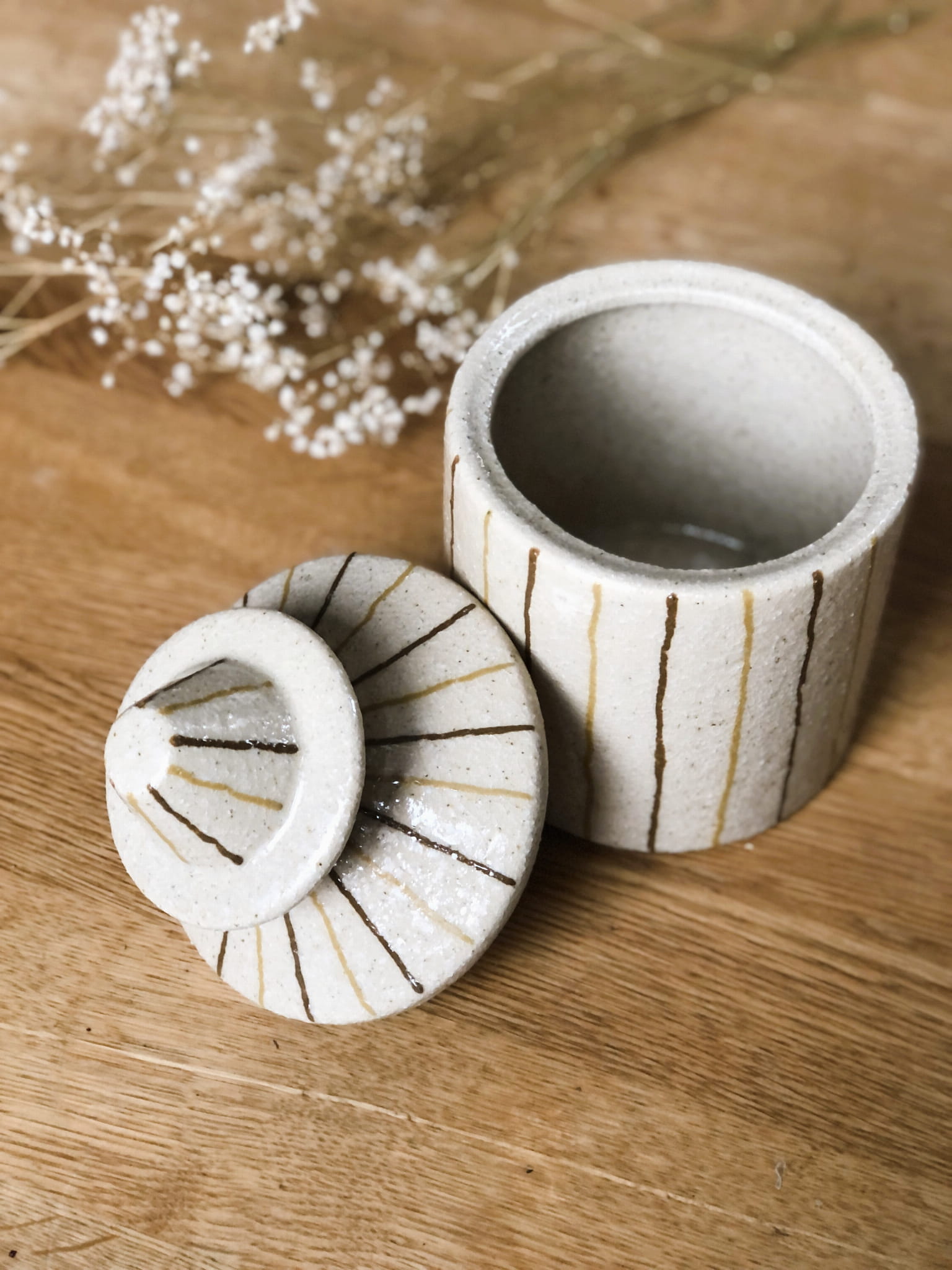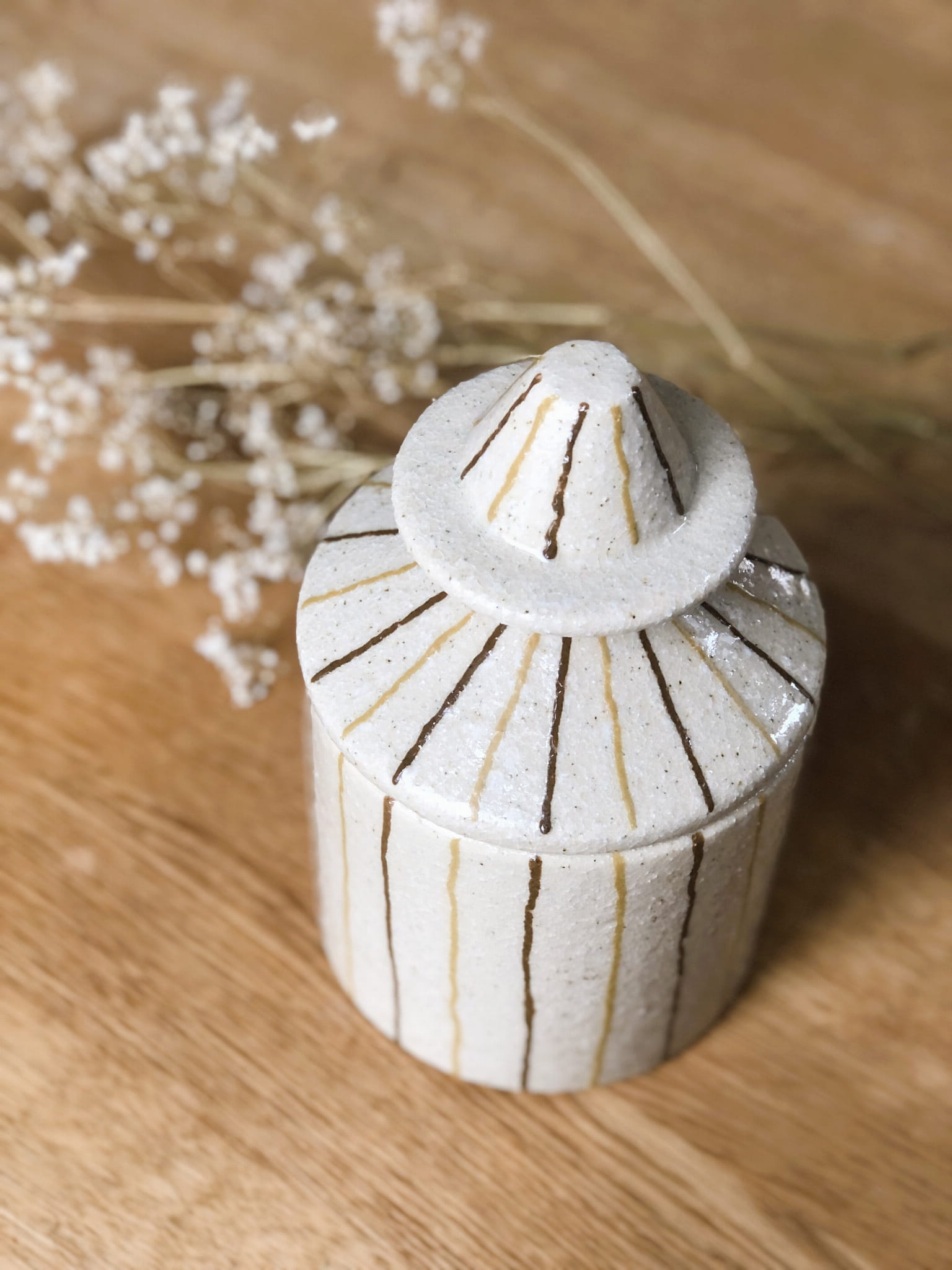 Dekoracyjny pojemnik ceramiczny z wieczkiem - paski