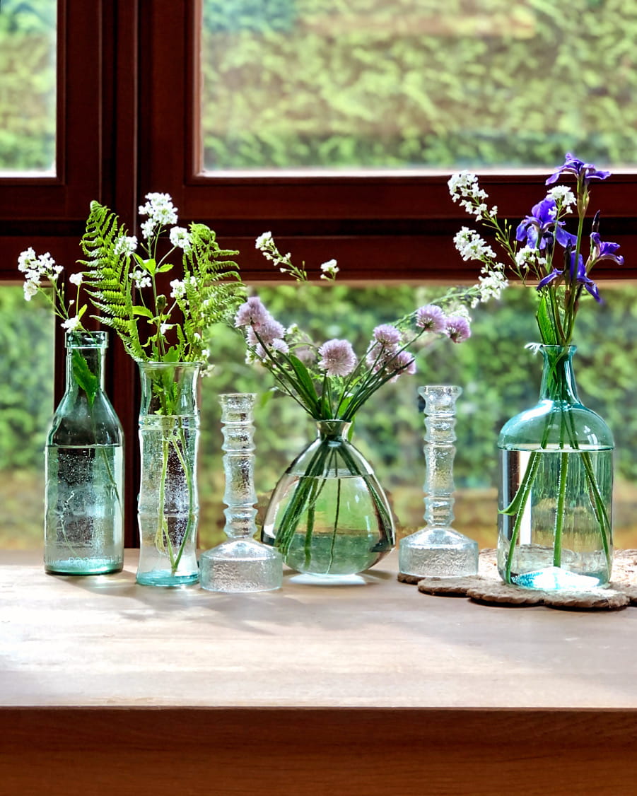 Butelka o pięknym kształcie i zielonkawym odcieniu. Prosty, ponadczasowy design. Będzie pięknie się prezentować w każdym wnętrzu.