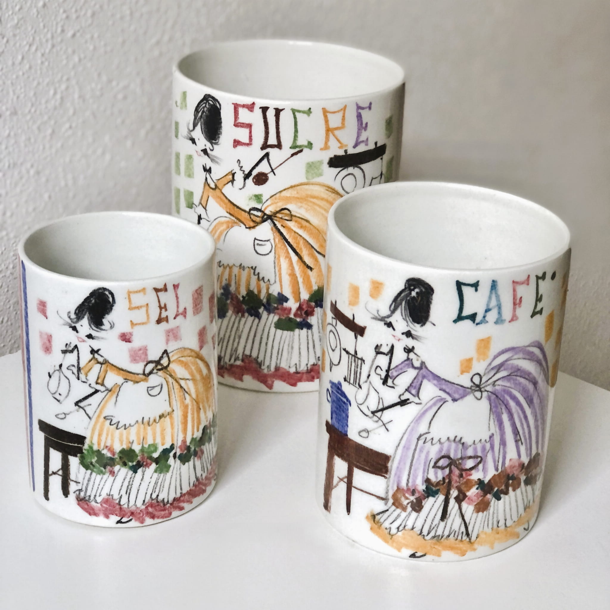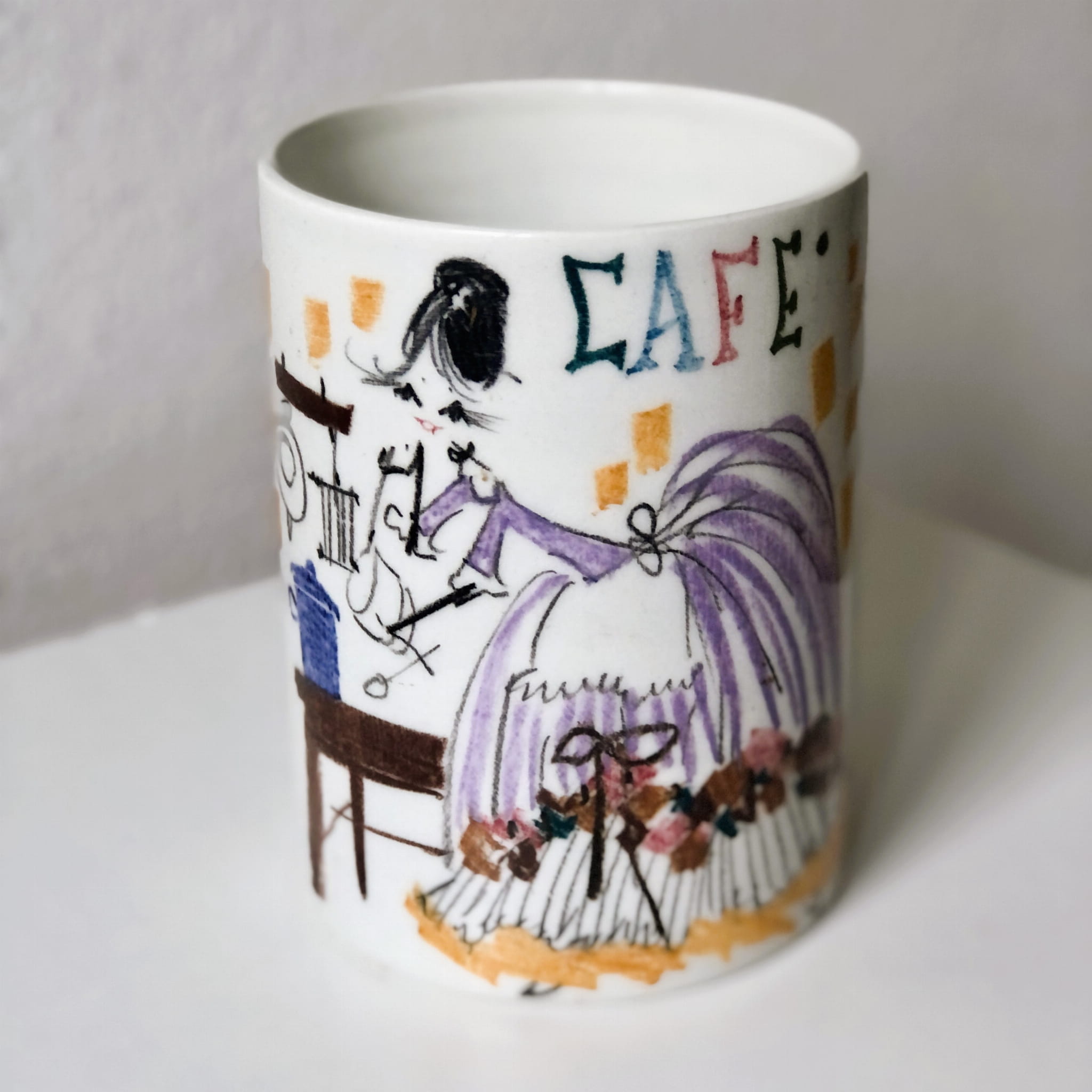 Pojemnik wykonany w stylu estetyki mody lat 50./60., trochę w duchu ilustracji modowej.