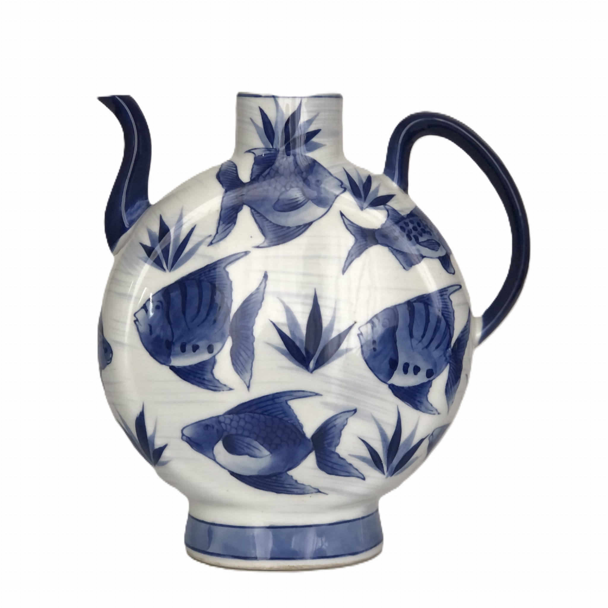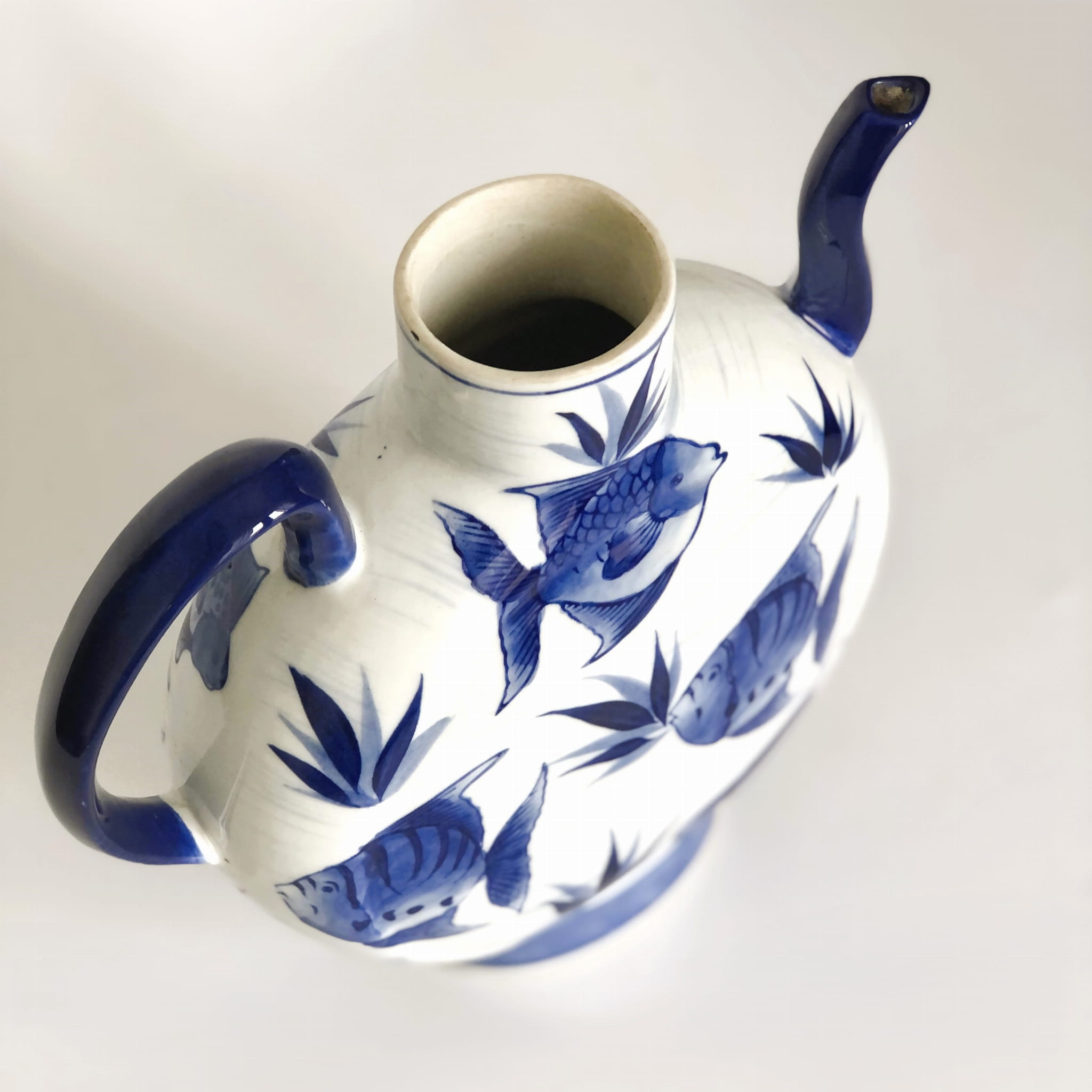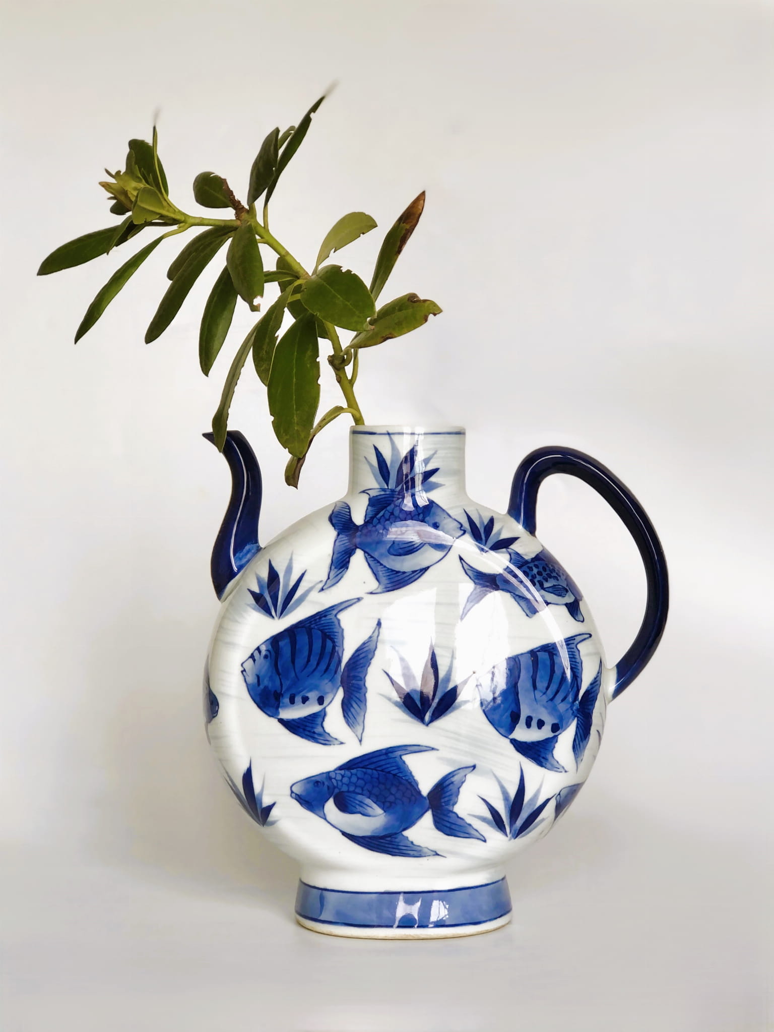 Ceramiczny wazon w kształcie imbryka, wzór ryby
