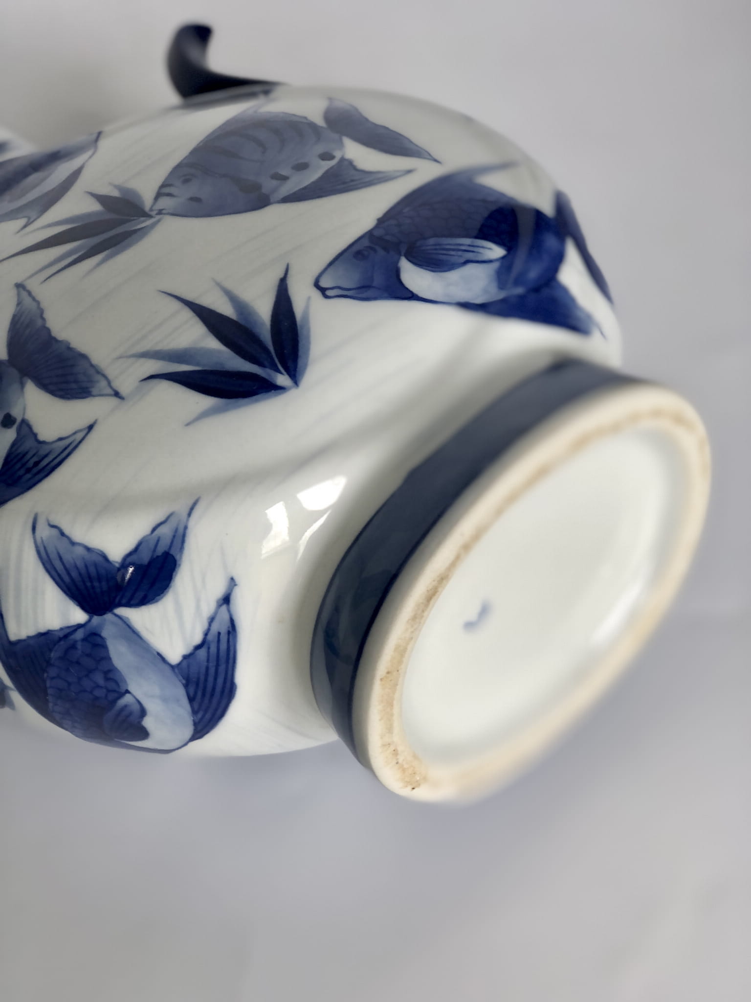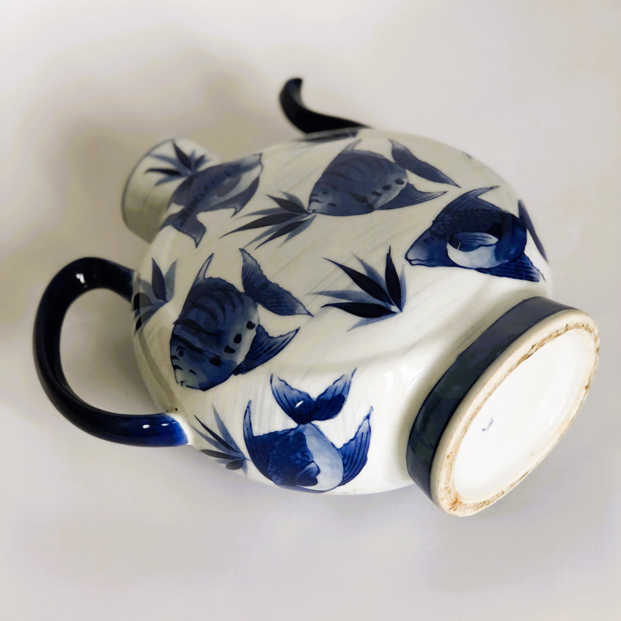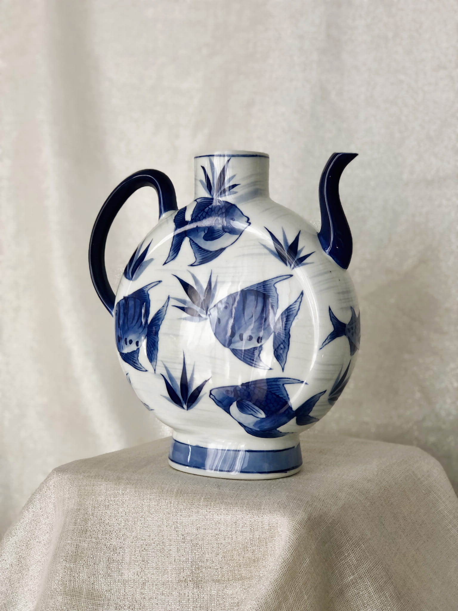Ceramiczny wazon w kształcie imbryka, wzór ryby