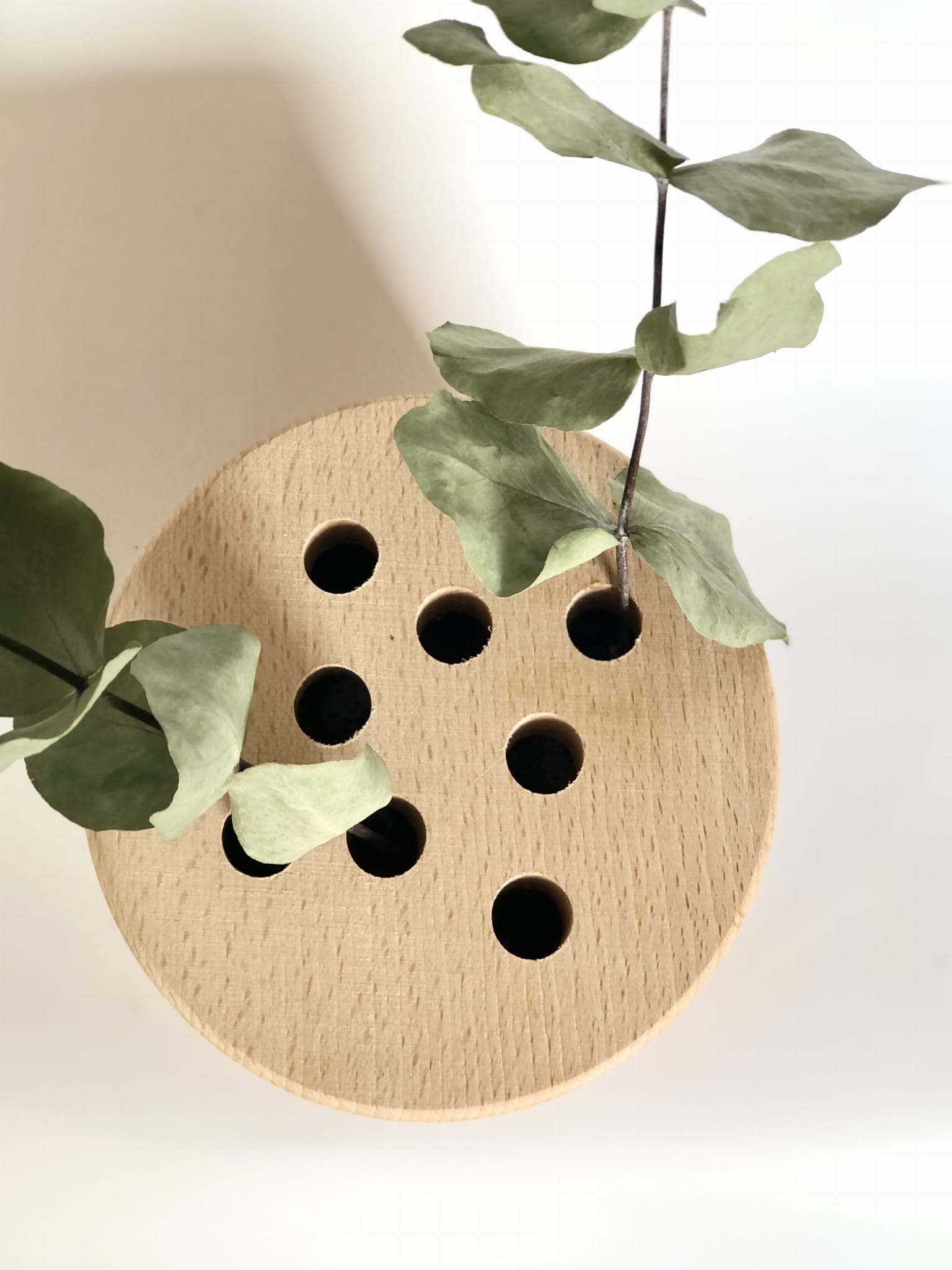 w drewnianej nakładce, łatwiej ułożyć roślinną kompozycję.
