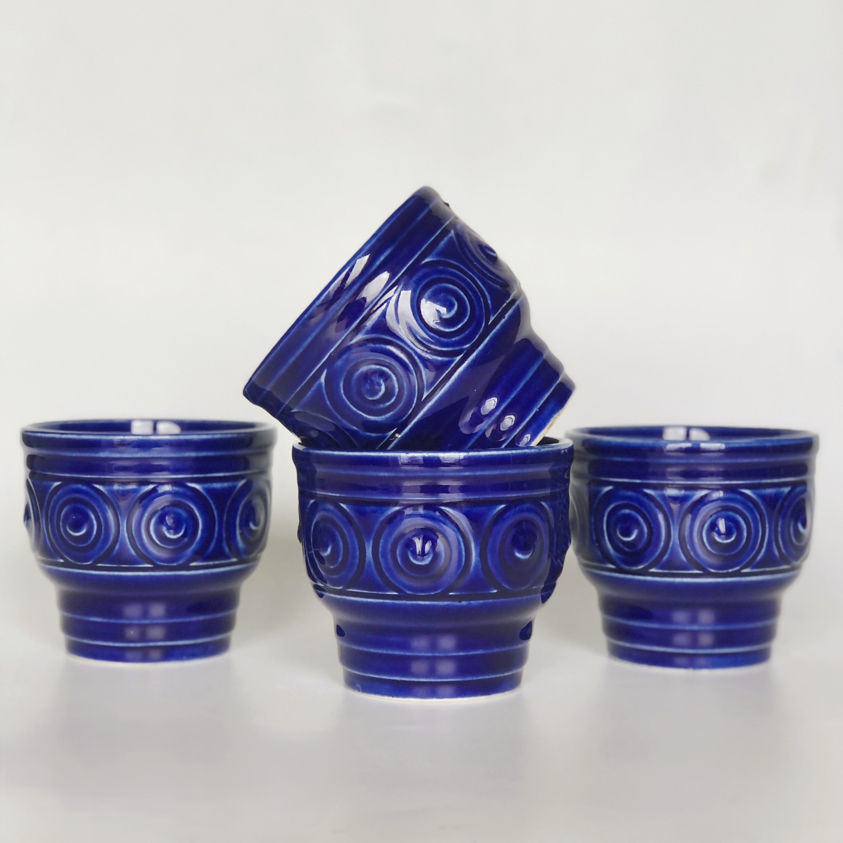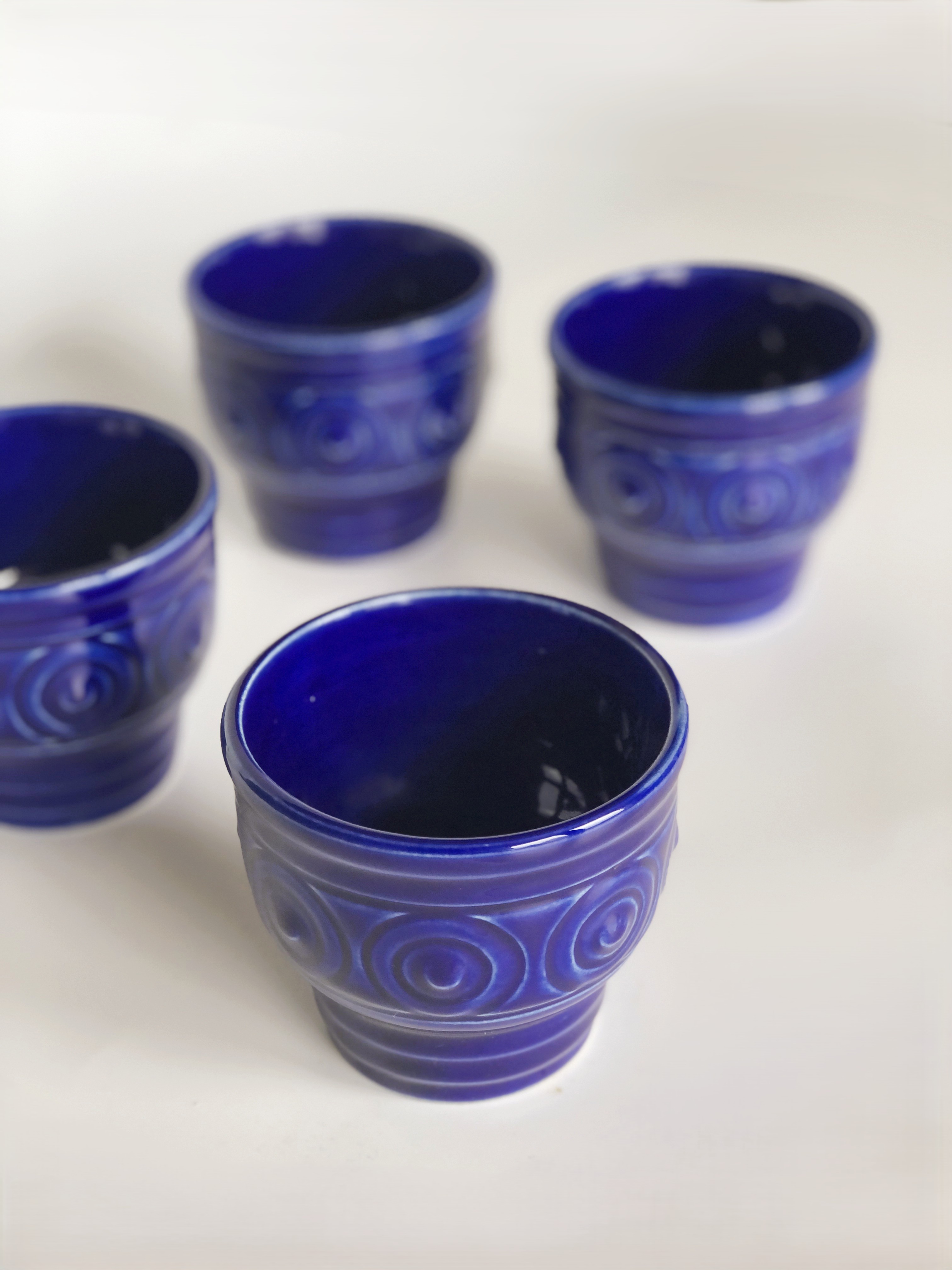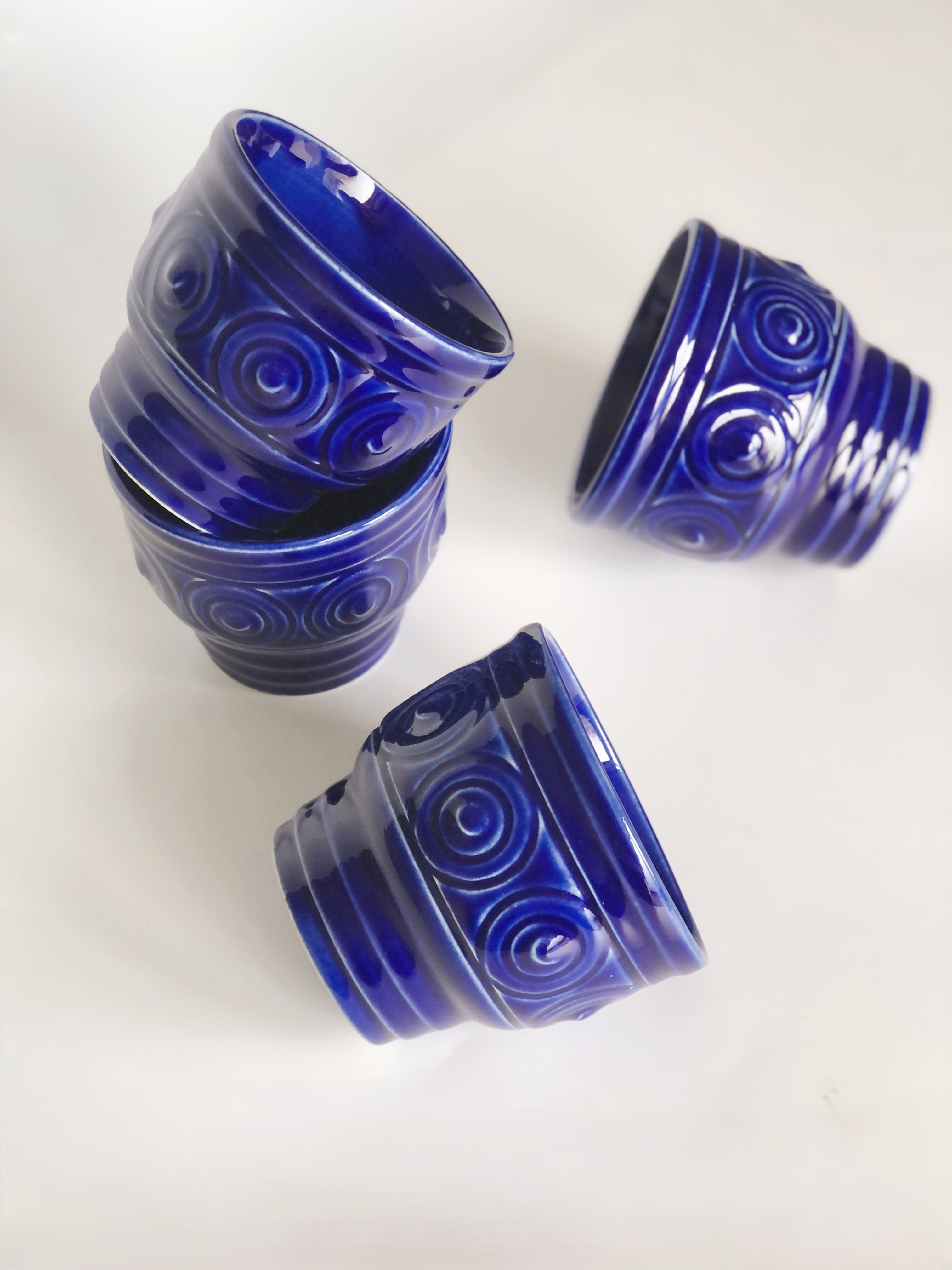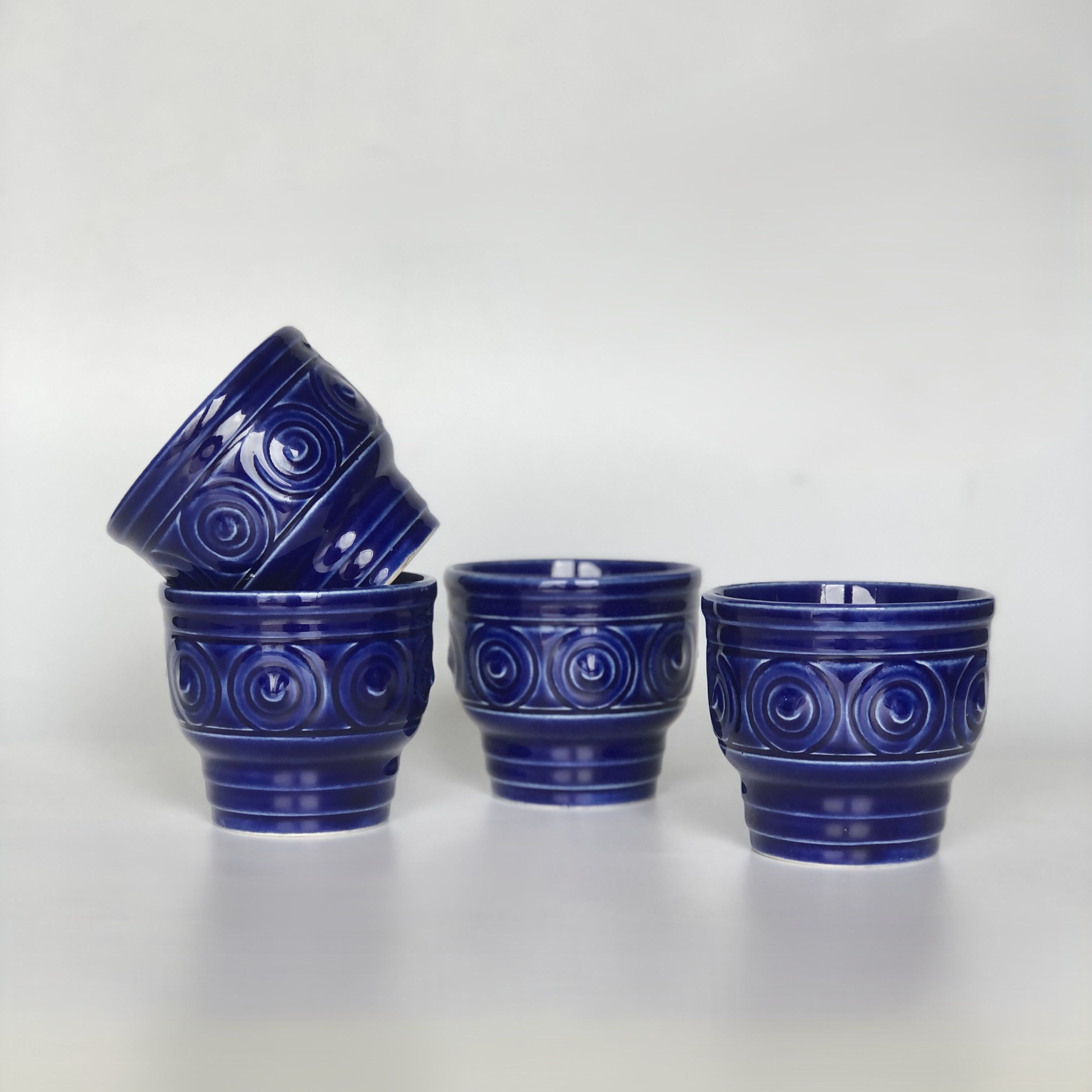 Kubki ceramiczne, zestaw 4 sztuk, design GDR - kobaltowe szkliwo.