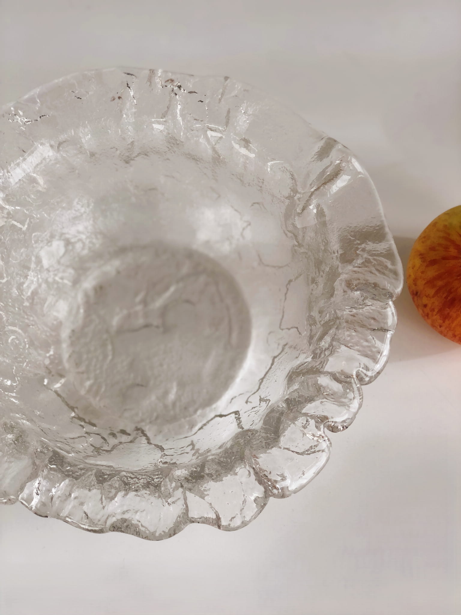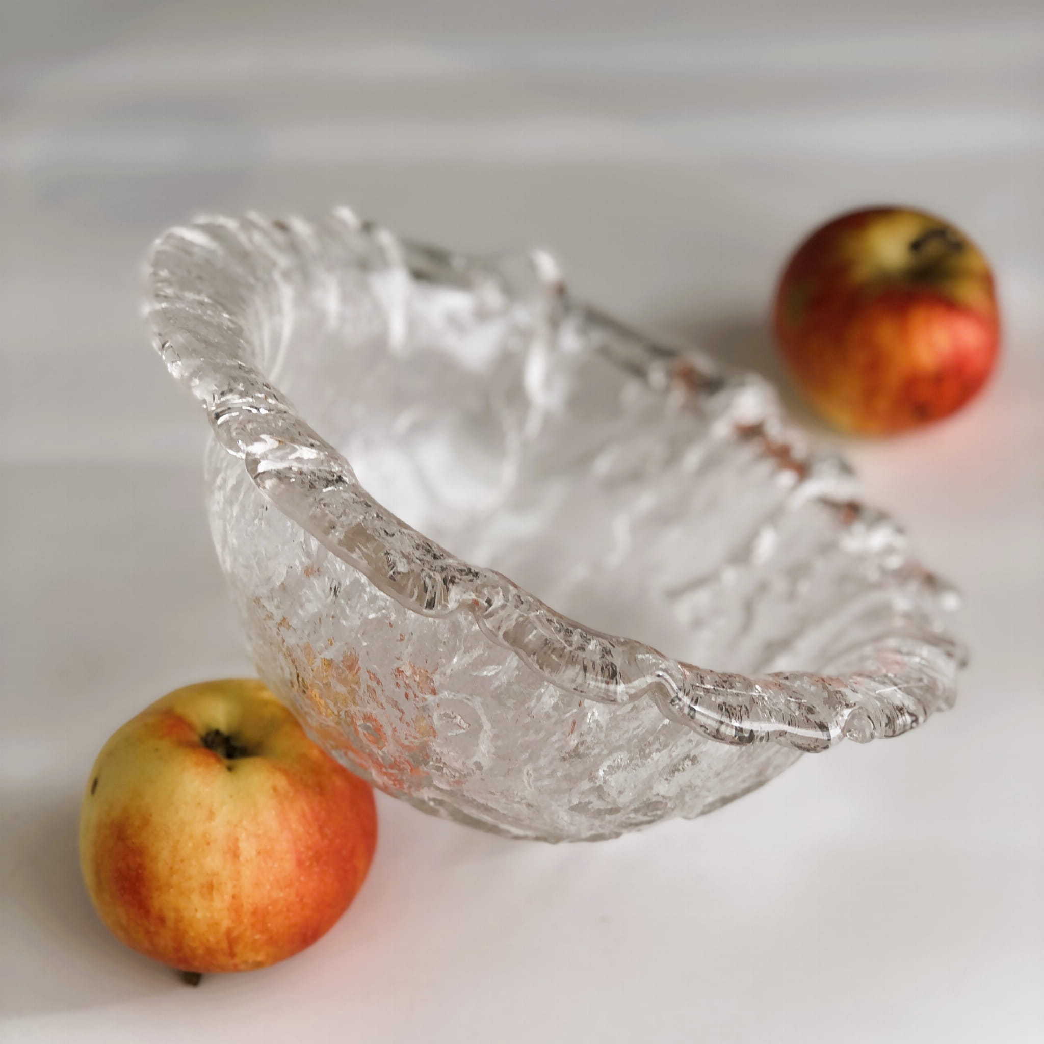 Przepiękna, artystyczna misa z kryształowego szkła, inspirowana lodowcem w stylu mid-century, skandynawski modernizm.