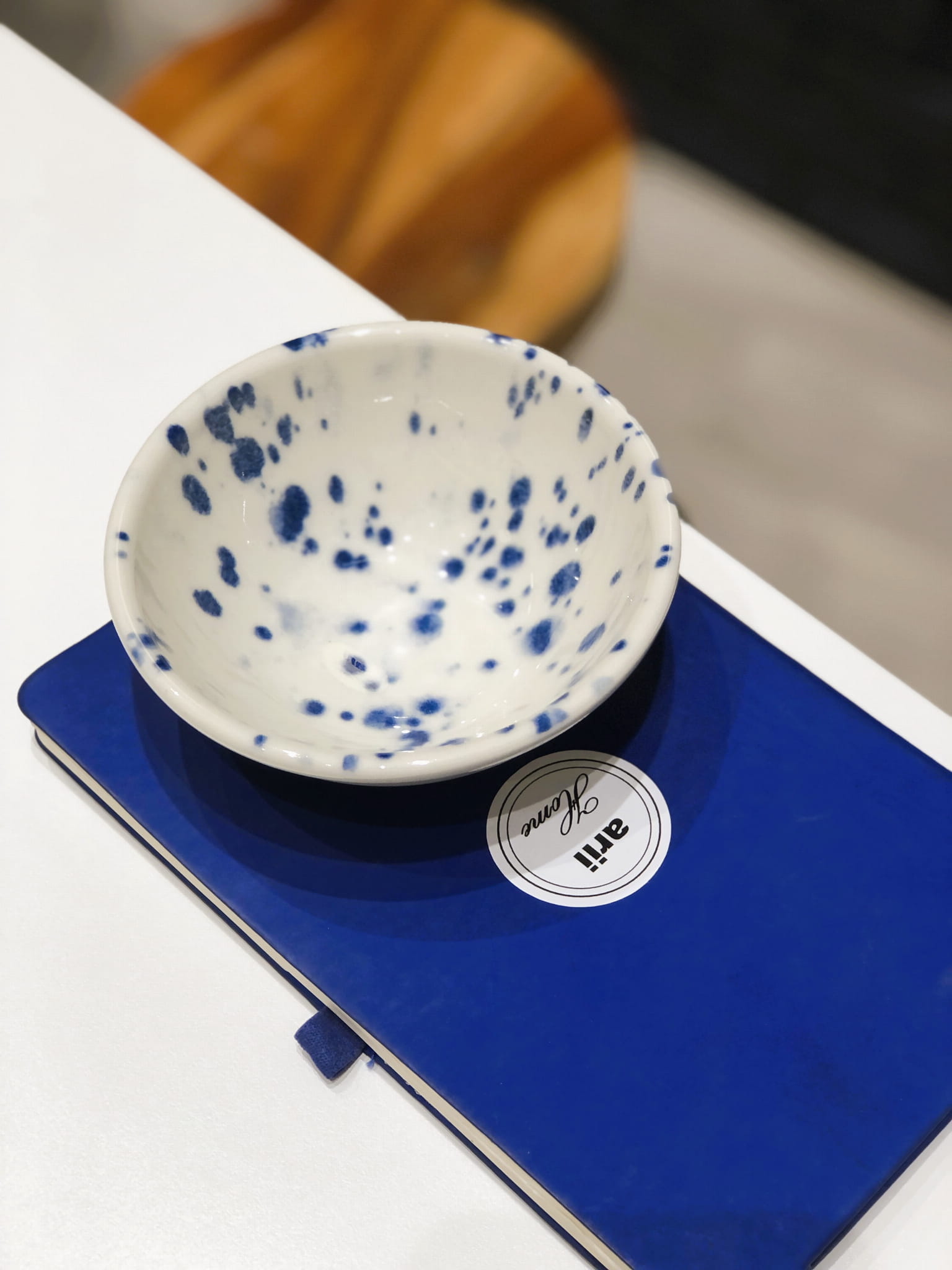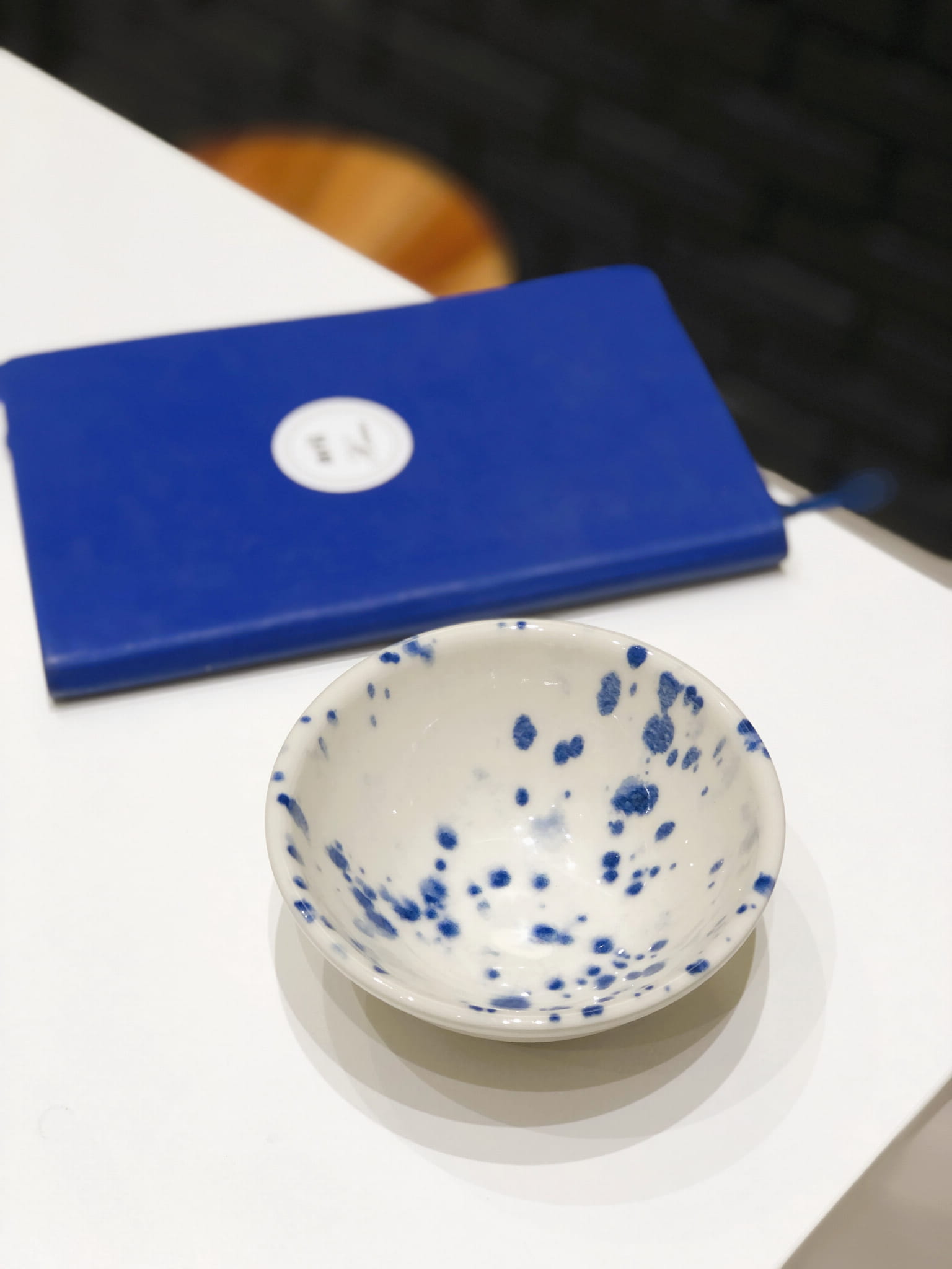 Miseczka z ceramiki w abstrakcyjne nakropienia w kolorze kobaltowym.