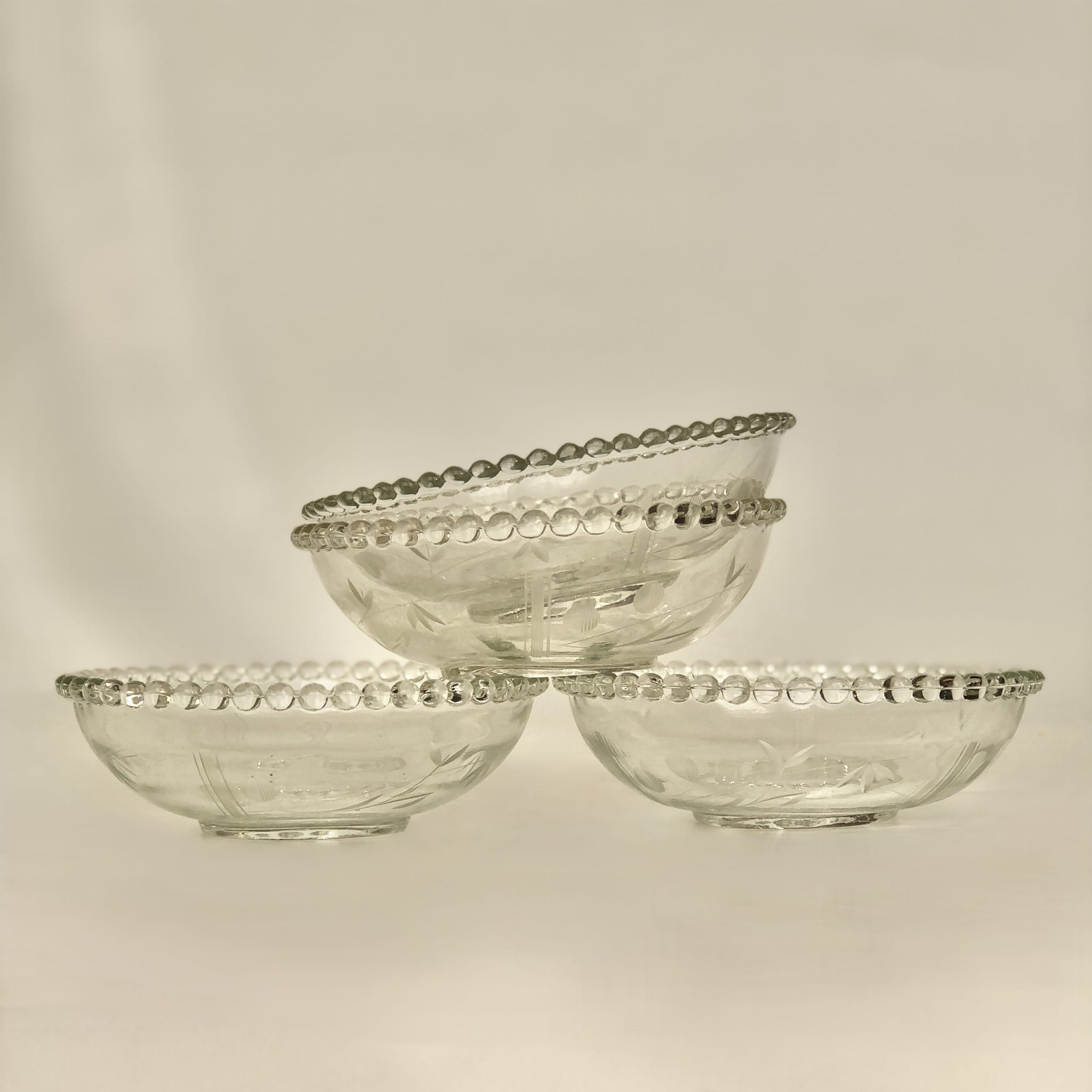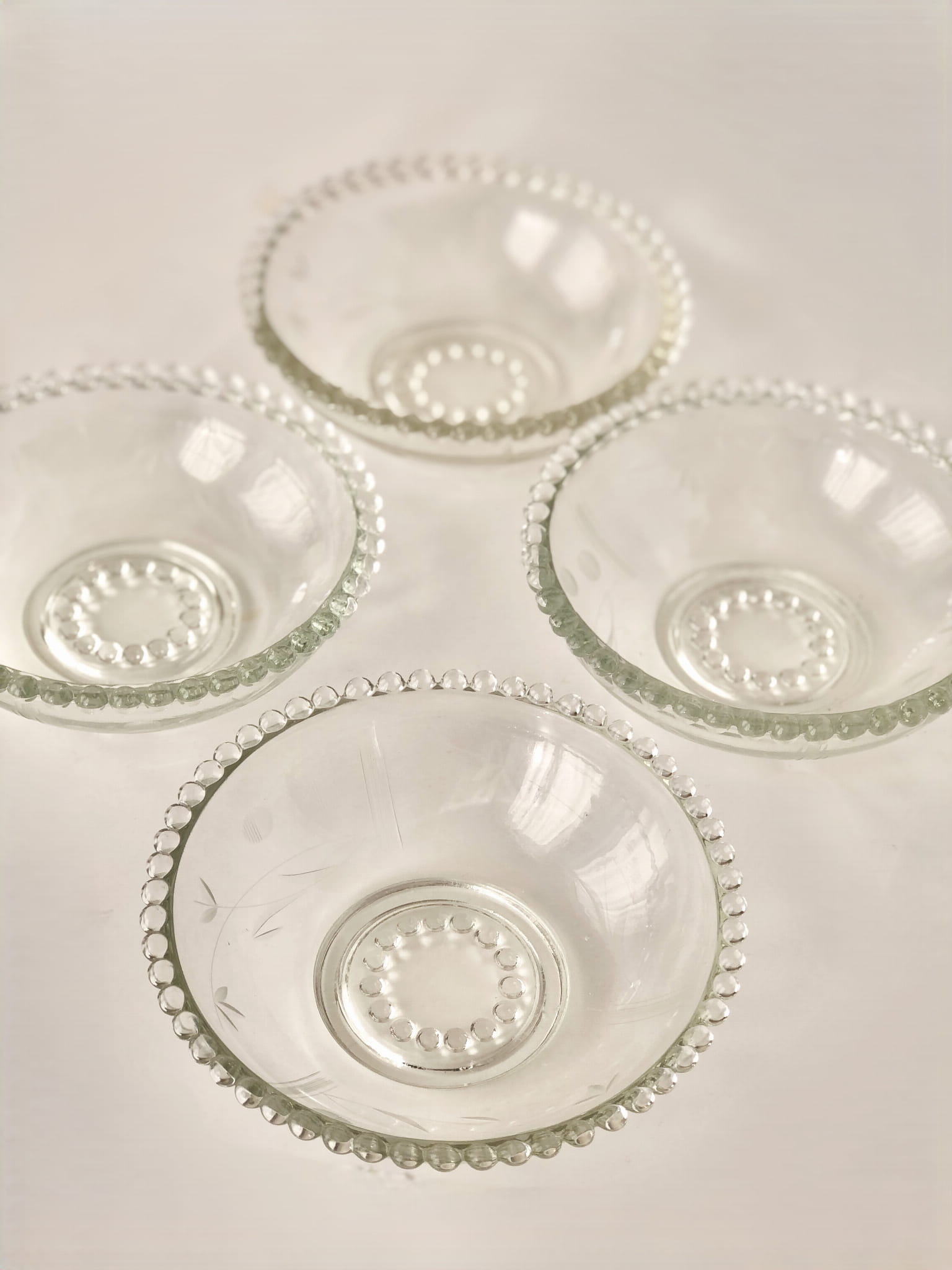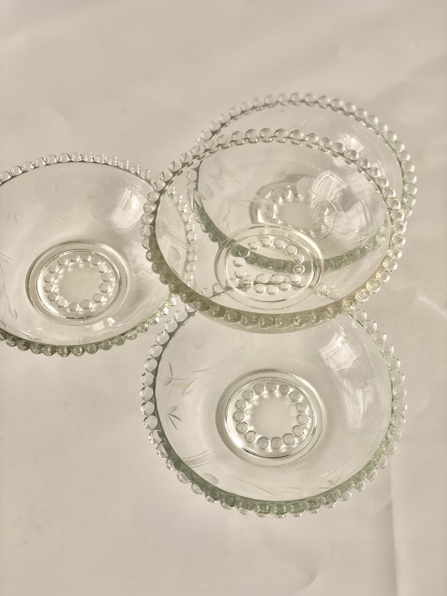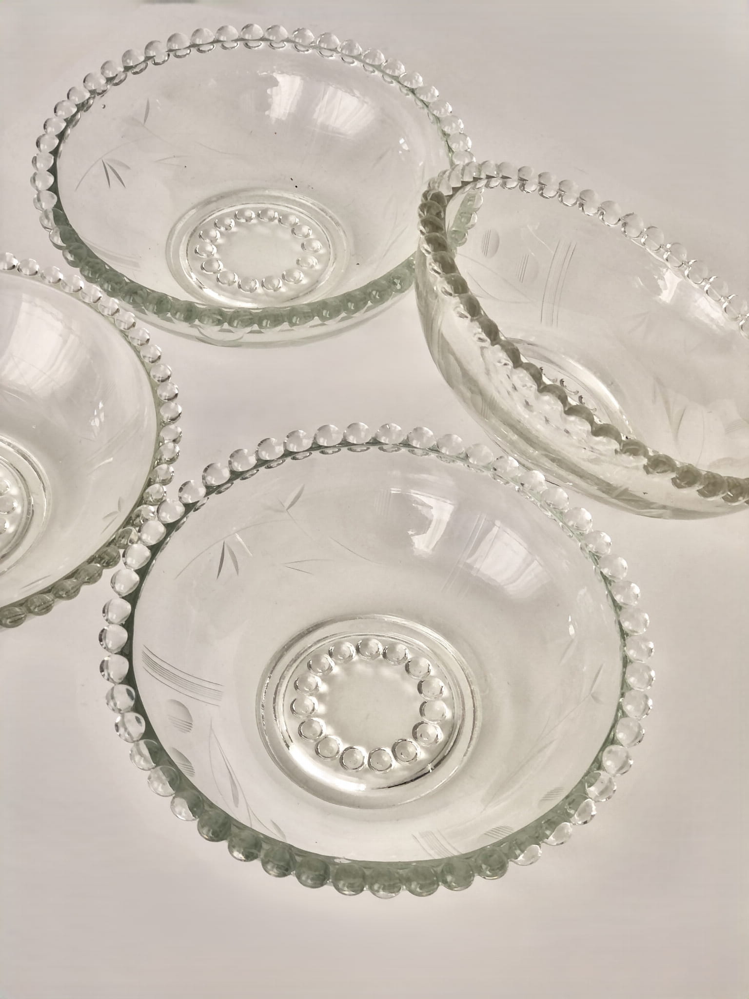 Miseczki "perełki" zestaw 4 sztuk, szkło transparentne, Huta Ząbkowice.
