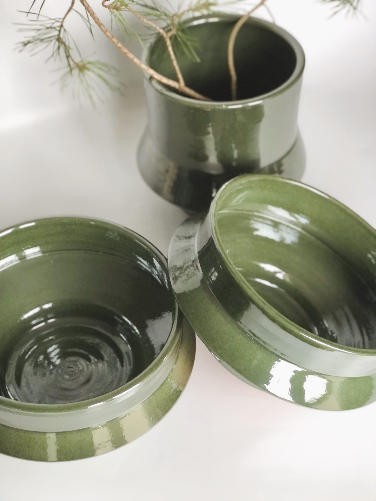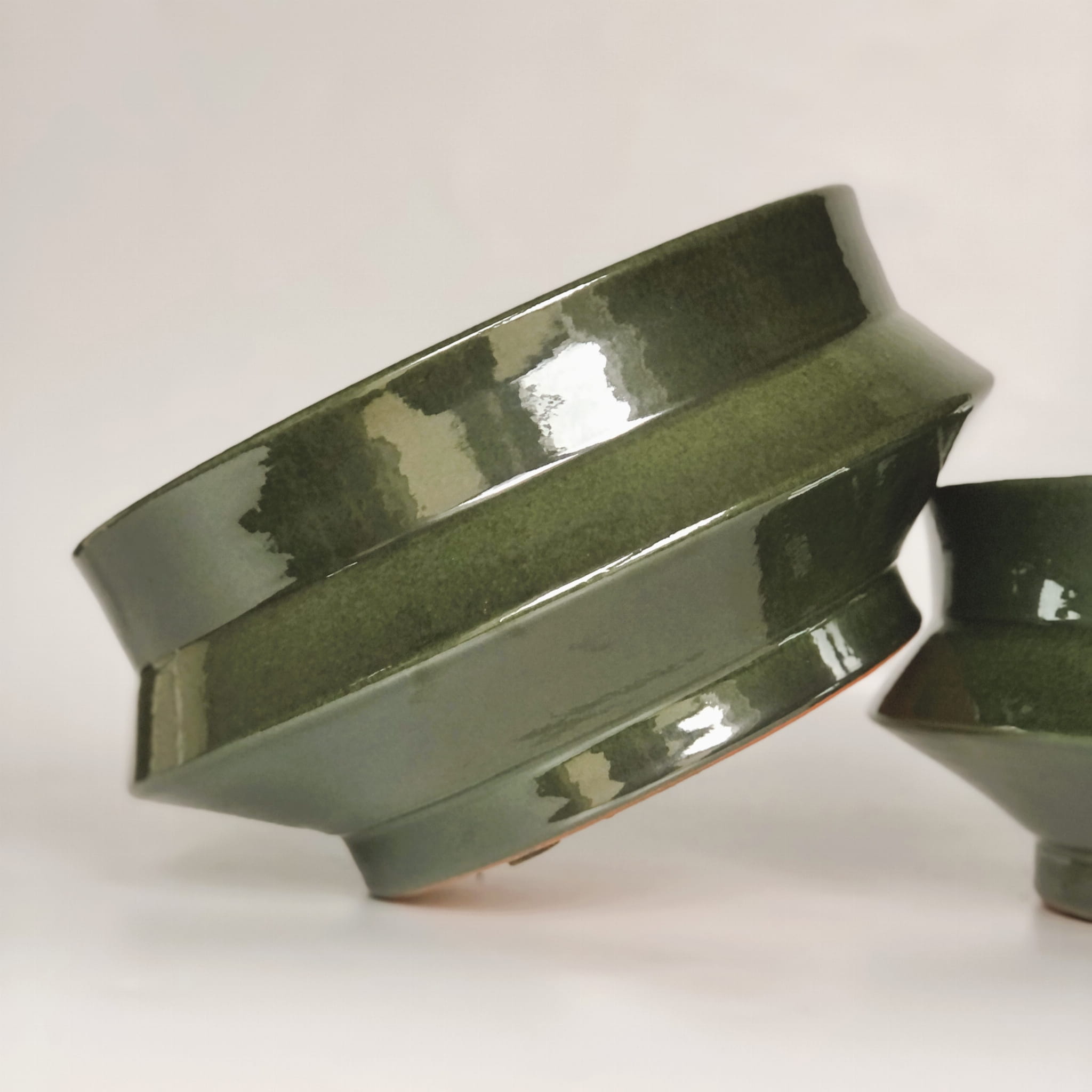 Naczynia wykonane są z czerwonej gliny, szkliwione w intensywnym zielonym kolorze, inspirowane tradycyjnym ceramicznym rękodziełem z Maroka.