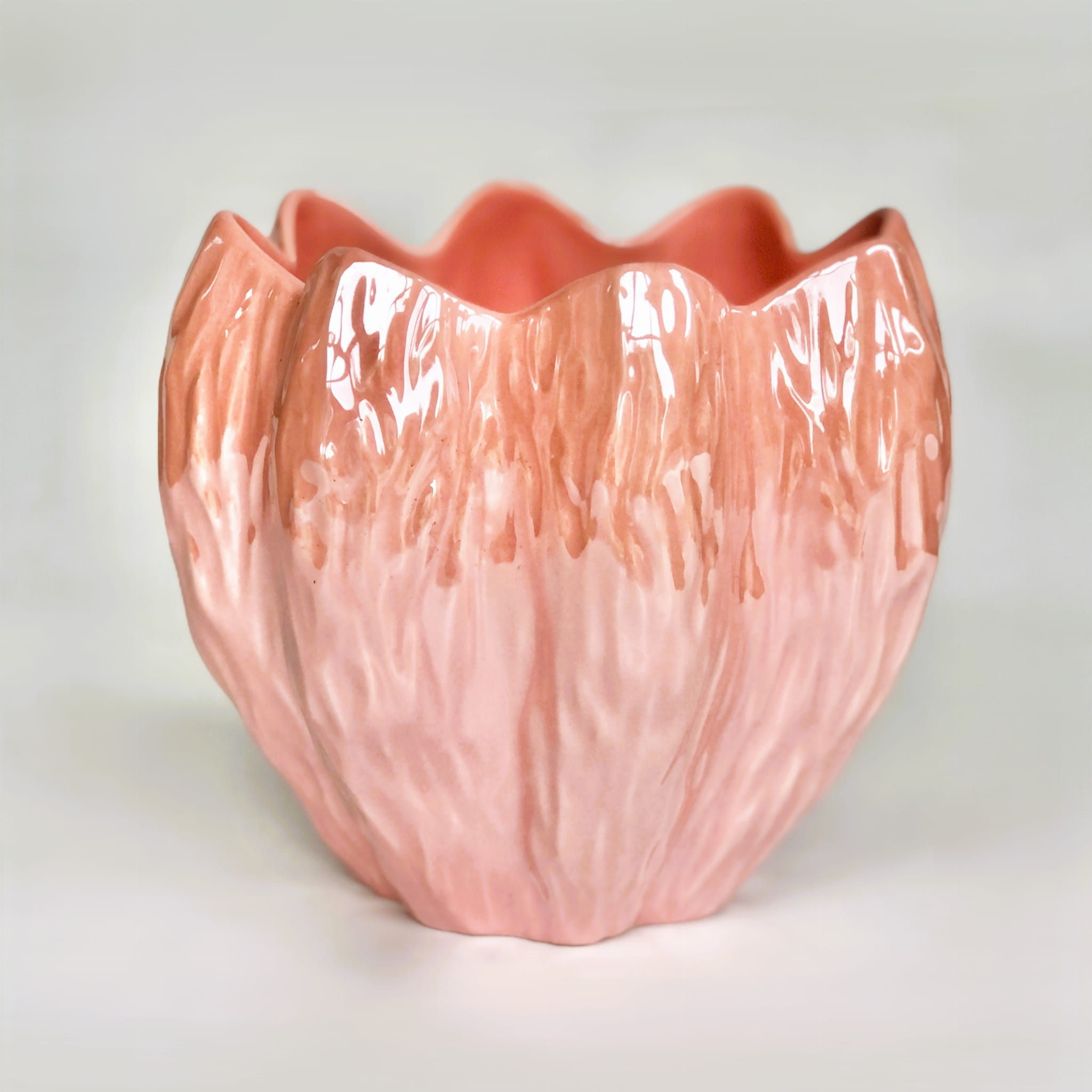 Osłonka "Pink Flower", to oryginalna osłonka w formie kwiatu. Wykonana z wysokiej jakości ceramiki, pokryta różowym szkliwem o perłowym wykończeniu.