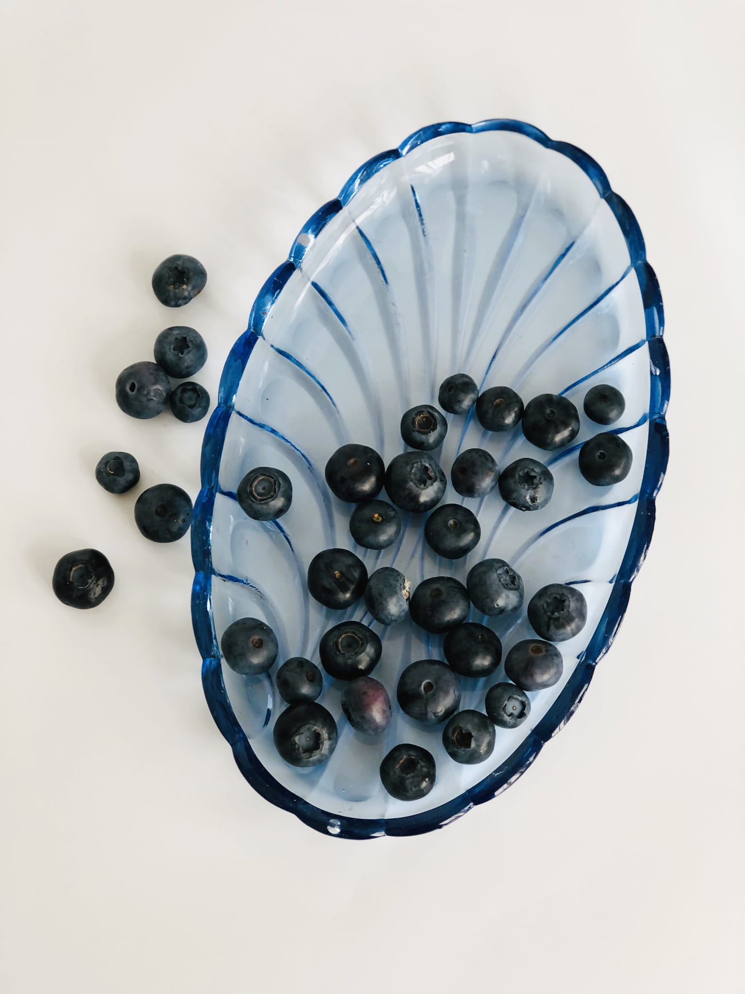 Patera, taca muszla, niebieskie szkło, Huta Ząbkowice.