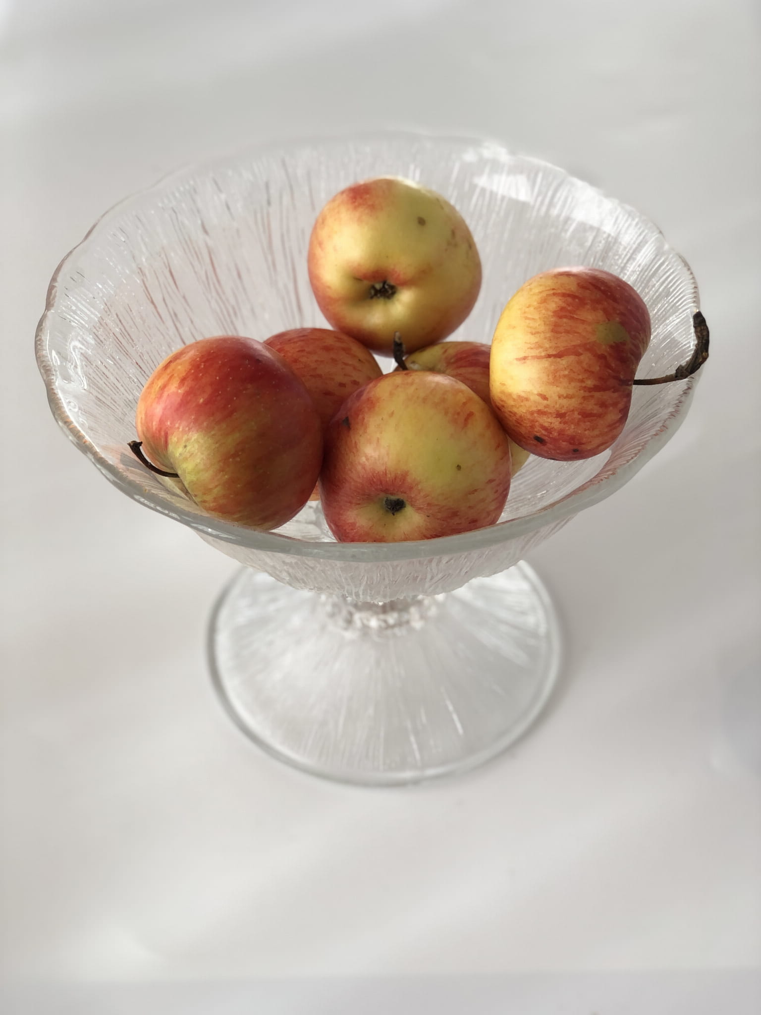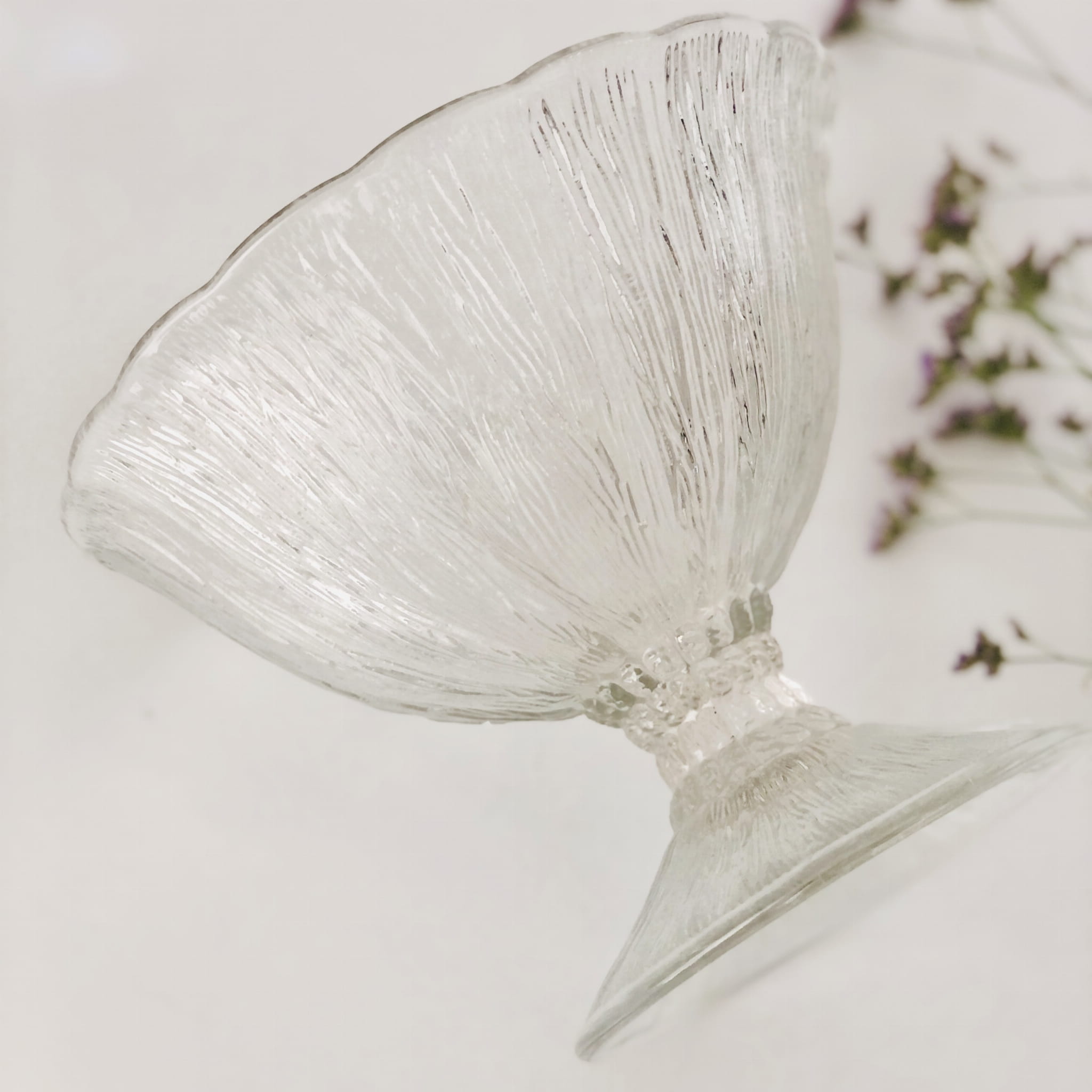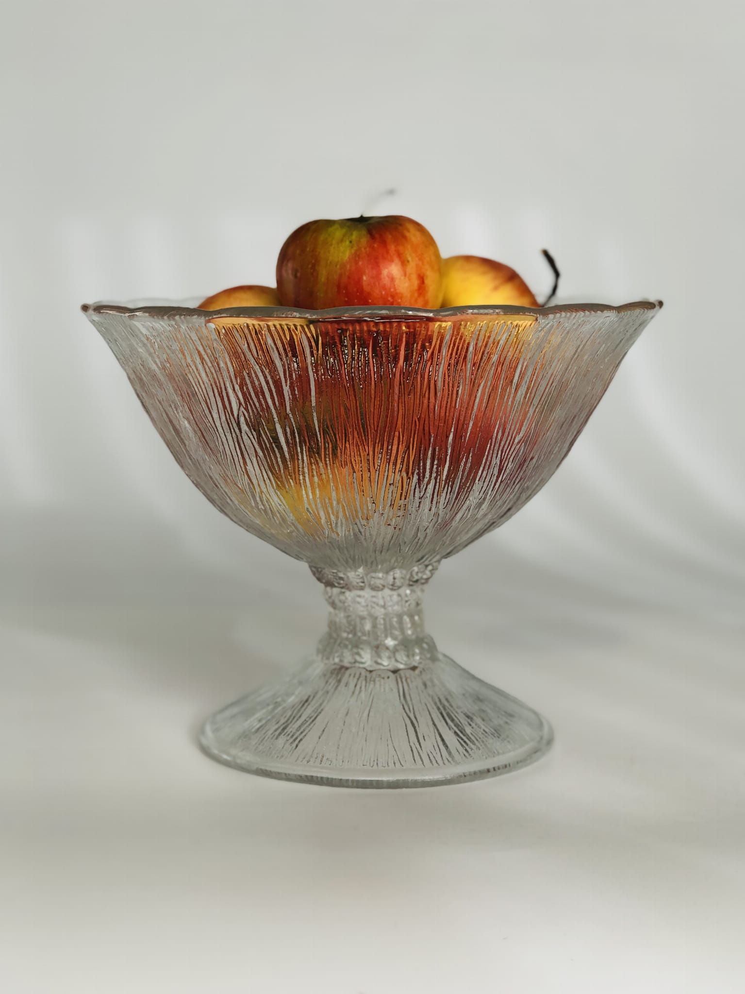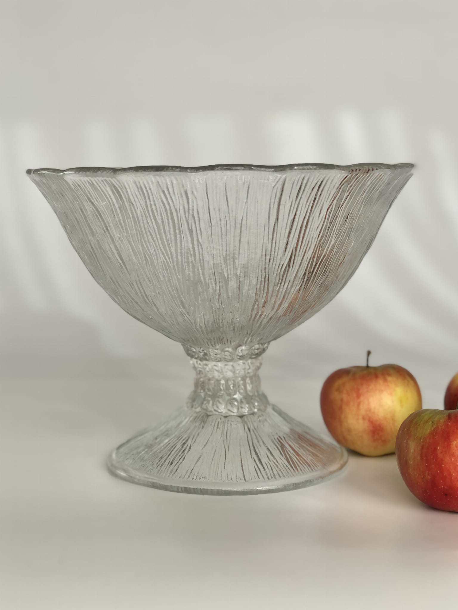 Patera "Cora" na stopie, Huta Ząbkowice. Szkło transparentne, sodowe, prasowane.