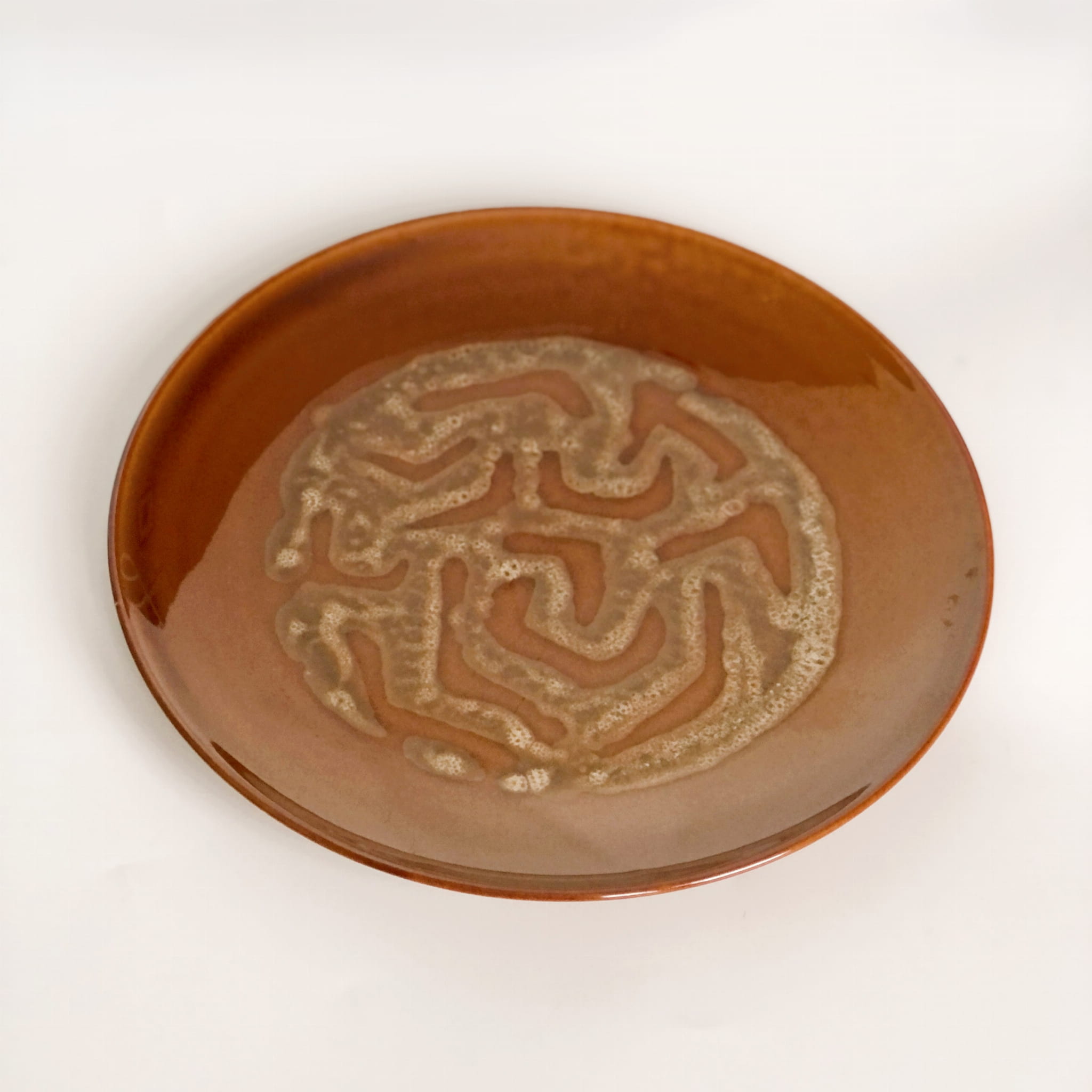 Patera Pruszków z abstrakcyjnym zdobieniem, brązowe szkliwo -  new Look, lata 60-70 XX w.