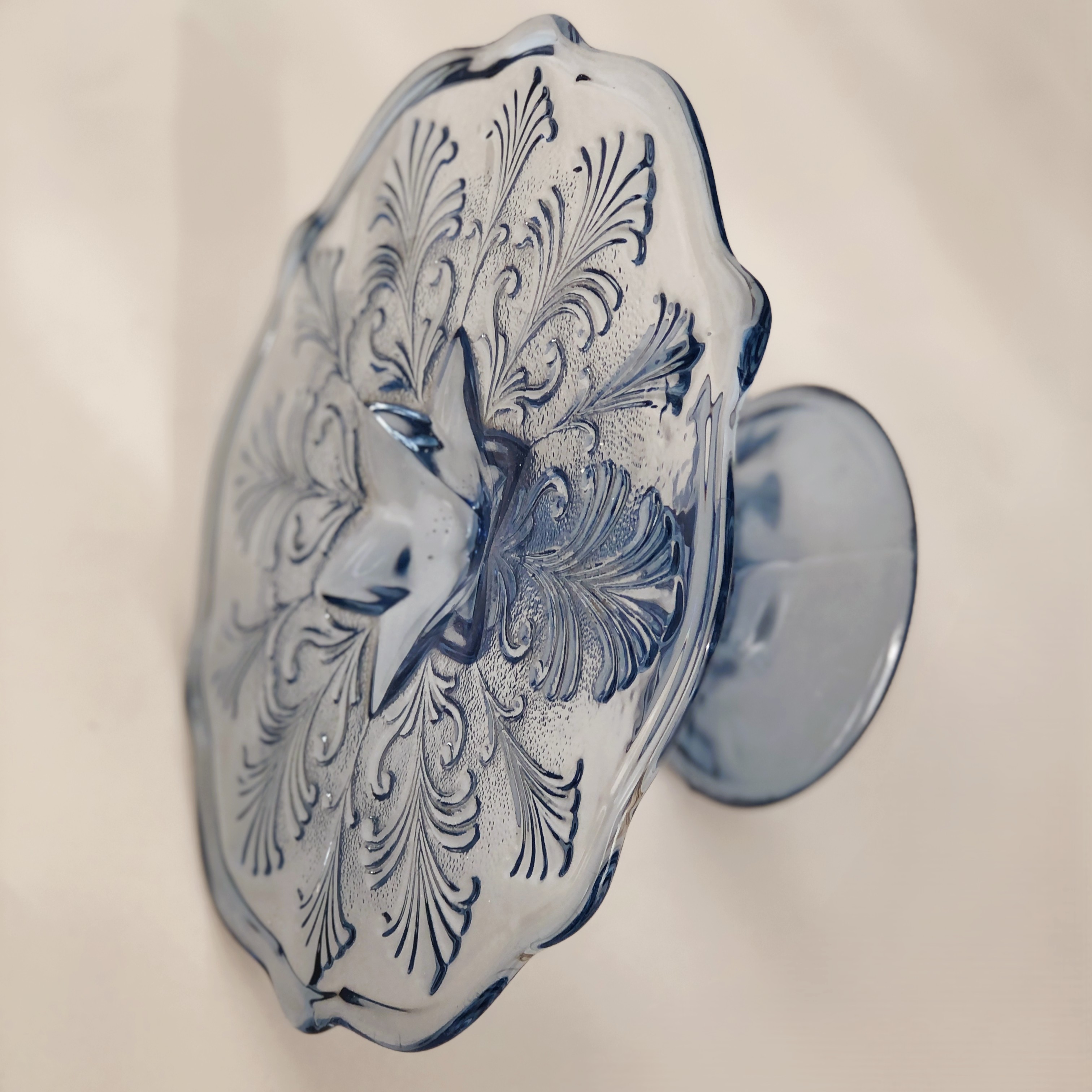 Paterka na stopce "palemki" niebieskie szkło, Huta Ząbkowice