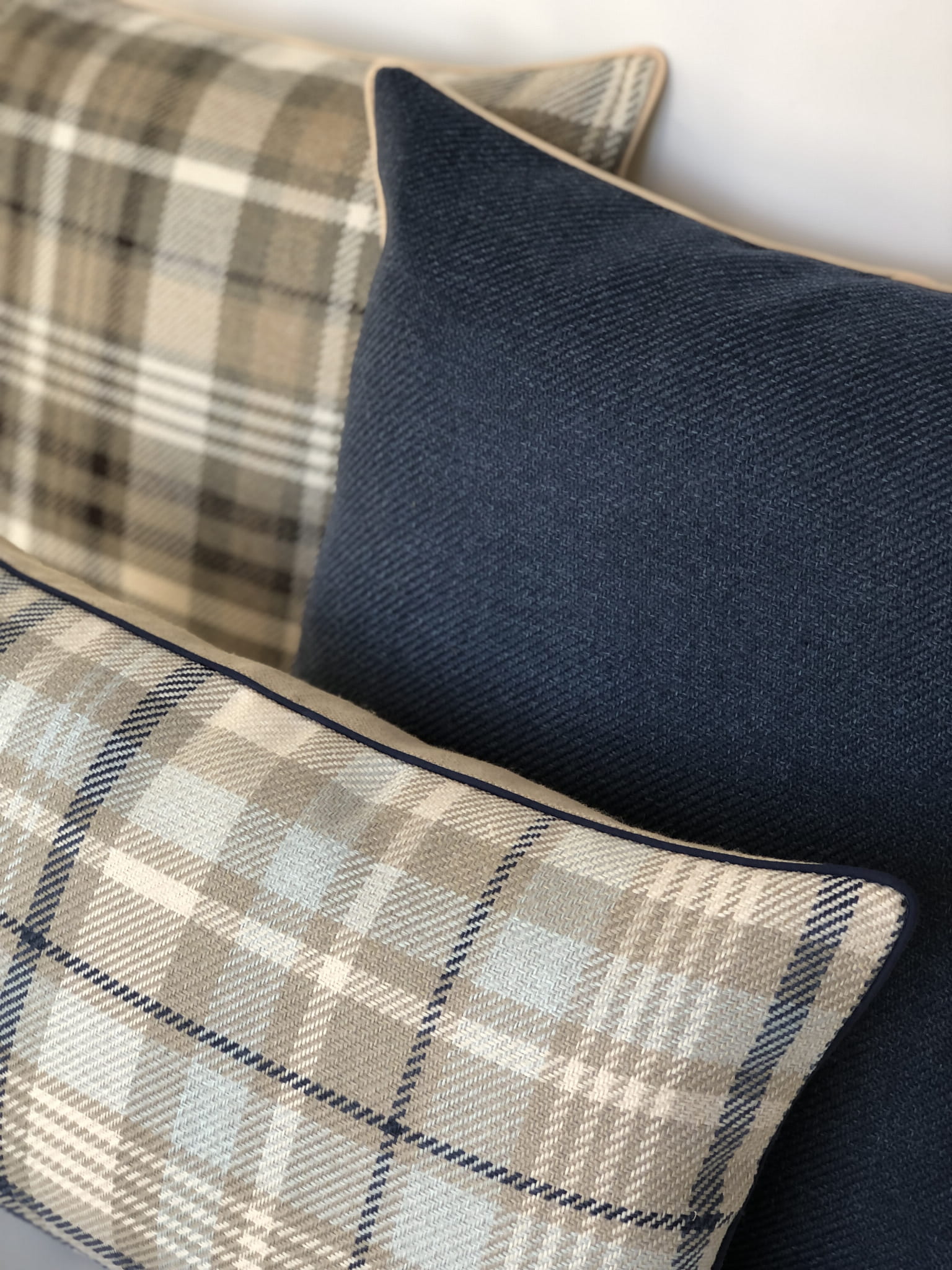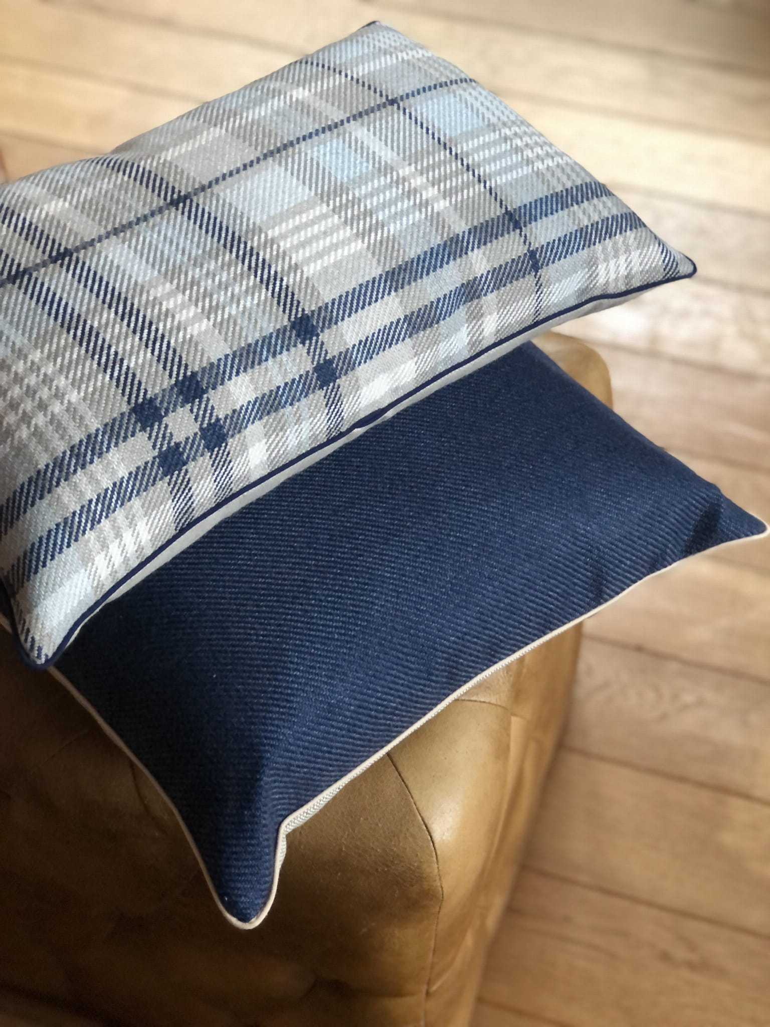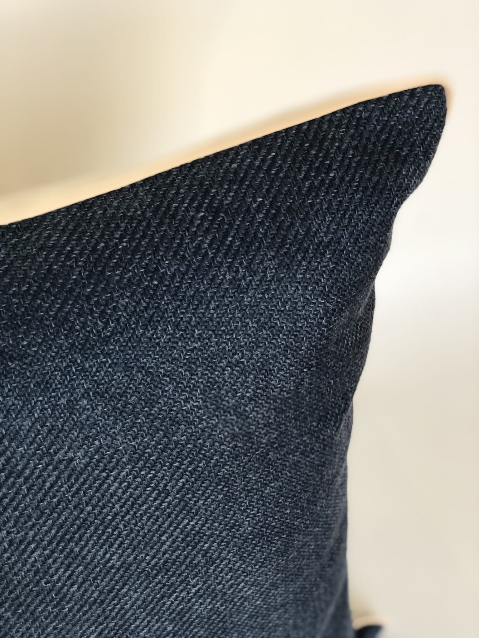 Przód poduszki to portugalska, szlachetna tkanina z wyraźnym, skośnym splotem, bardzo przyjemna w dotyku.