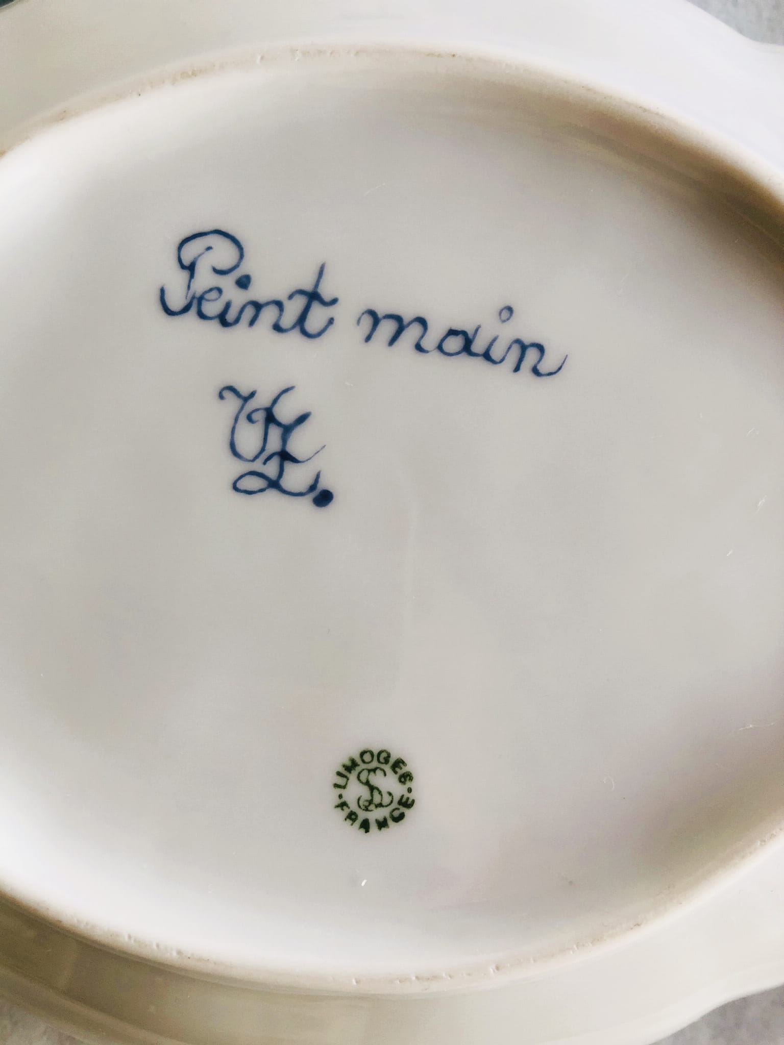 Sygnowany wytwórnią Limoges oraz inicjałami dekoratora.