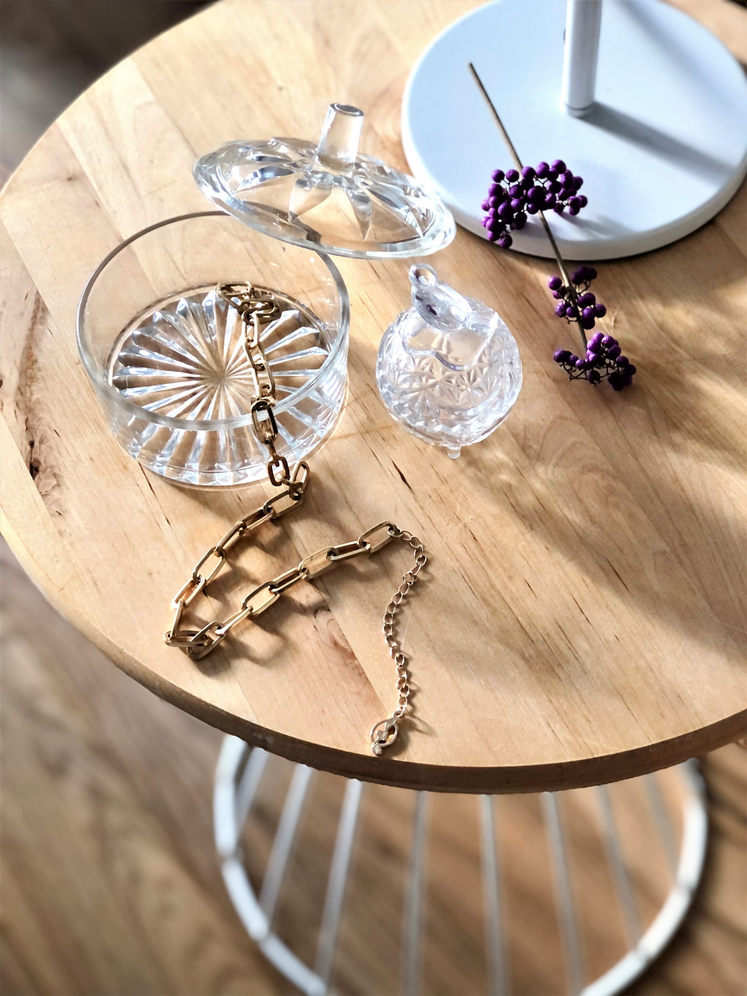 Spód z wytłoczoną rozetą, na wieczku także wzór rozety. Idealne na przechowywanie biżuterii.