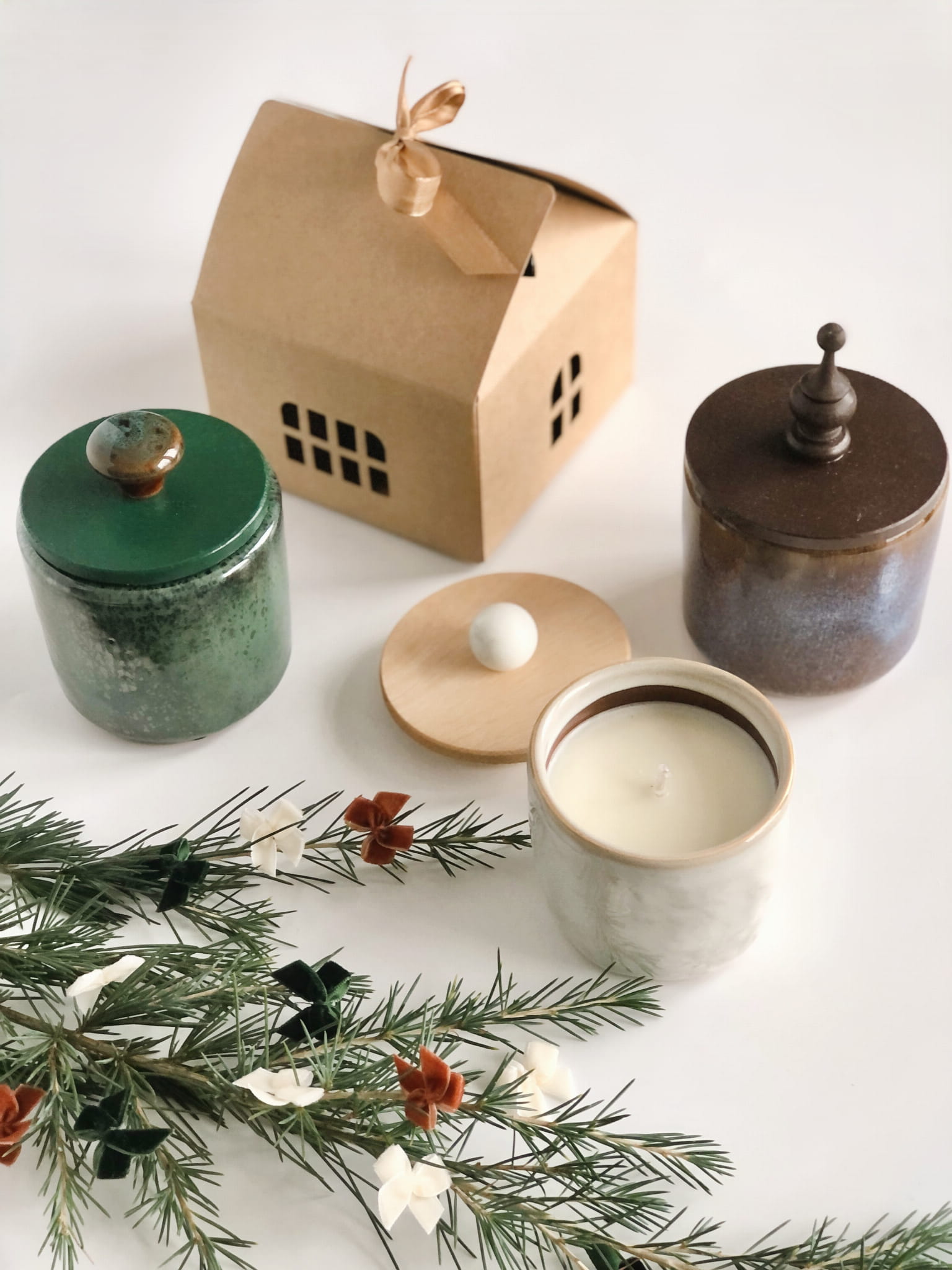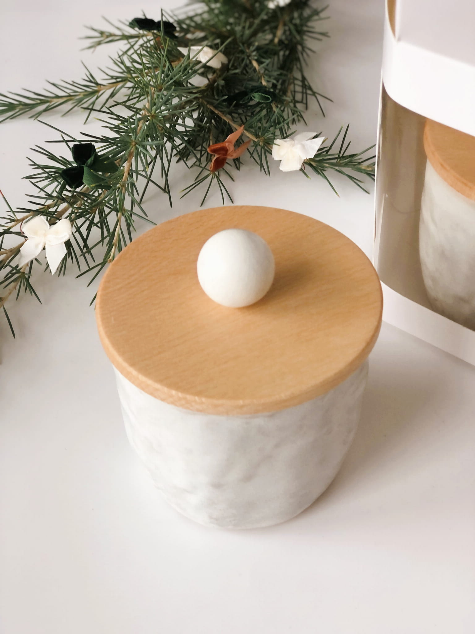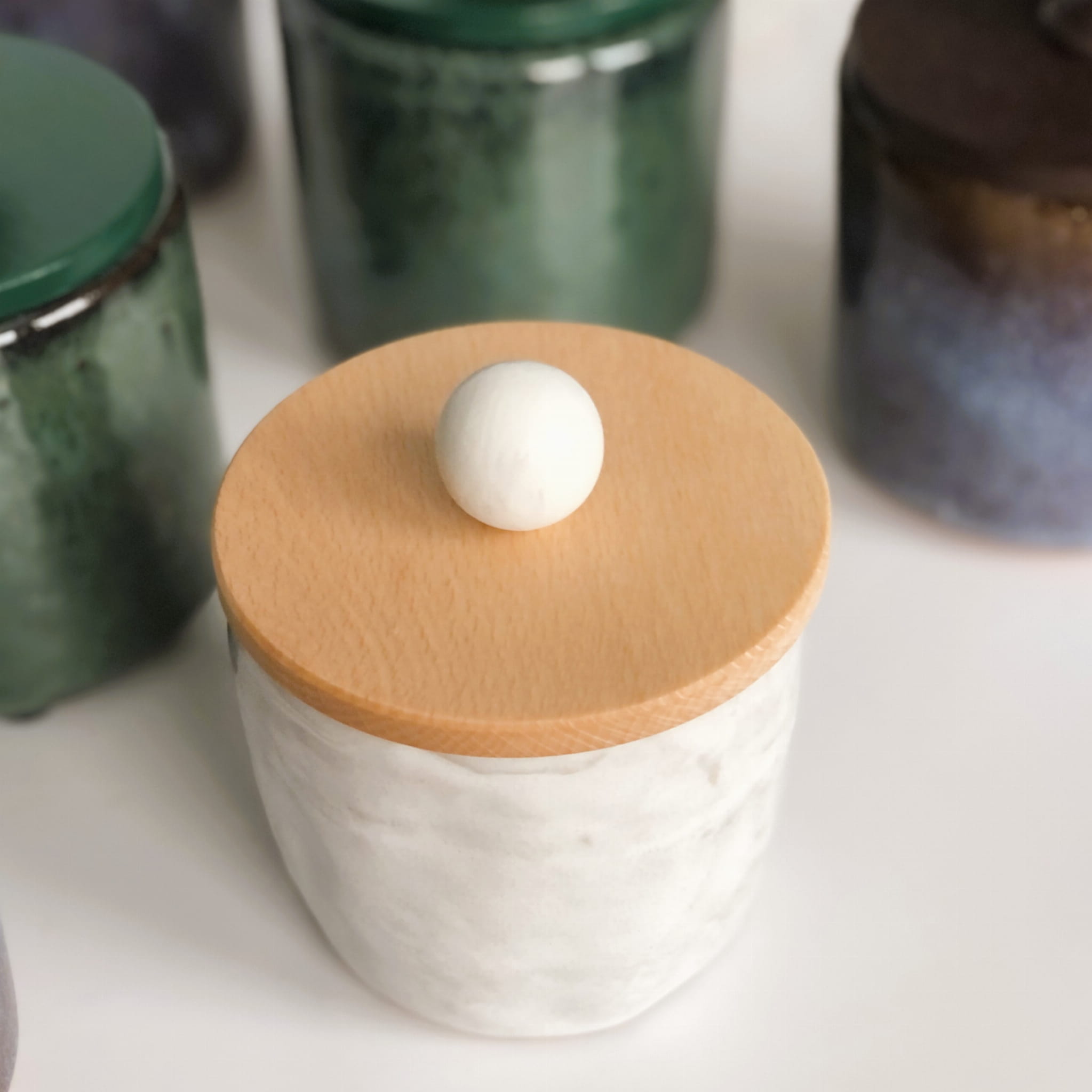 Pojemnik ceramiczny pokryty szkliwem w odcieniach bieli.