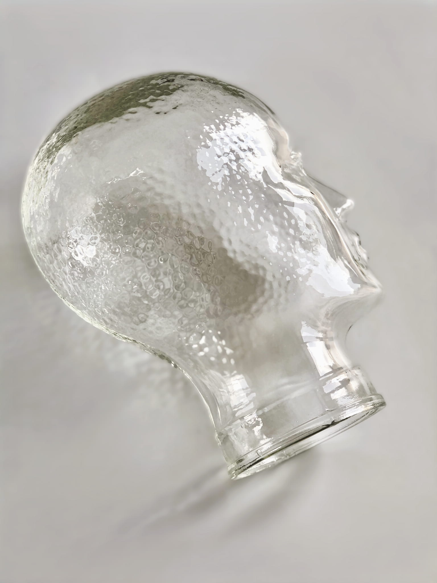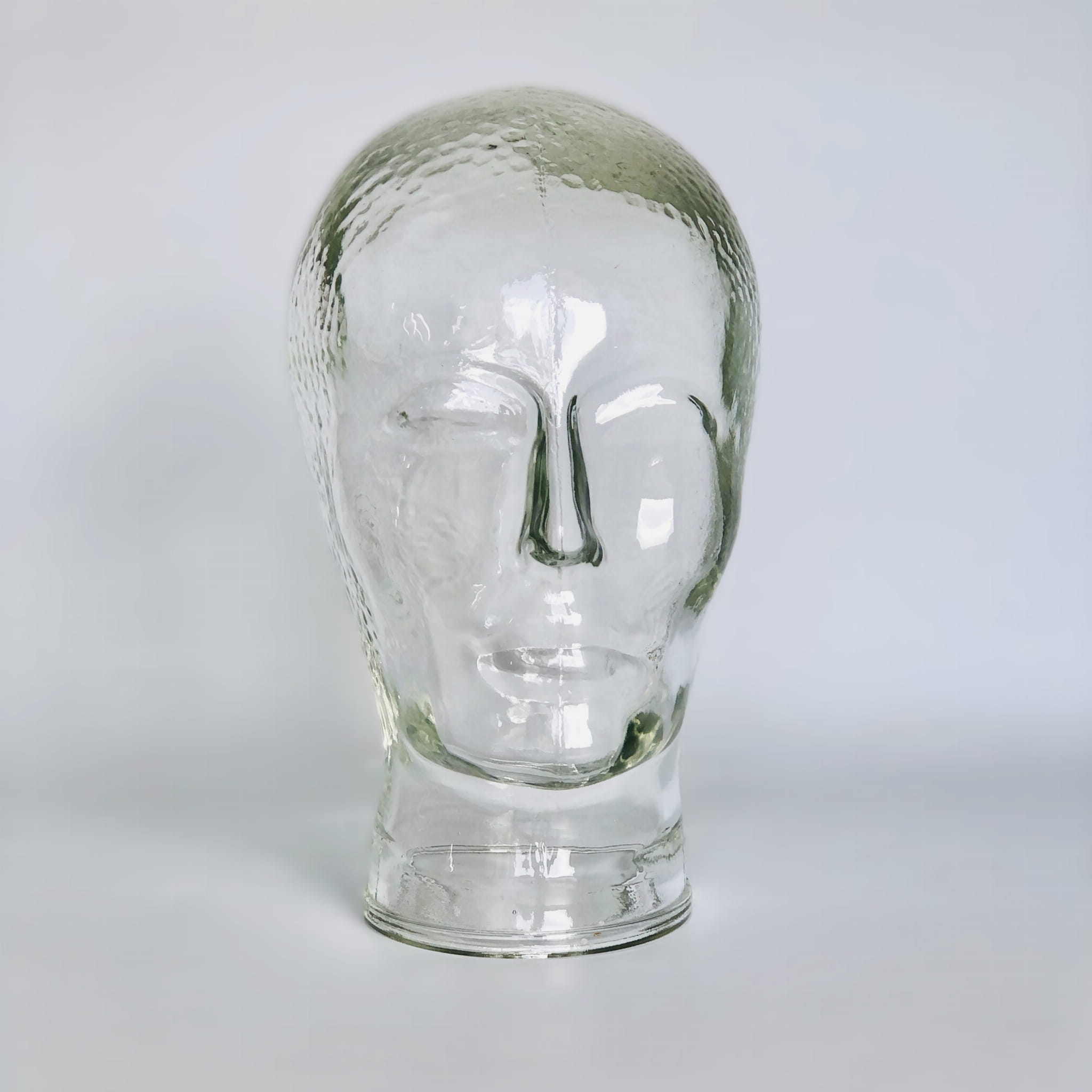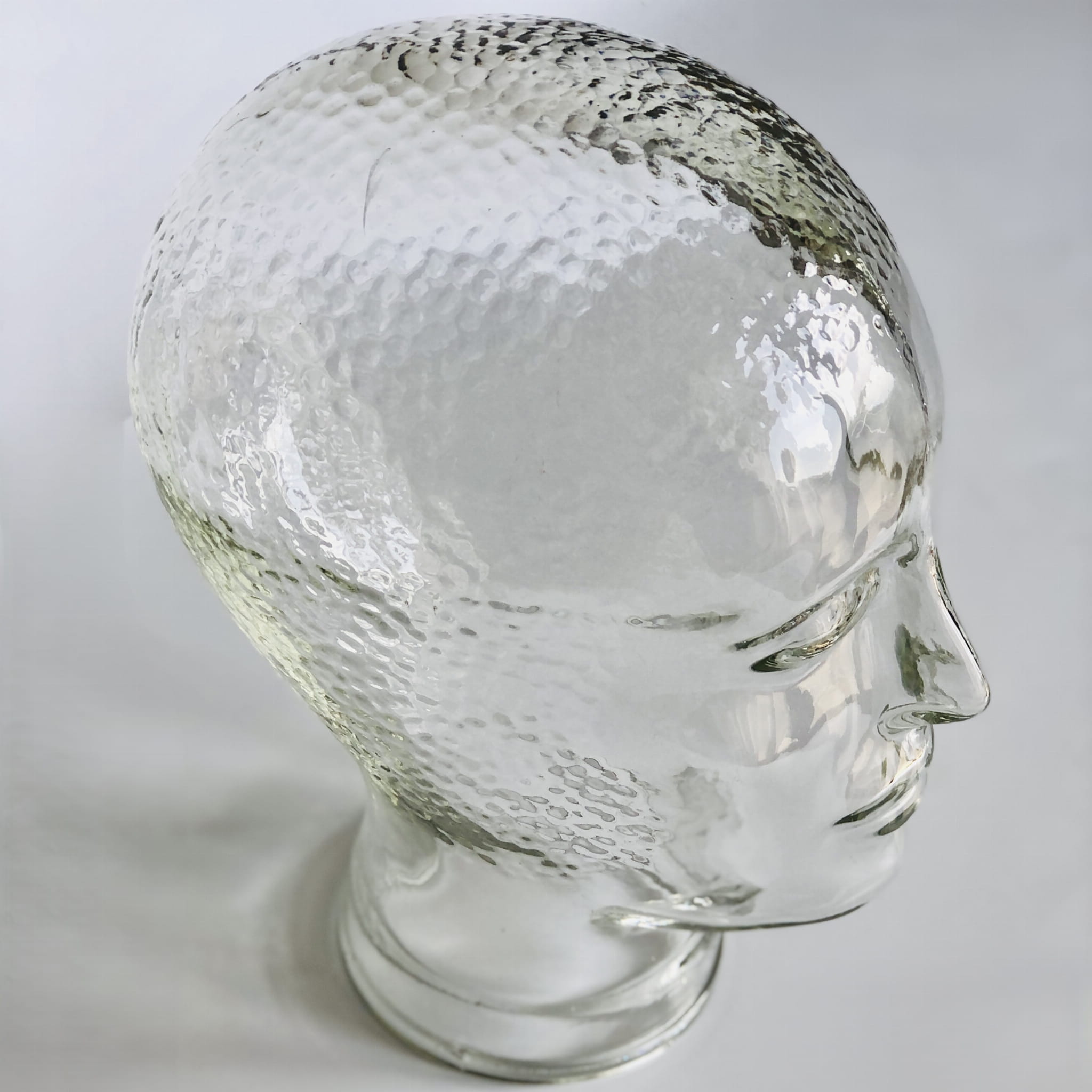 Szklana głowa, oryginał Vintage, lata 60-70. Ikona stylu retro i dekoracji mid-century, wykonana z transparentnego szkła. Głowa w regularne, drobne, okrągłe tłoczenia.