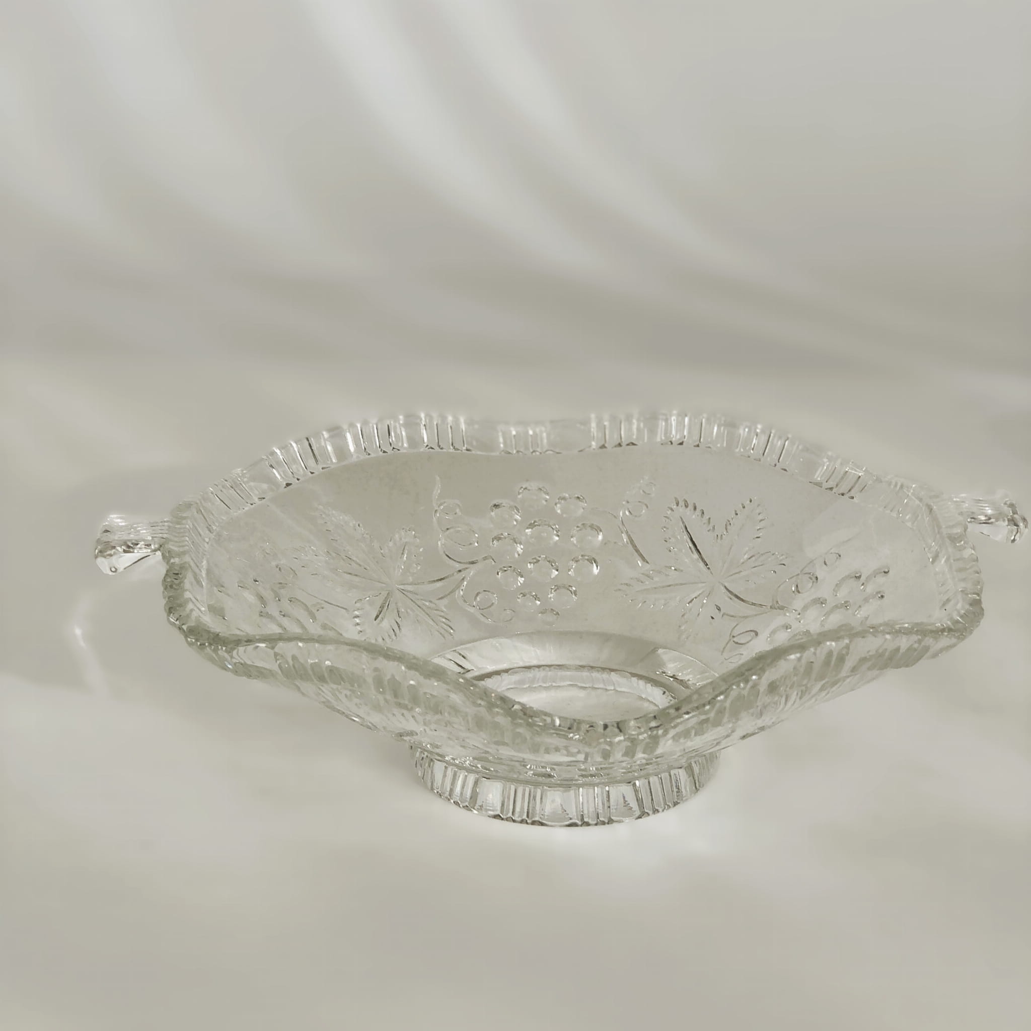 Urocza miseczka z maleńkimi uszkami, tłoczony motyw owoców i liści winogronowych.