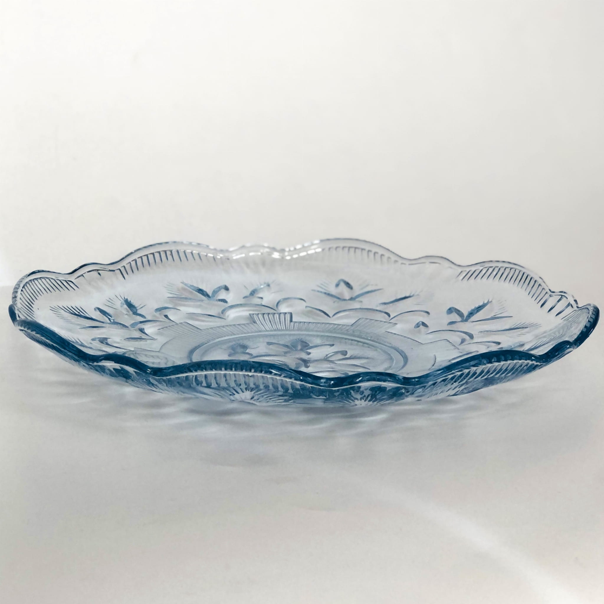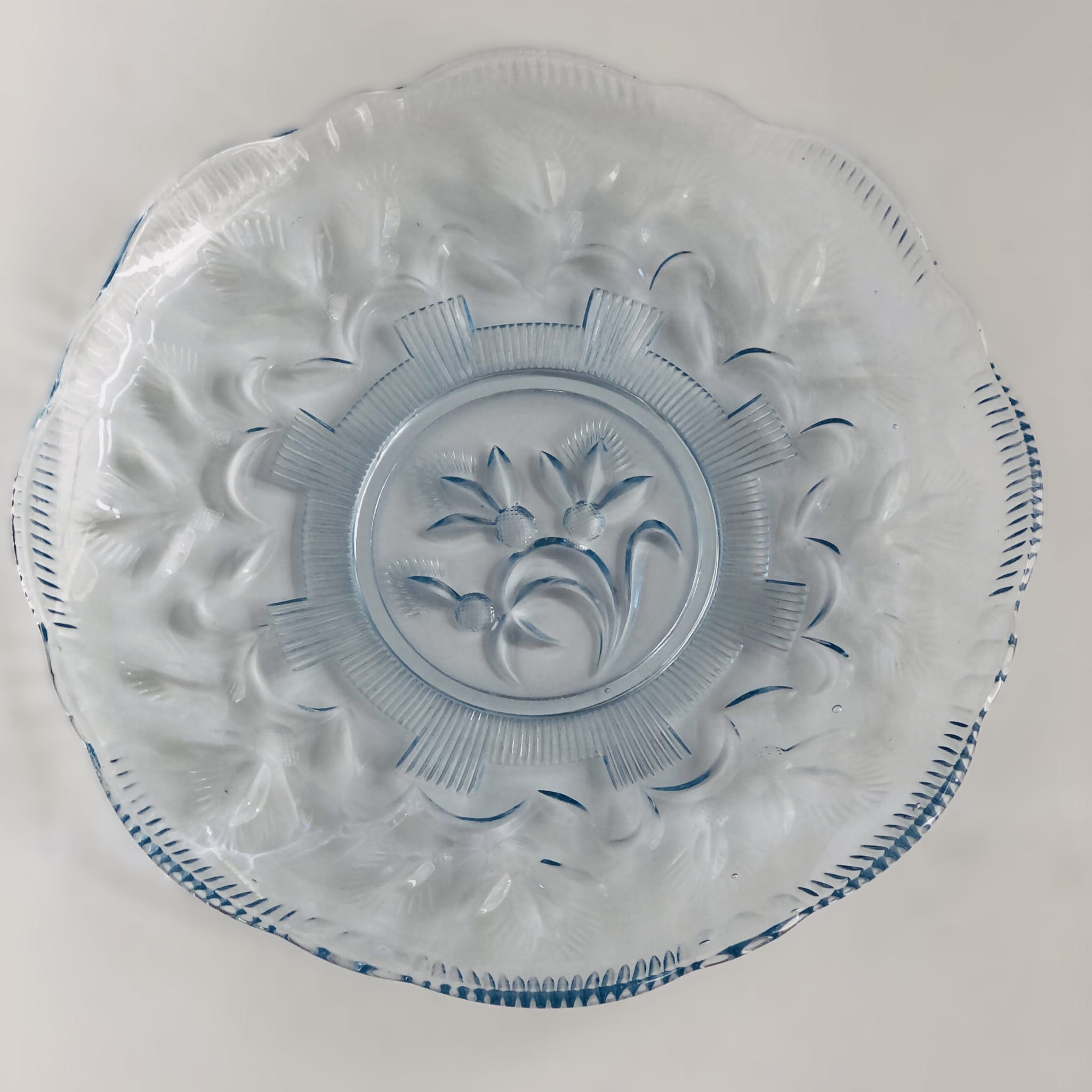 Talerz, patera ze szkła barwionego w masie na kolor błękitu.