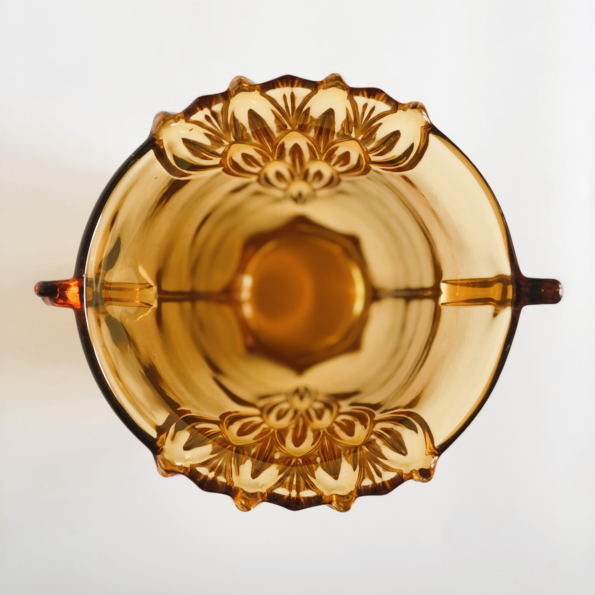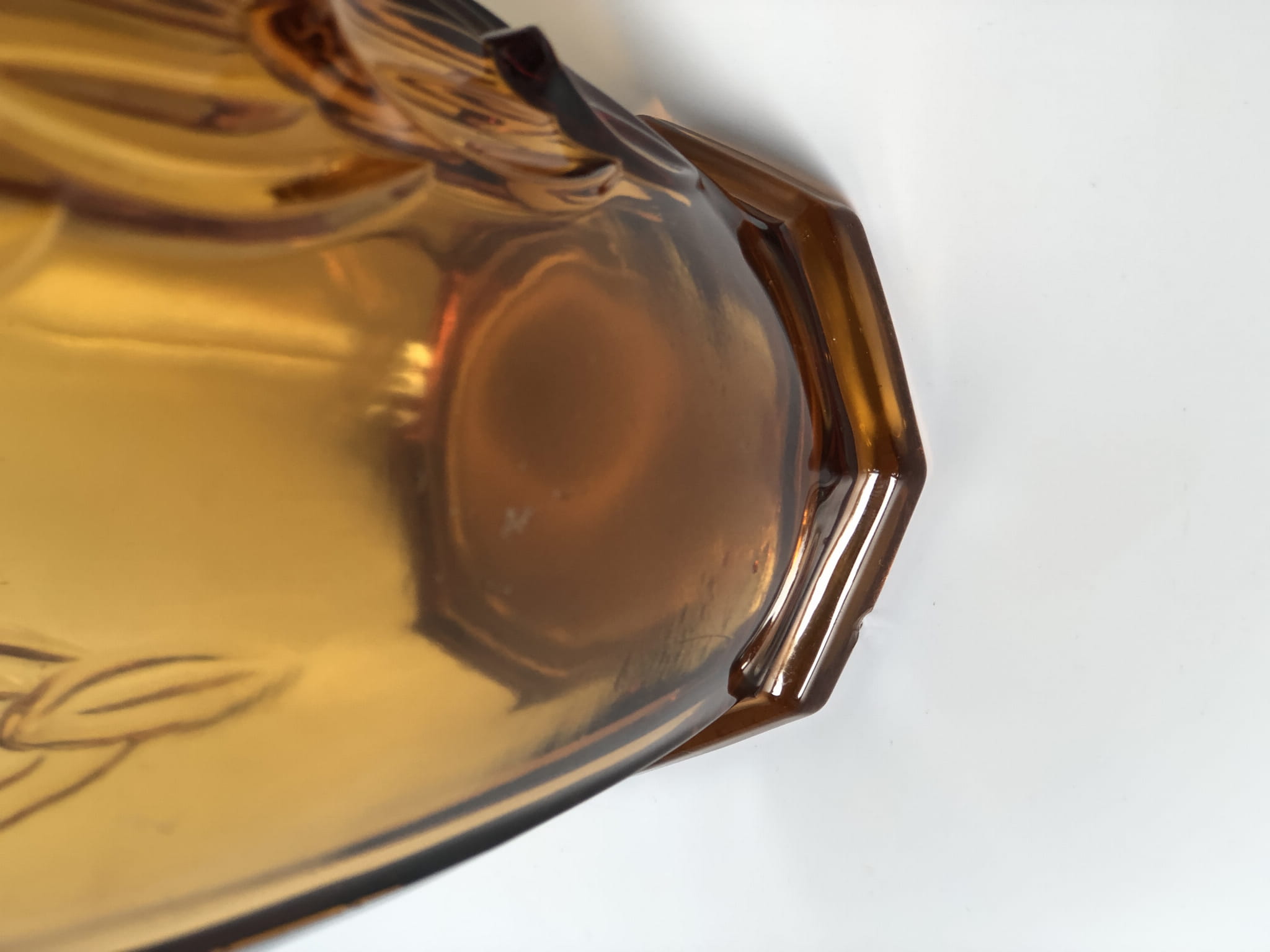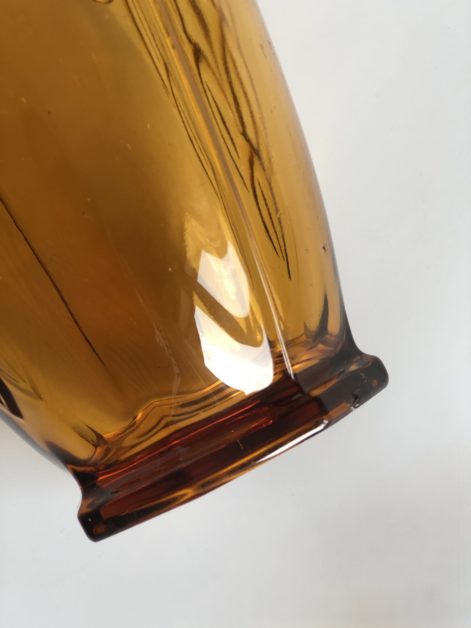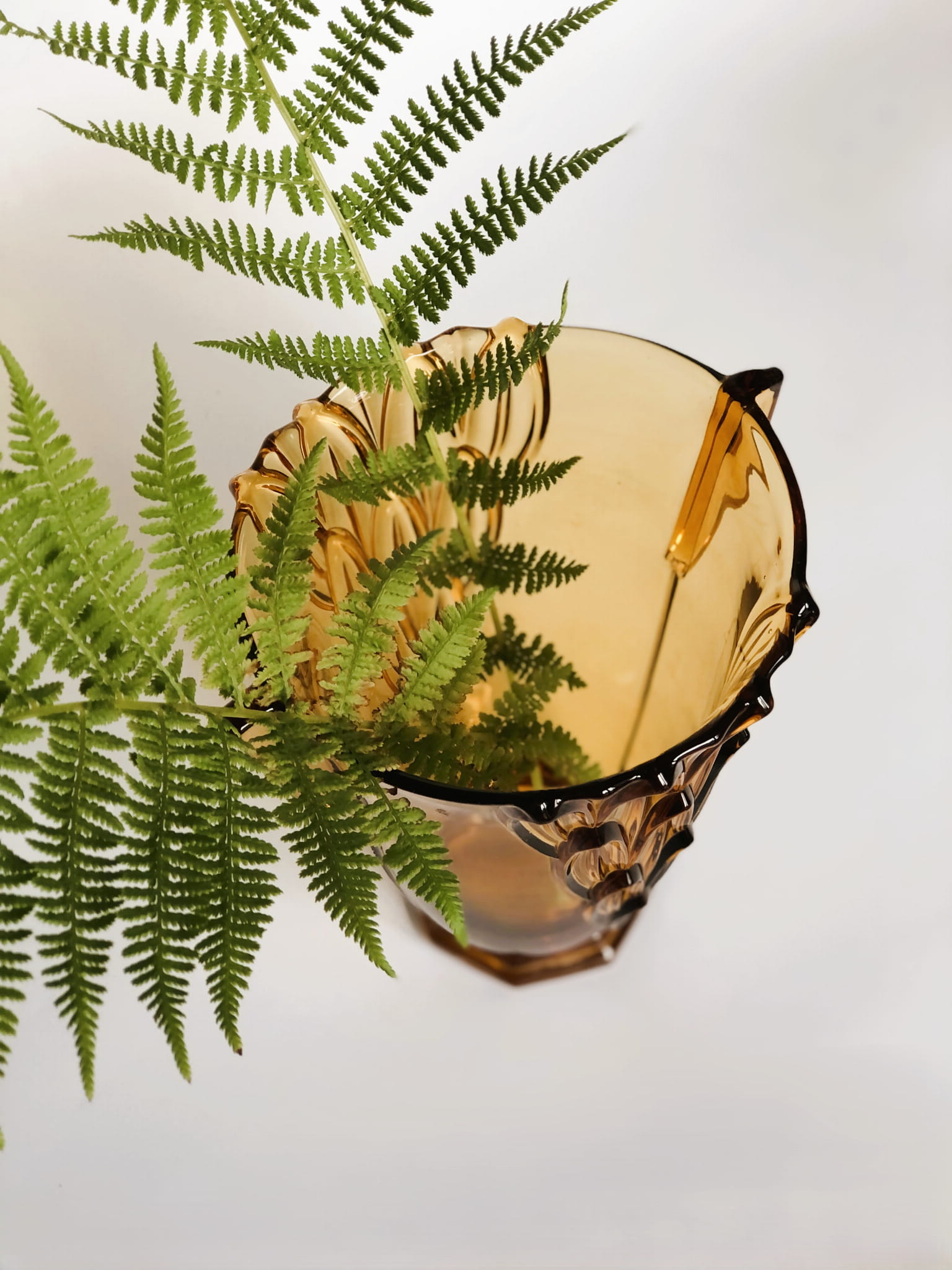 Duży wazon z kultowej serii w liście, w intensywnym kolorze bursztynowym. Nr  19116 w katalogu huty.