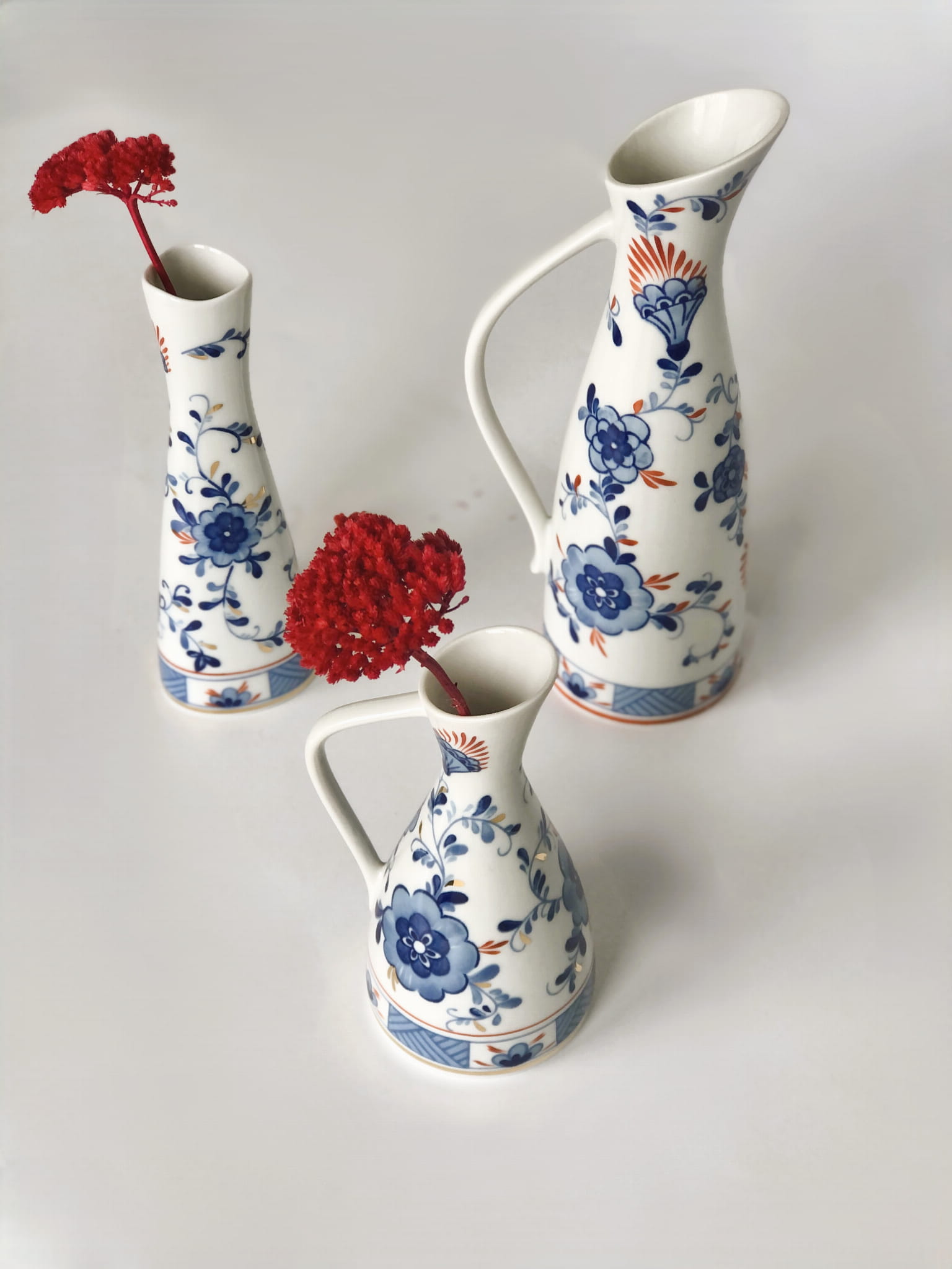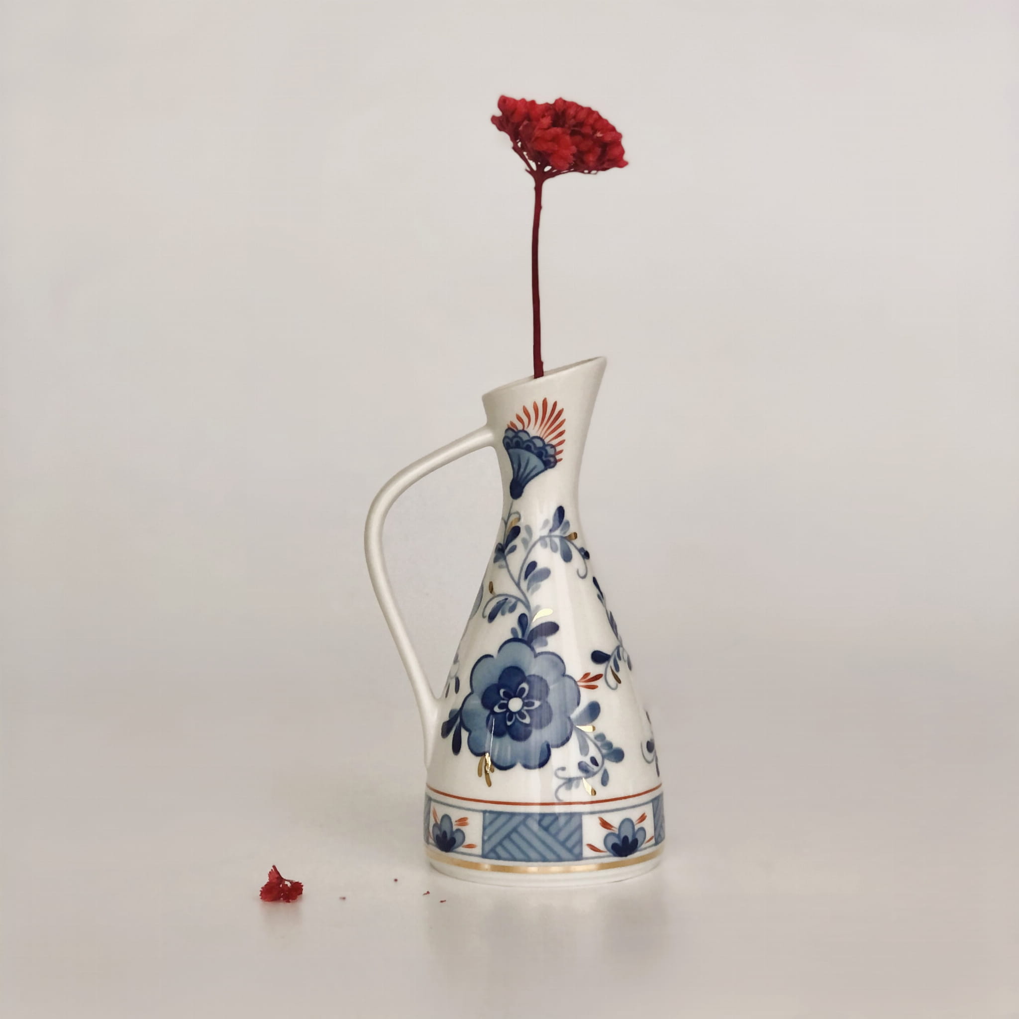 Smukły, porcelanowy wazon z uchwytem wykonany w czasach NRD w Turyngii w latach 60. XX w.