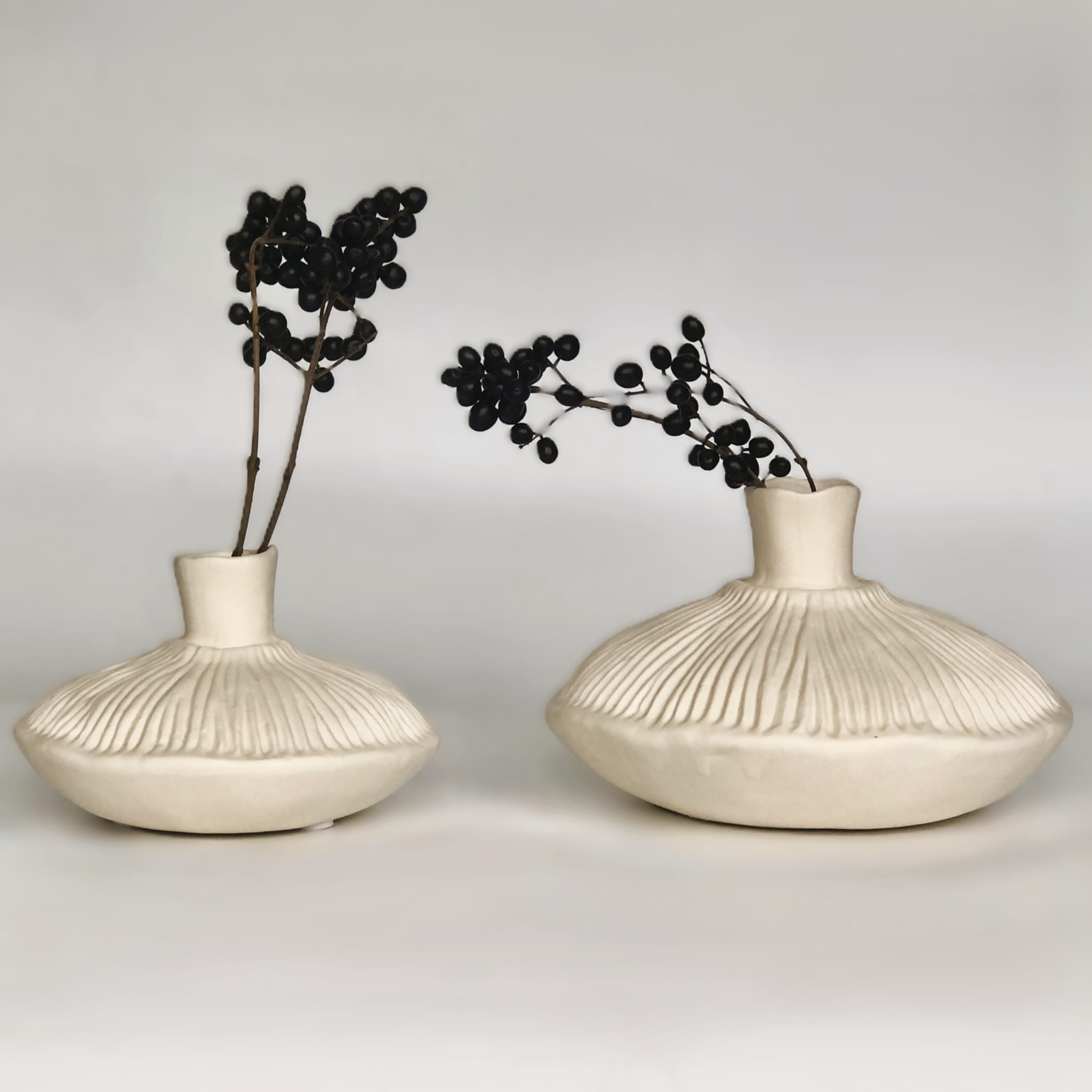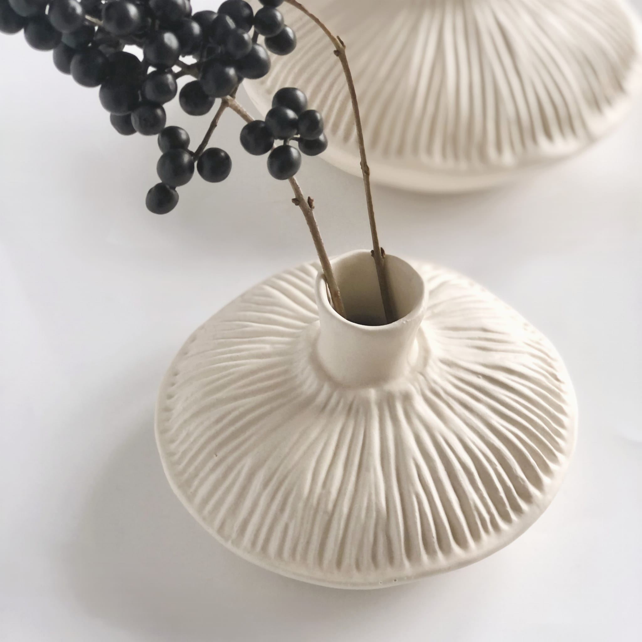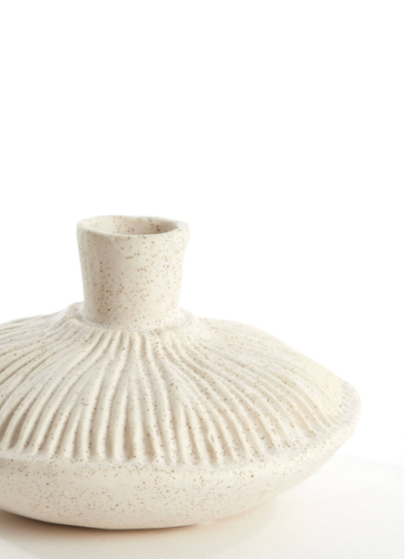 Kremowa, matowa ceramika oraz kształt inspirowany naturą. Ten oryginalny wazon wniesie do wnętrza powiew świeżości i nowoczesności, oraz wprowadzi naturalną aurę.