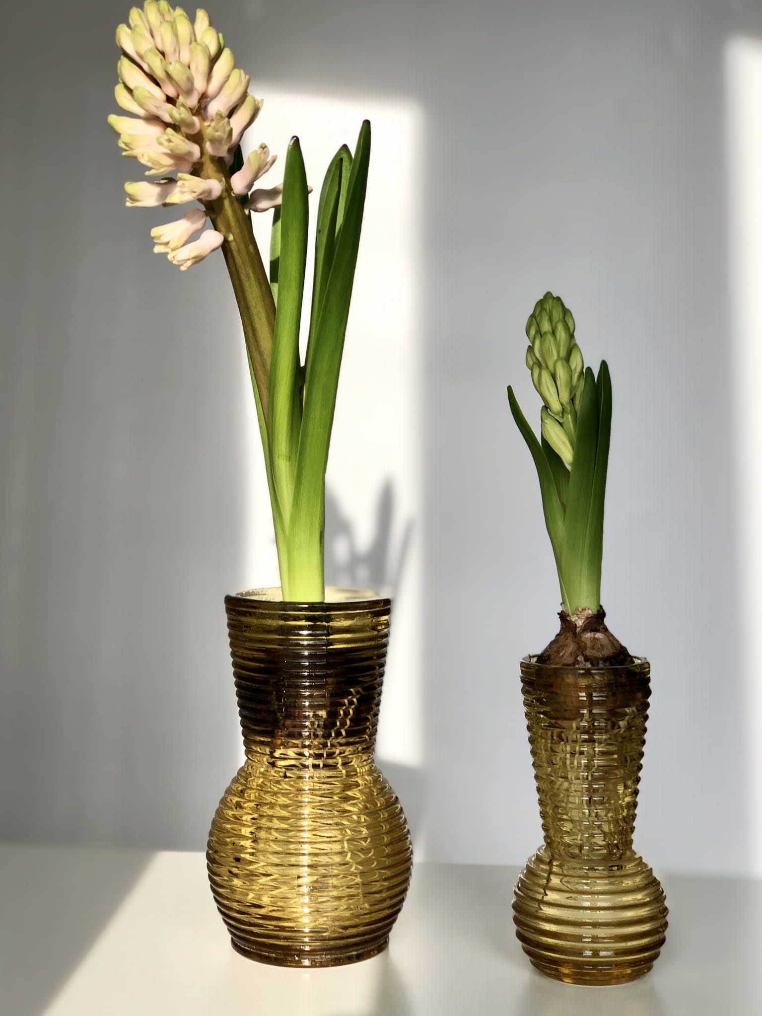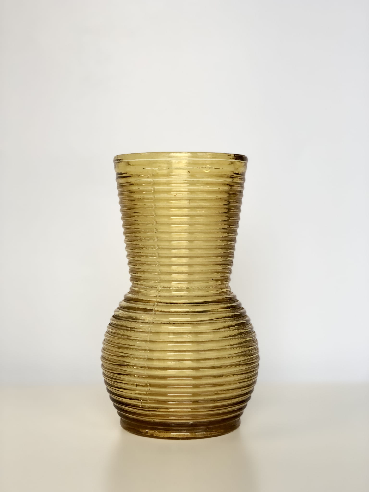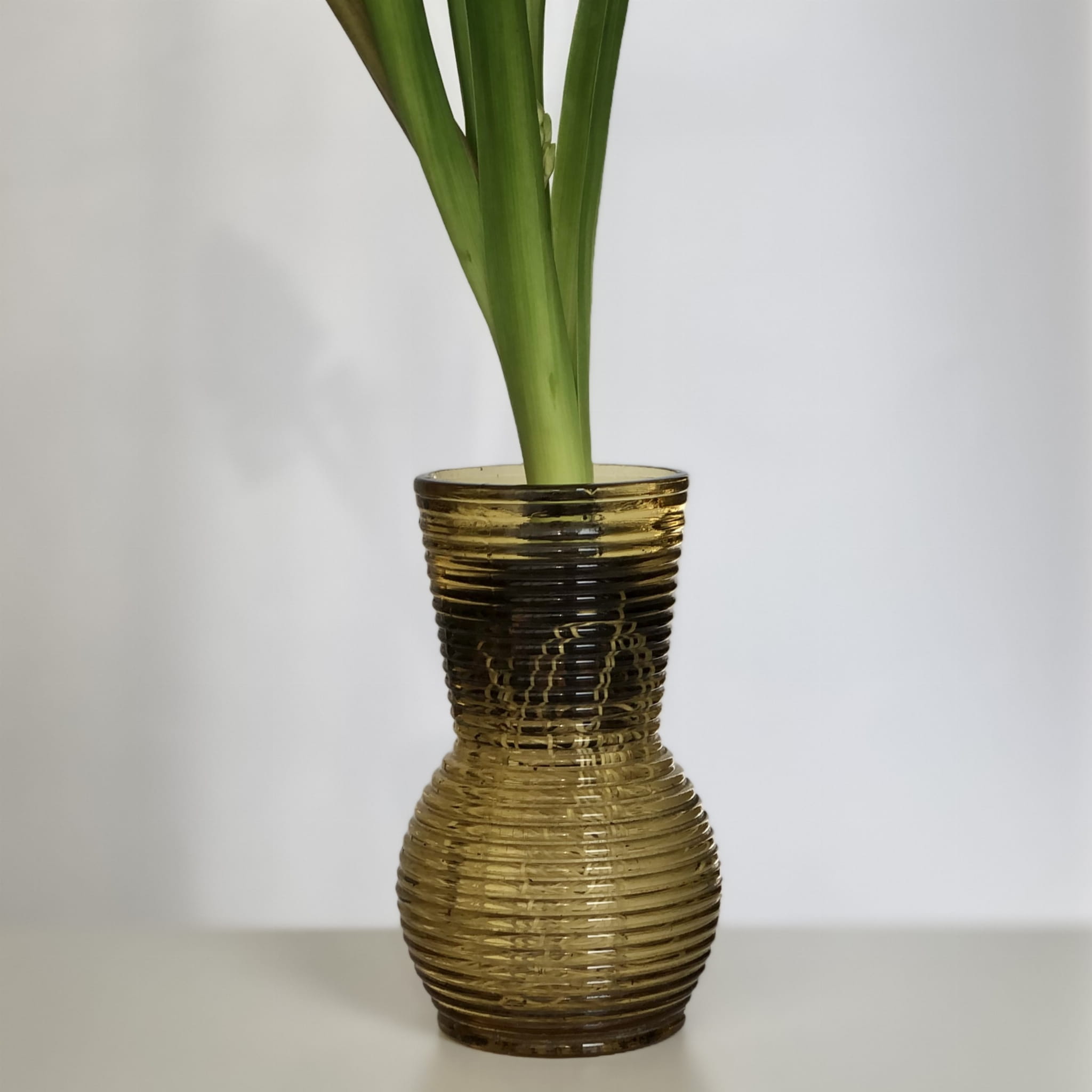 Miodowy wazonik z kultowej serii Pierścienie z huty Prądniczanka z Krakowa.