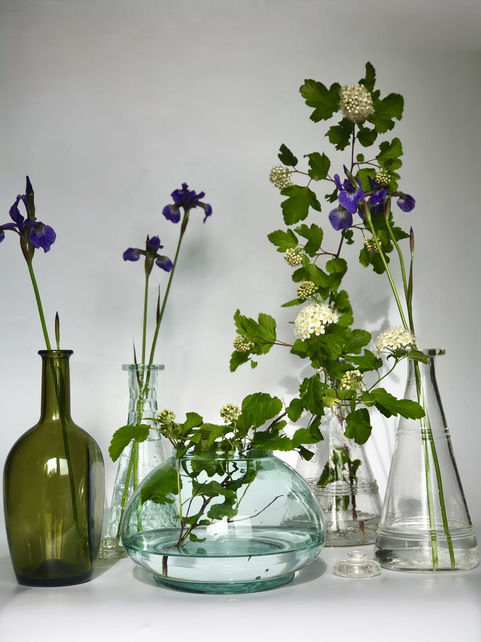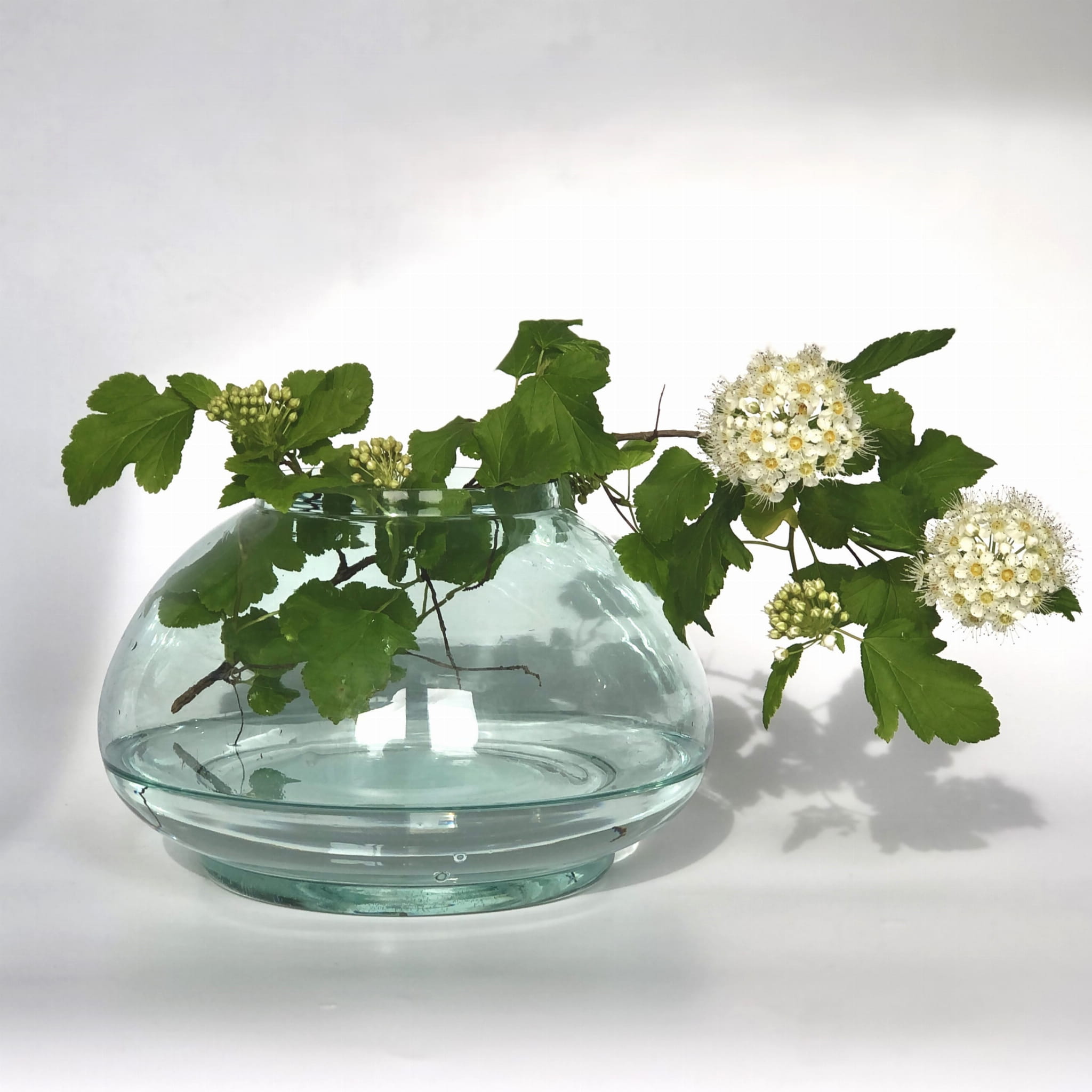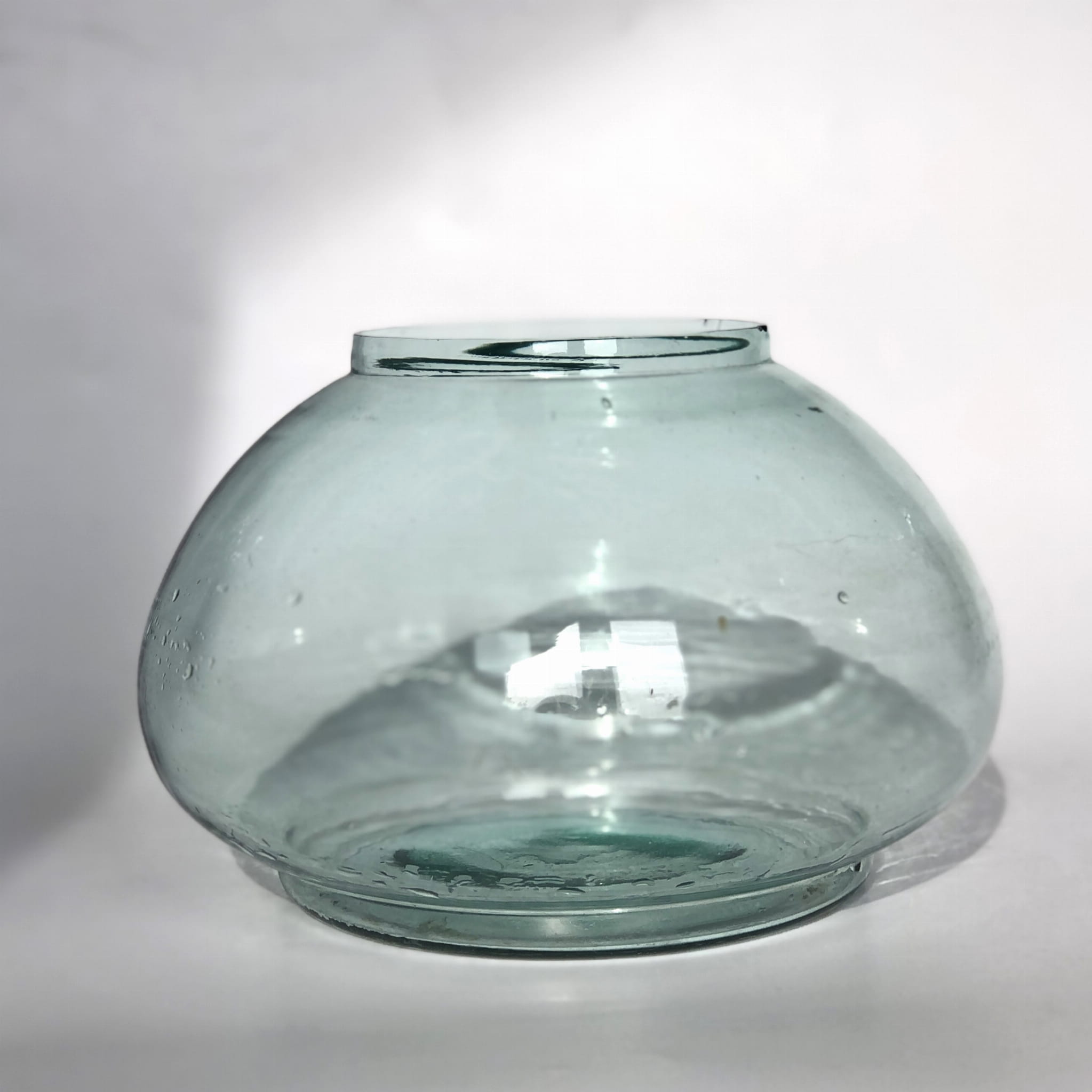 Wazon, który może być również lampionem, lekko zielonkawe szkło, cienkie.