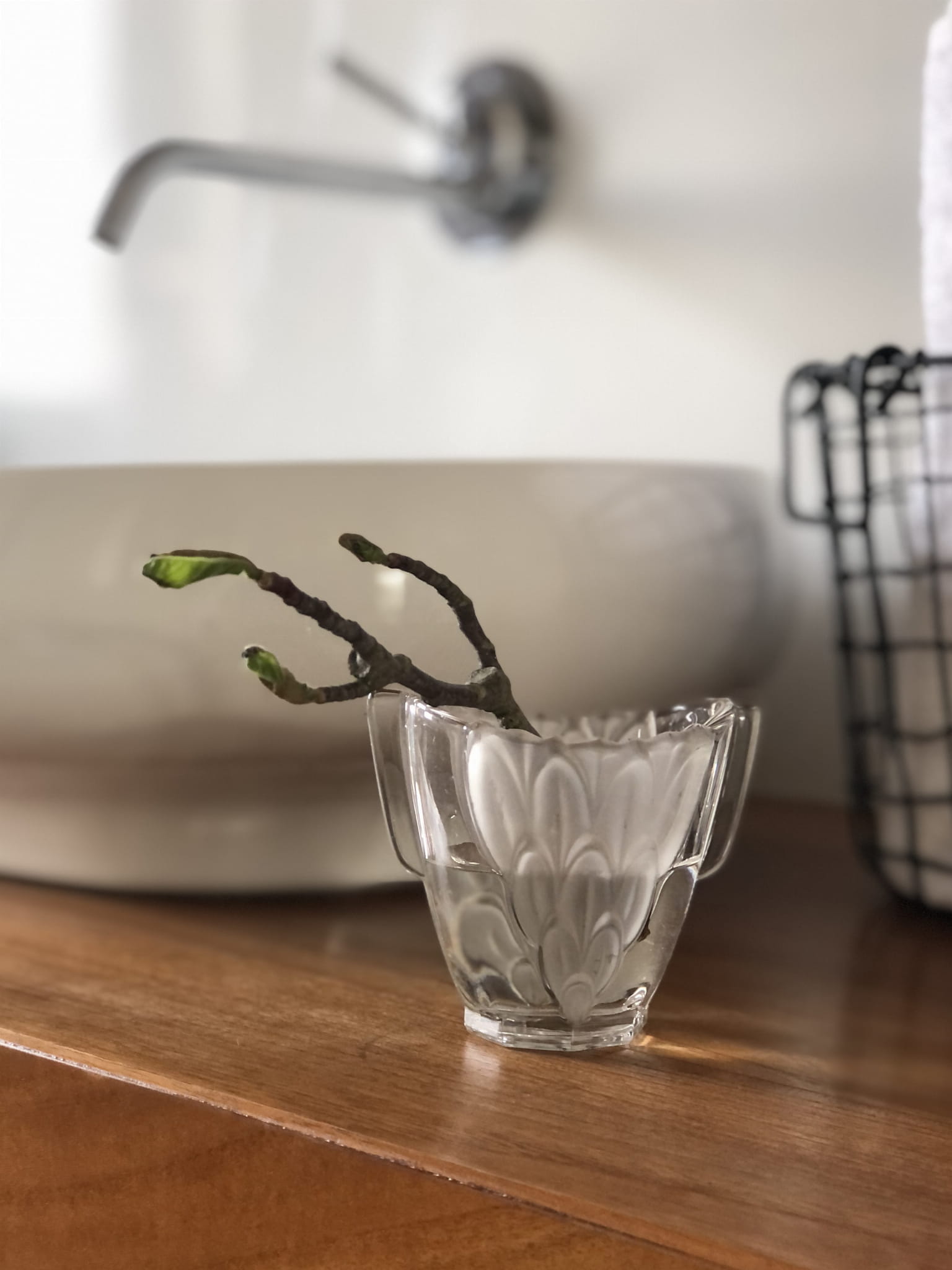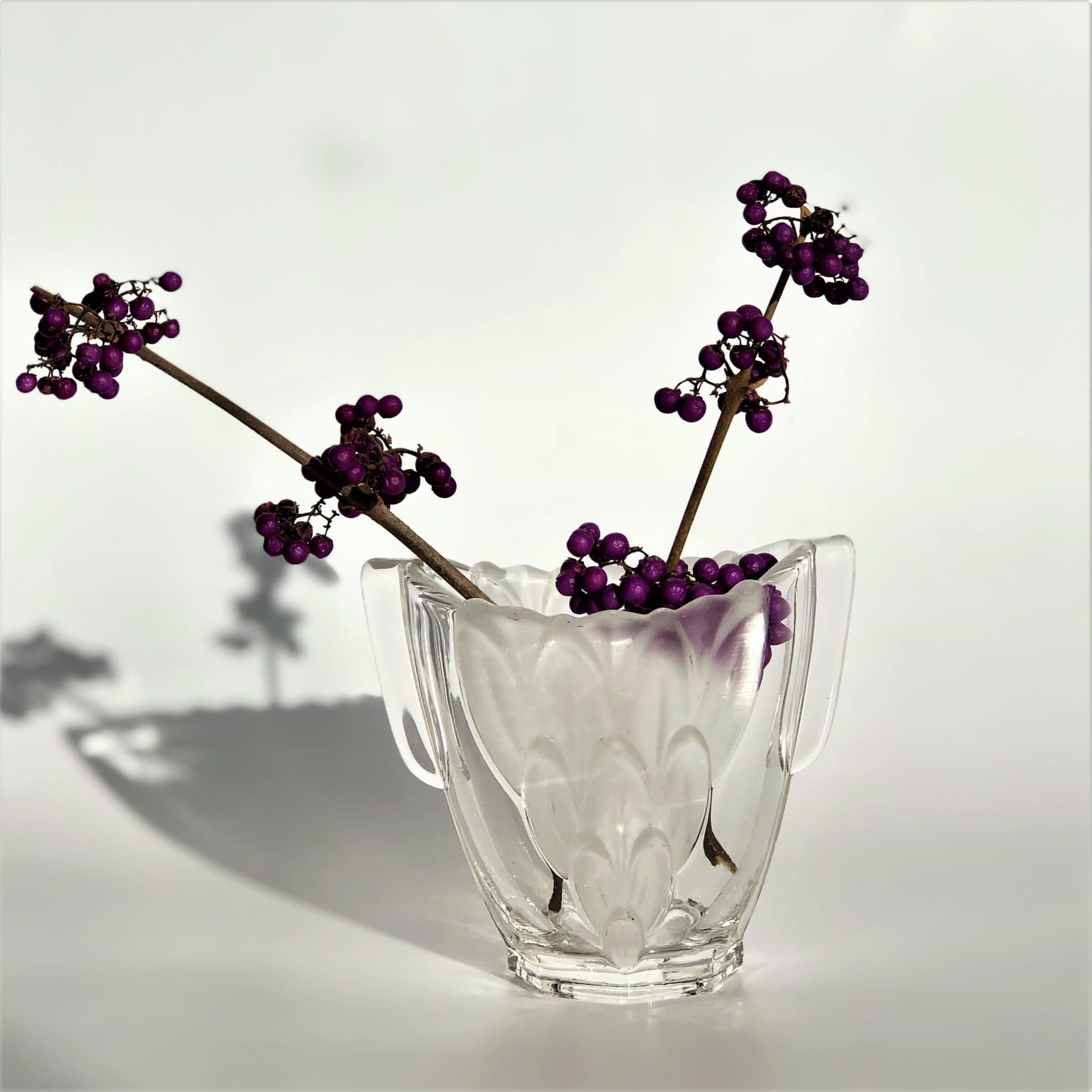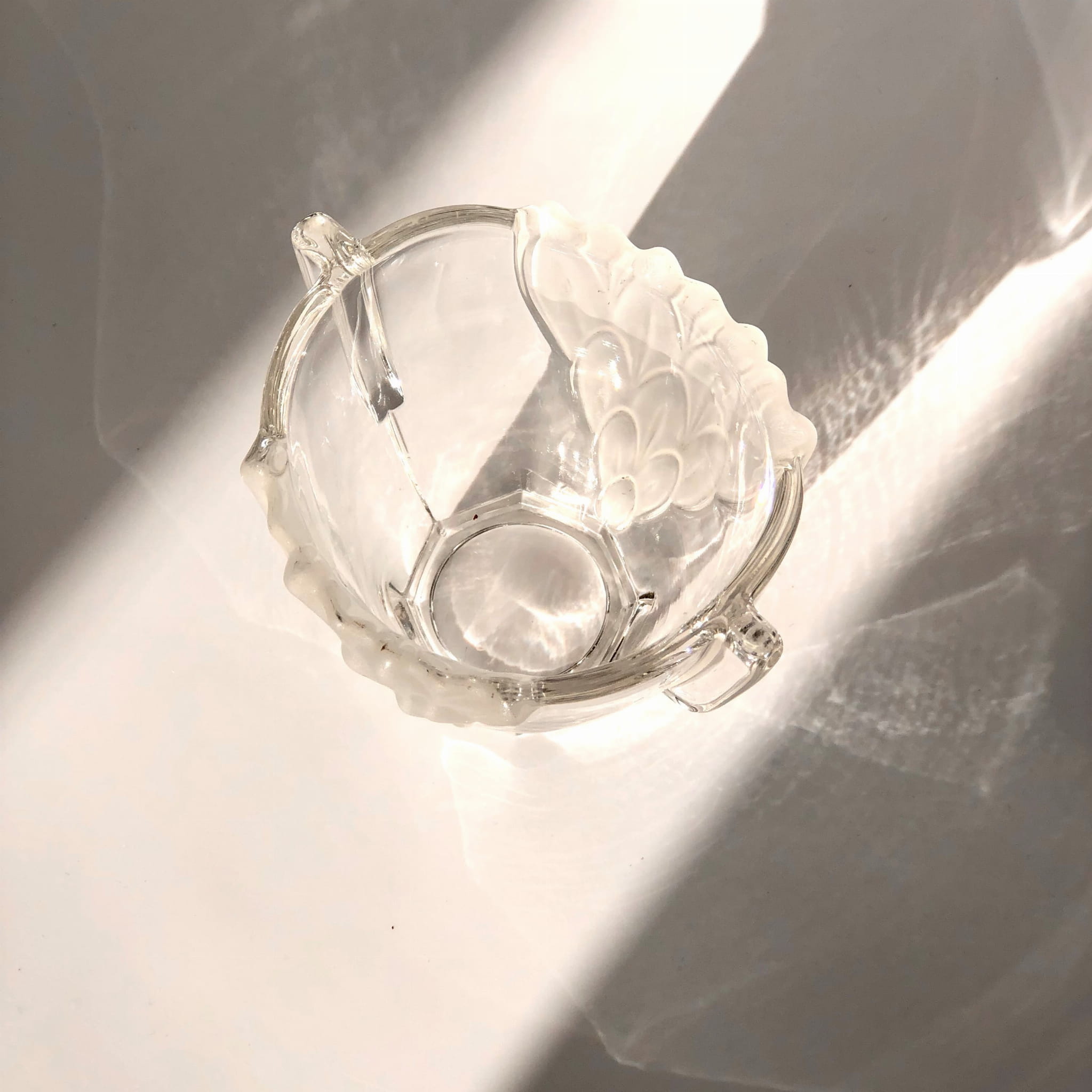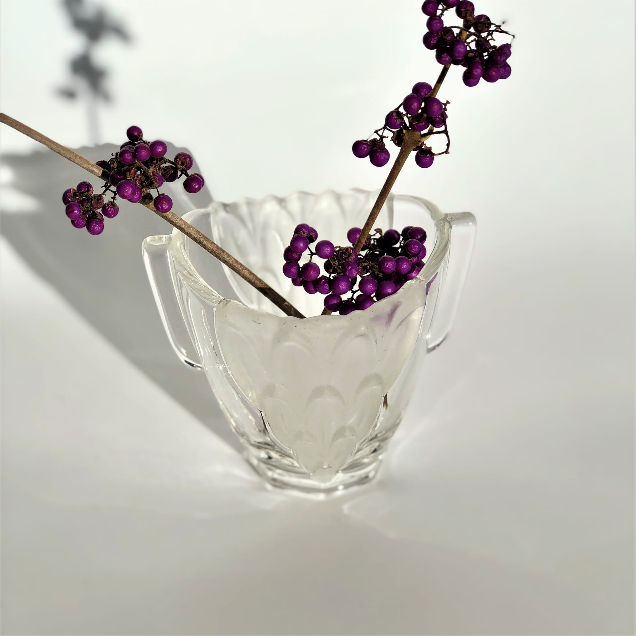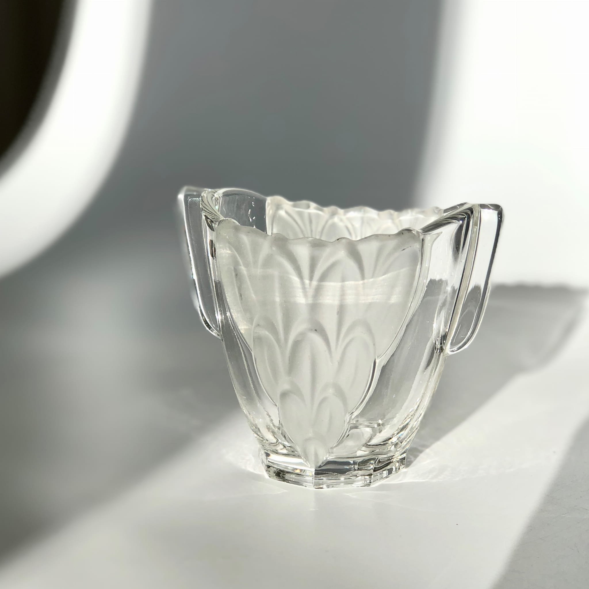 Szklany wazonik w stylu Art Deco, transparentny, ze wstawkami matowego szkła.