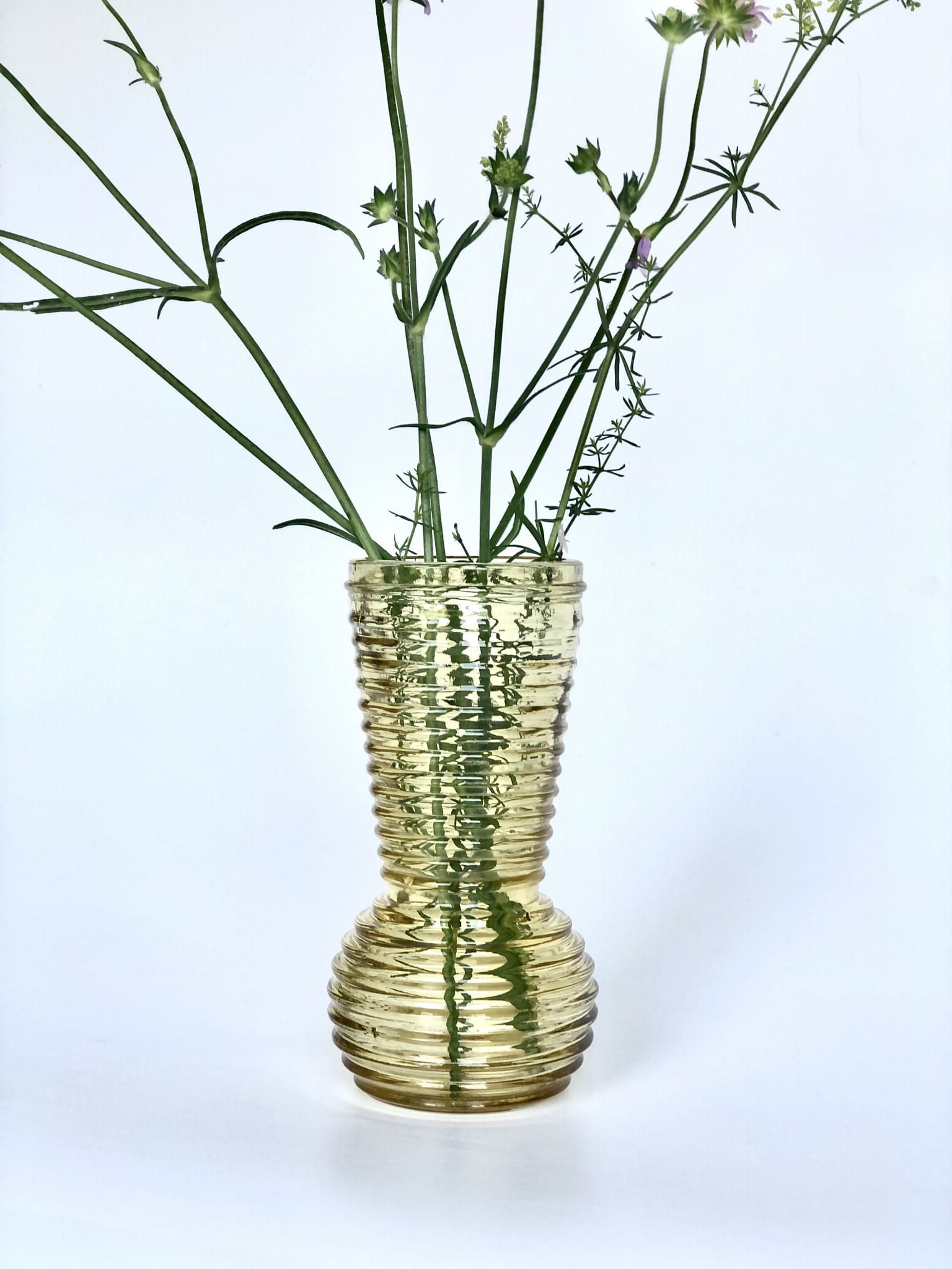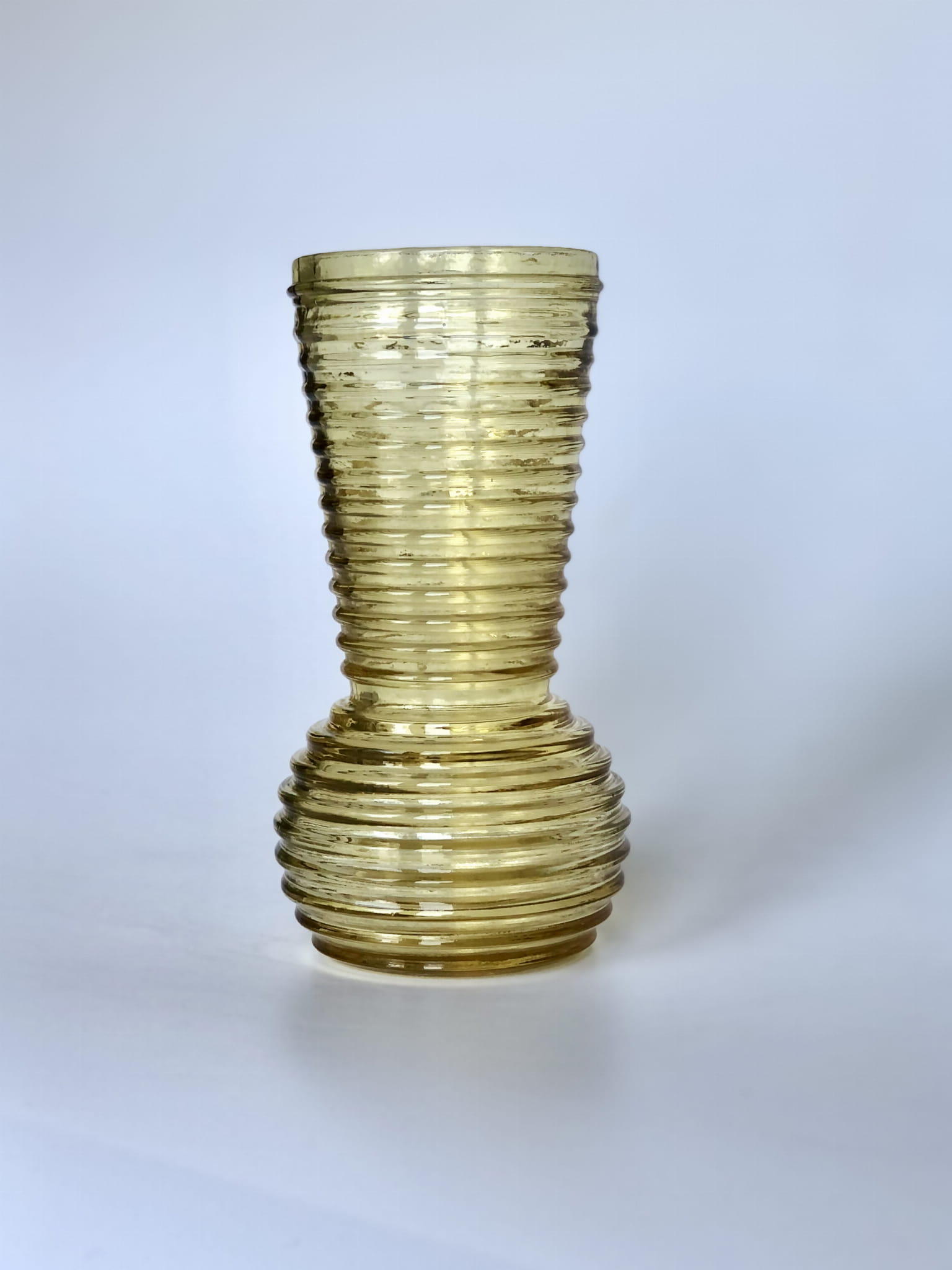 Wazonik miodowy 12cm pochodzi z Huty szkła Prądniczanka z Krakowa, lata 60/70 XX w. Wchodzi w skład popularnej serii Pierścienie.