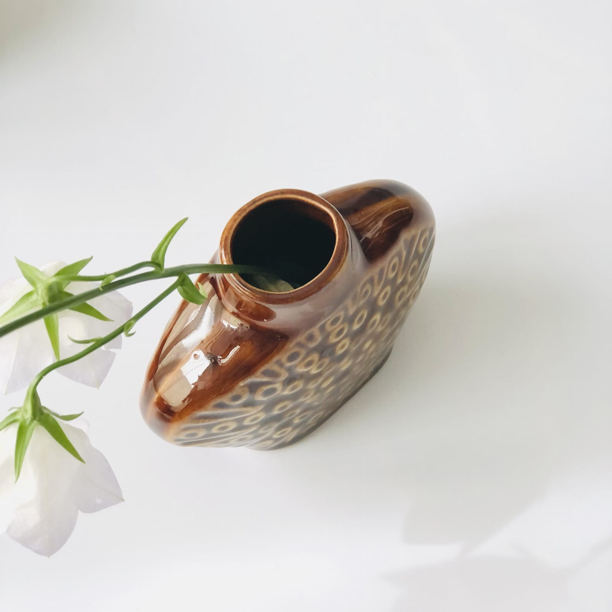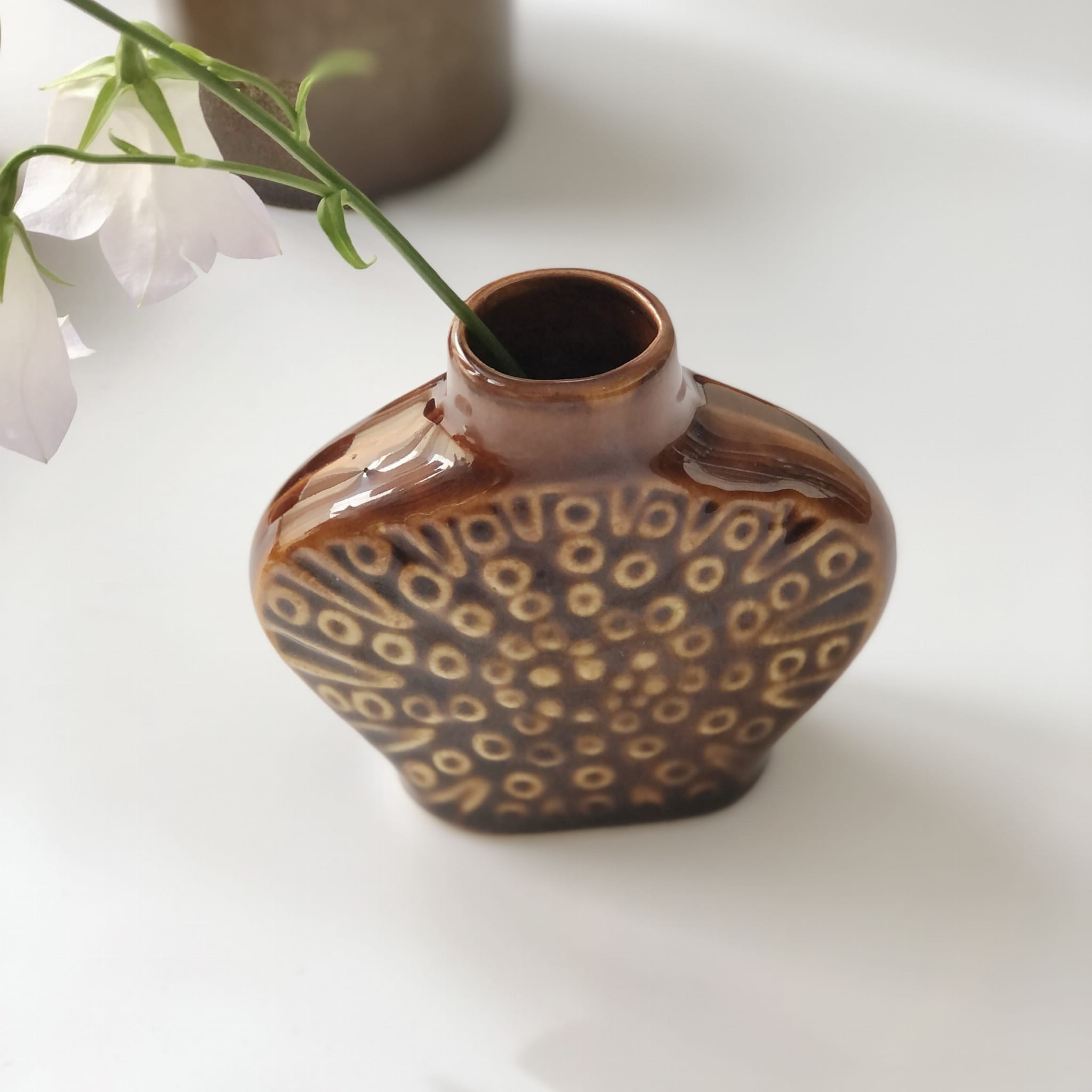 Urokliwy i stylowy wazonik z reliefem powstał w końcu lat sześćdziesiątych w Mirostowickich Zakładach Ceramicznych.