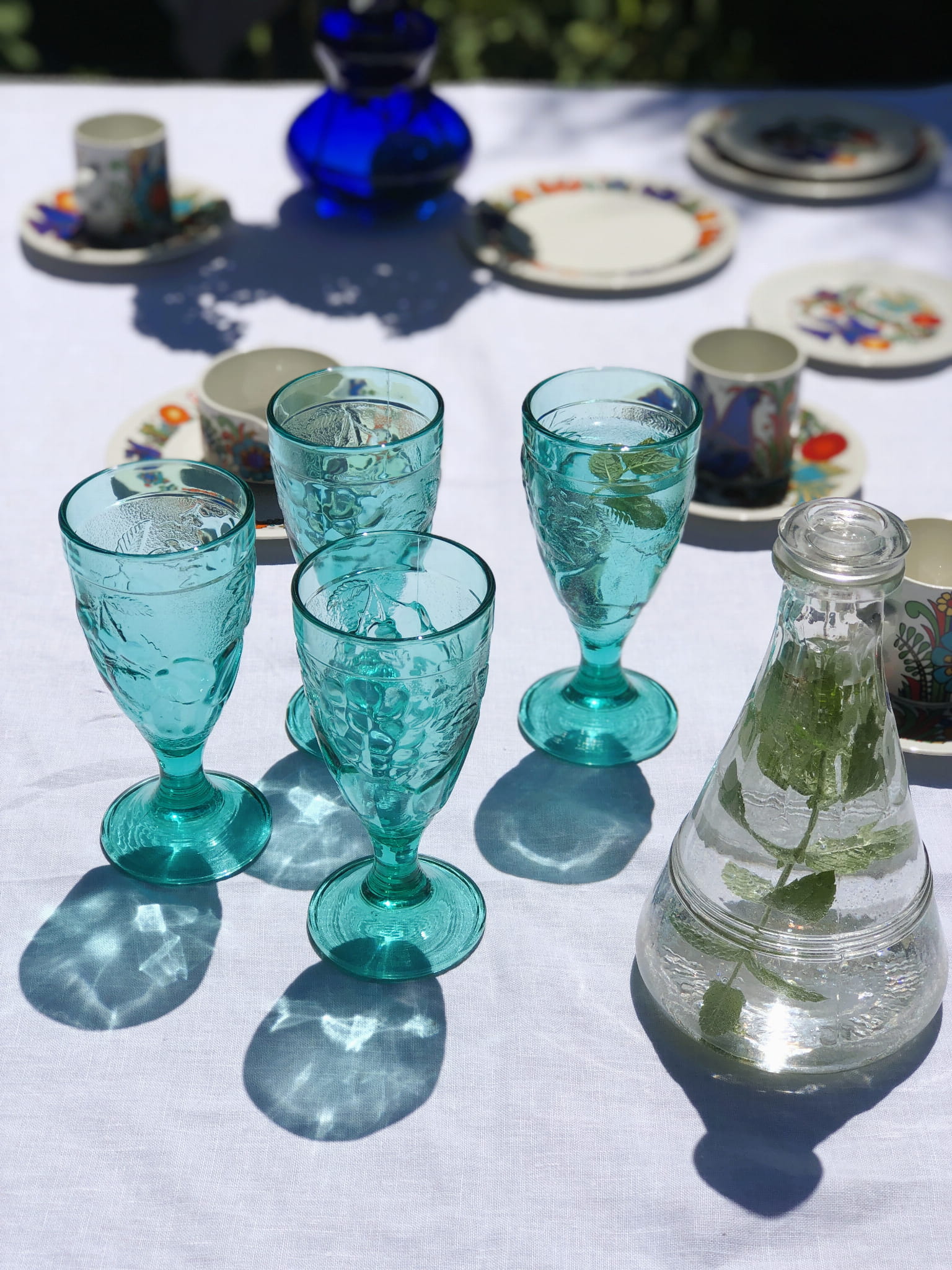 Zestaw 6 kielichów, turkusowe szkło, Luminarc Vintage, lata 70. France.