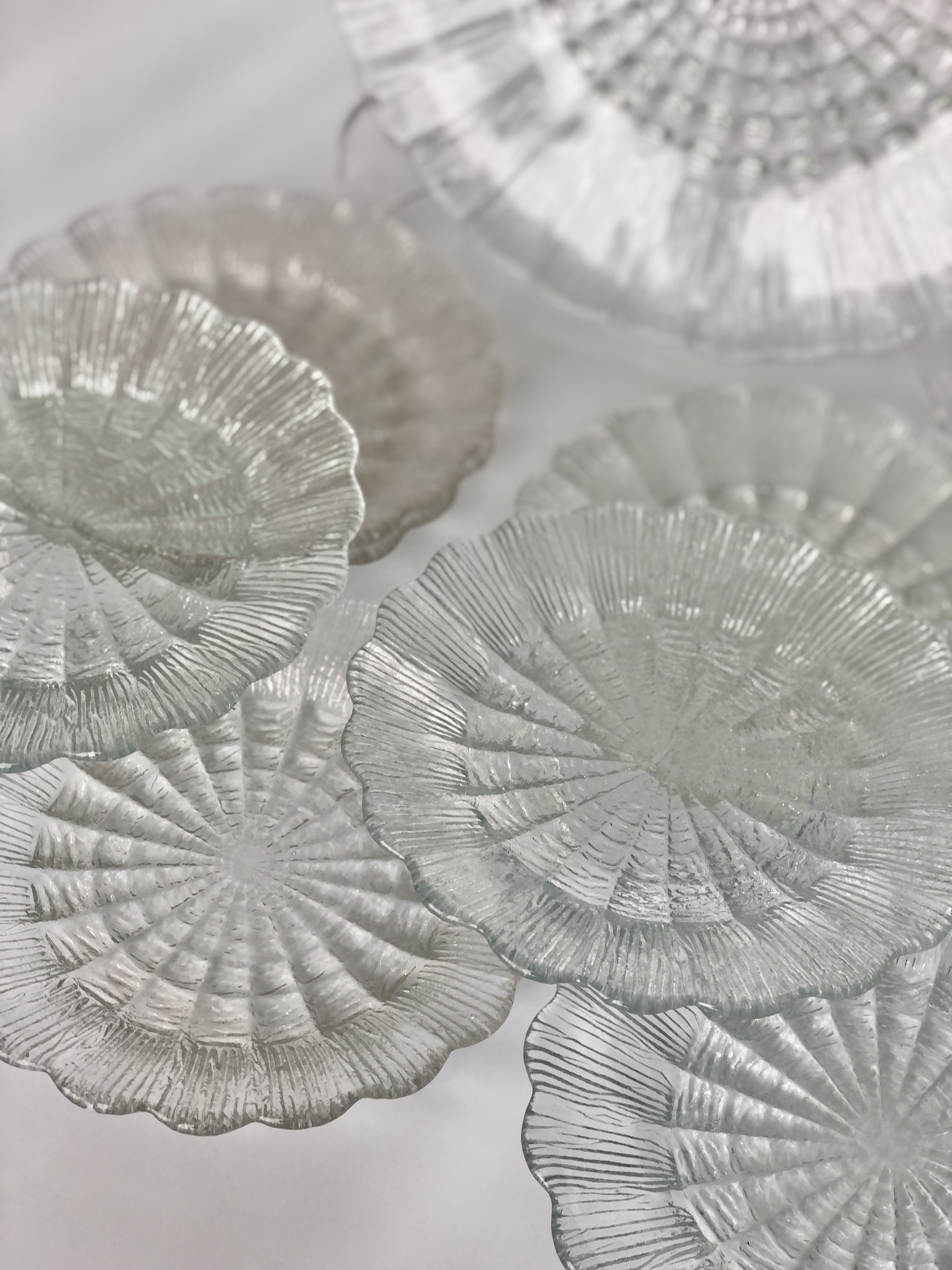 Stan: Bardzo dobry, 3 talerzyki w delikatnie inny odcieniu szkła, chłodniejszym.
