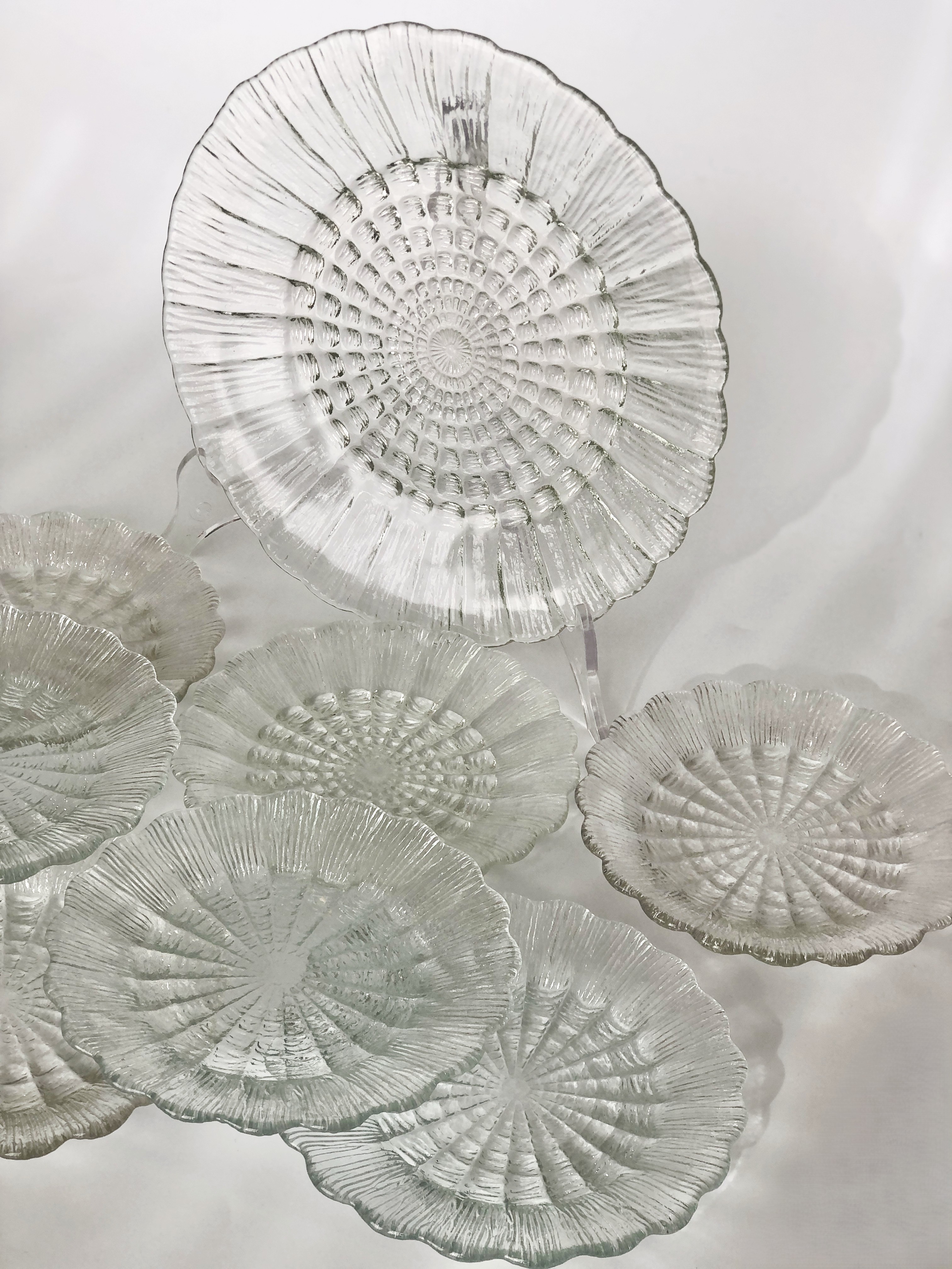 Zestaw składa się z ośmiu talerzyków oraz dużego talerza patery.