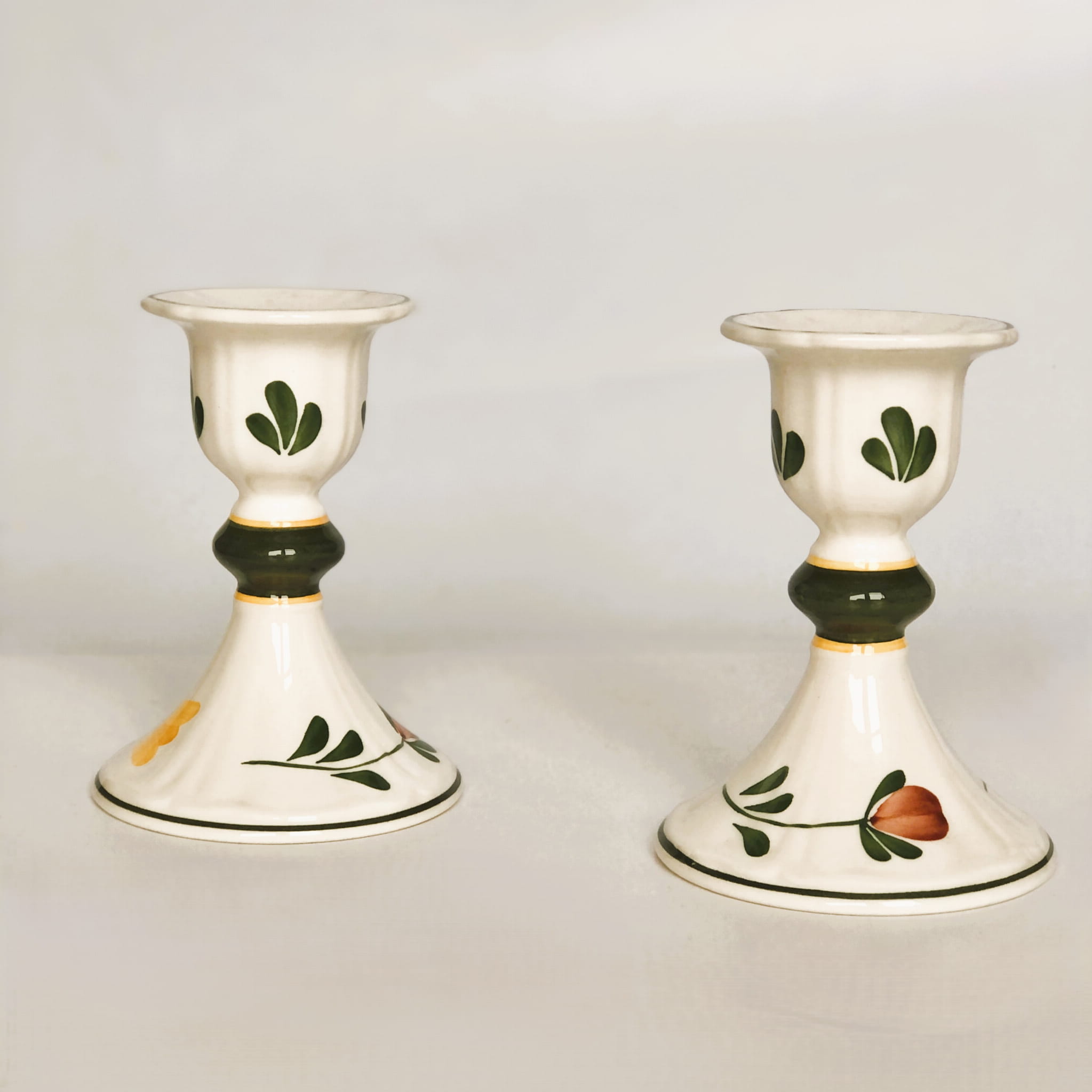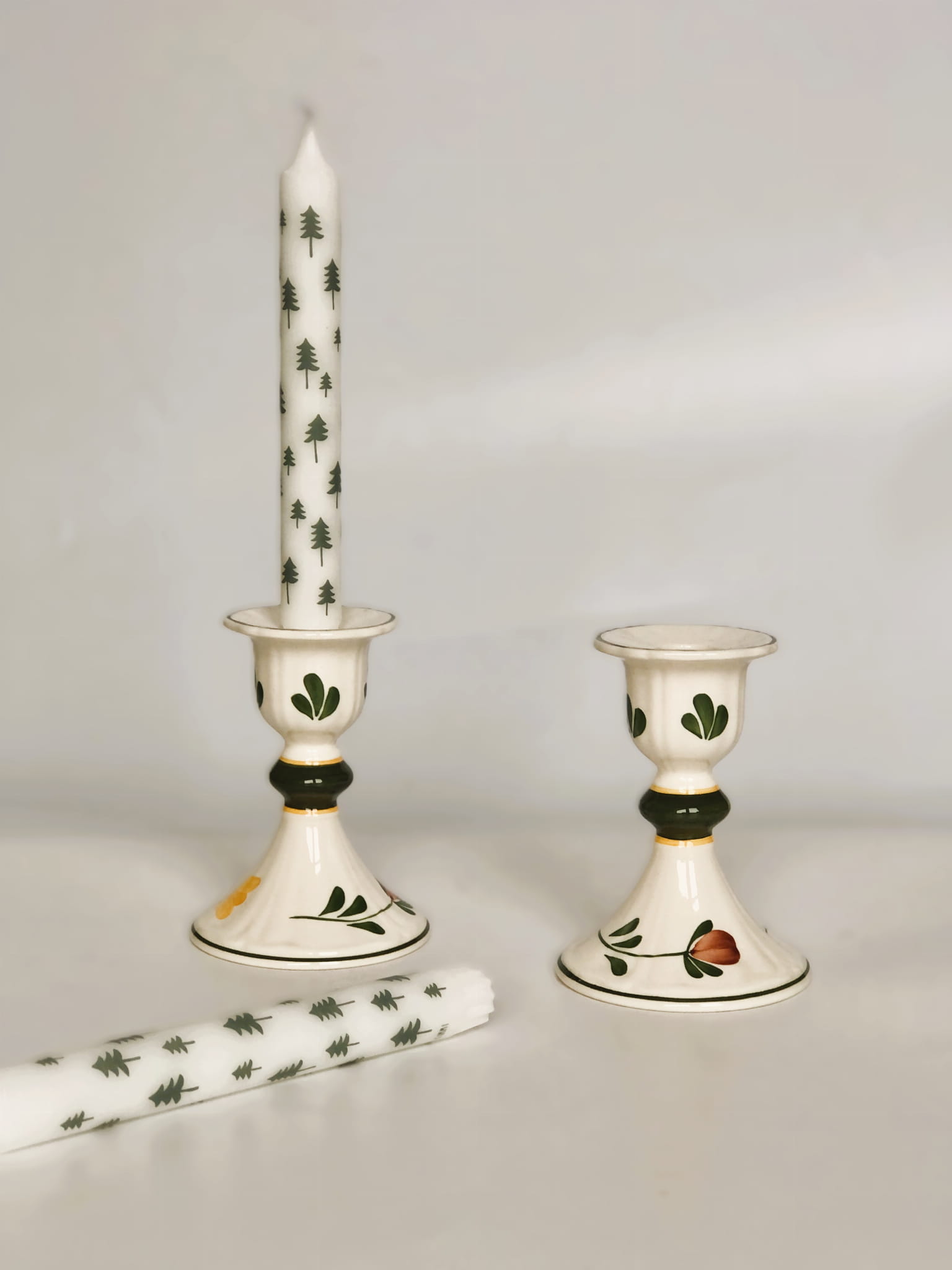 Porcelanowe świeczniki ręcznie malowane w kwiatowe wzory w odcieniach zieleni, bordo i żółtym. Stylowa ozdoba w rustykalnym stylu.