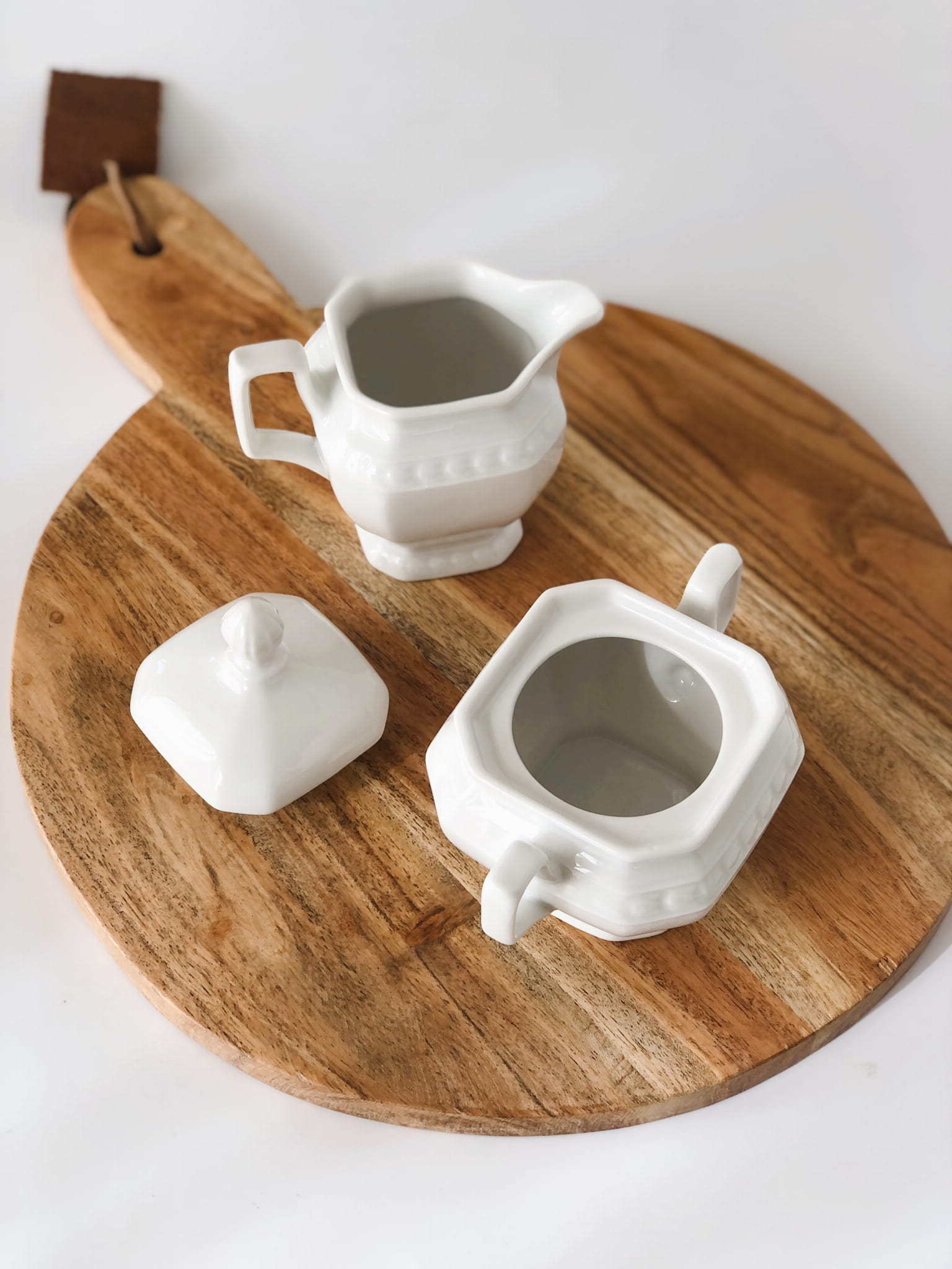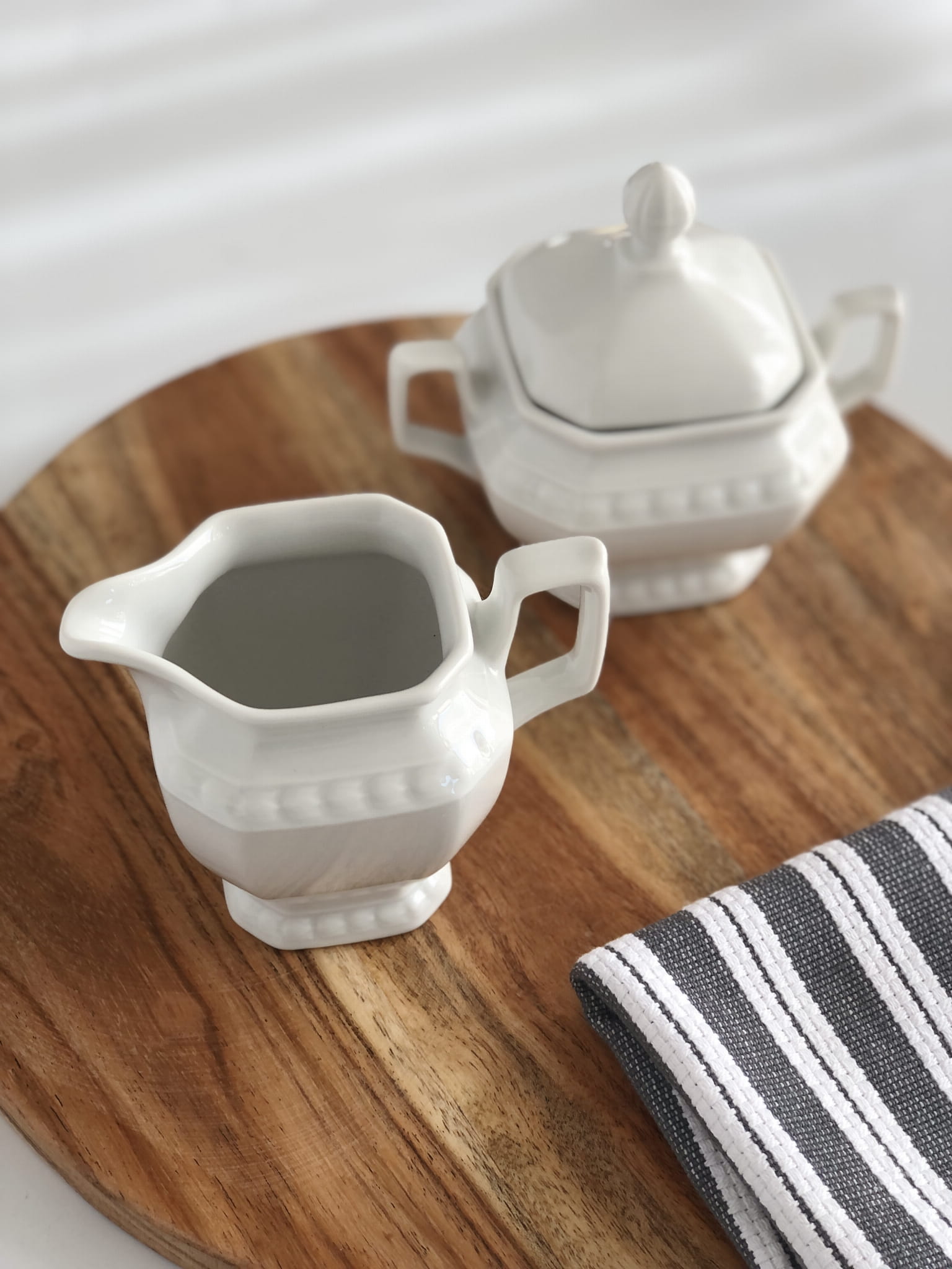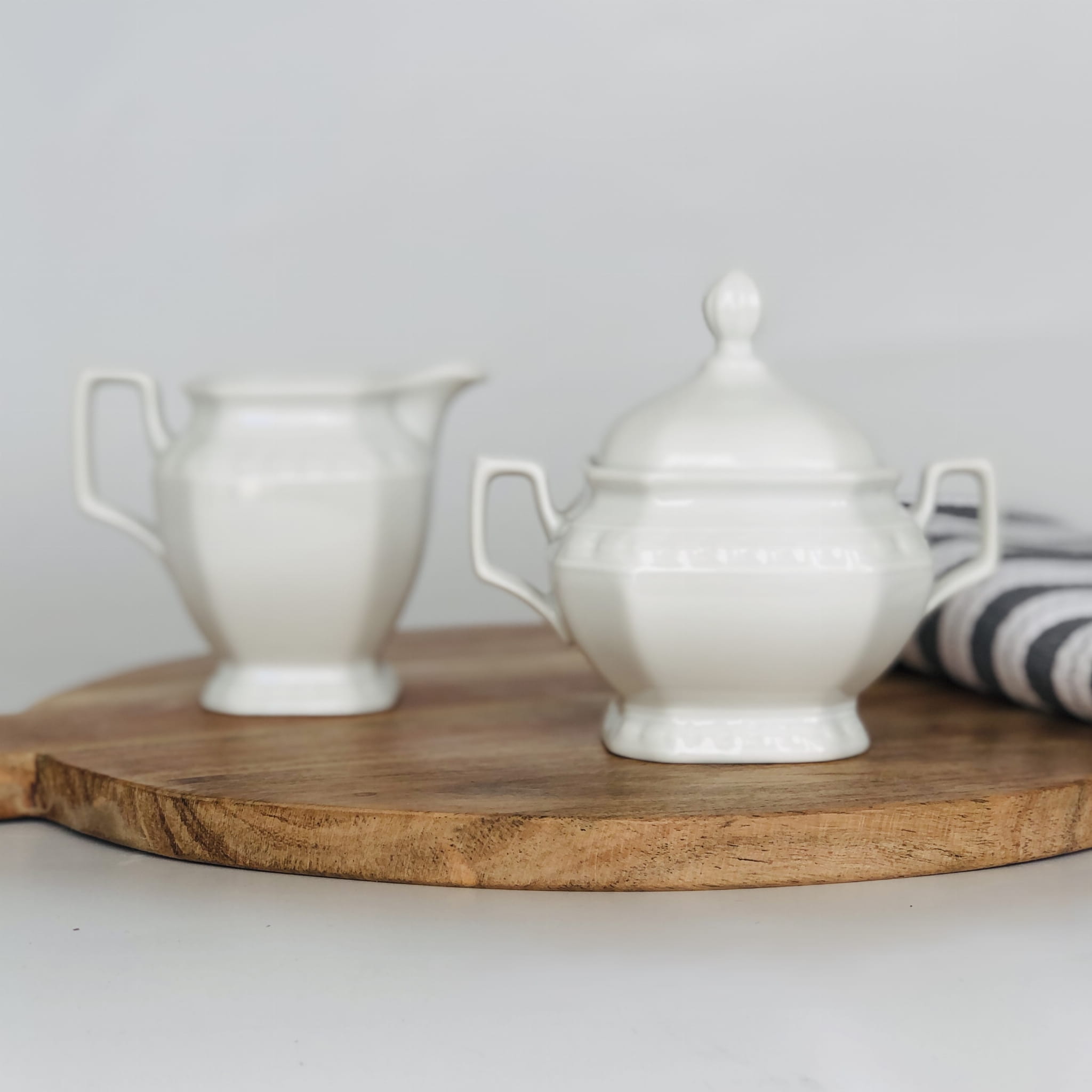 Klasyczny zestaw do kawy lub herbaty zawierający mlecznik oraz cukiernicę.
