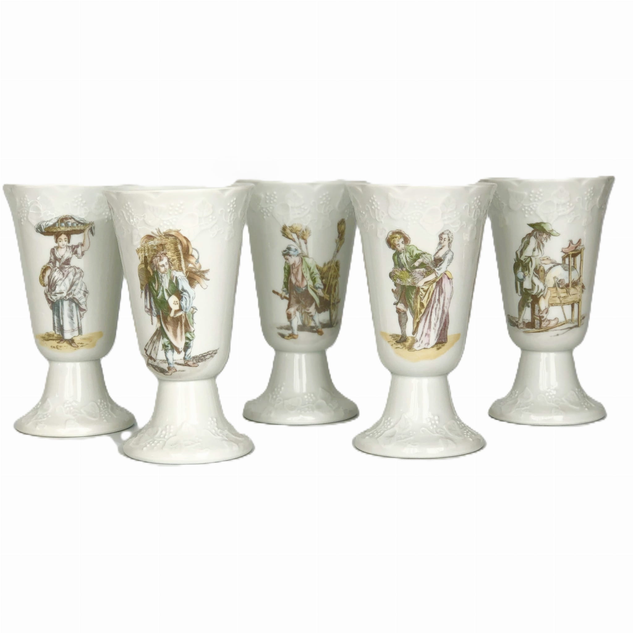 Zestaw porcelanowych kielichów, Lierre Sauvage CNP France, 5 sztuk.