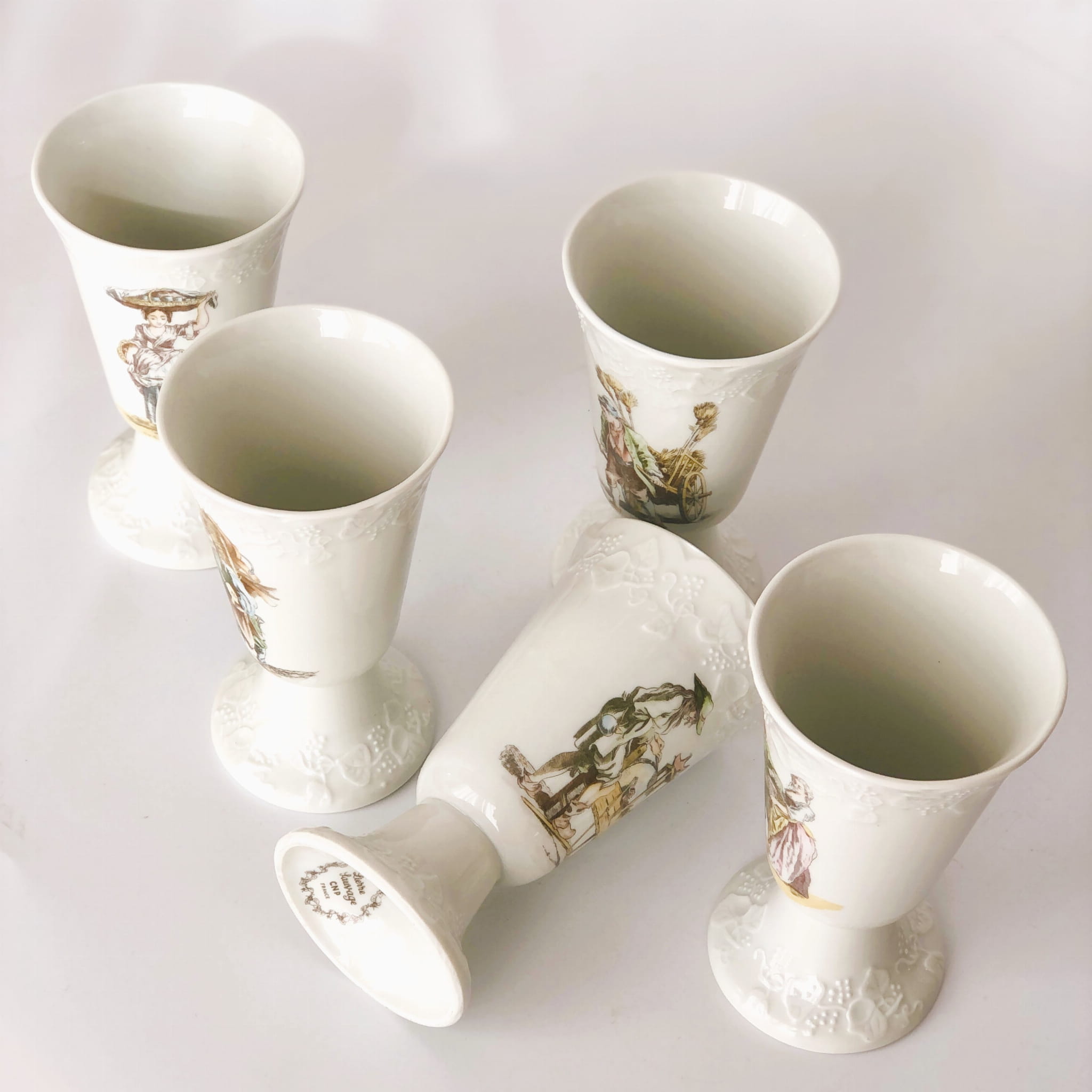 Zestaw porcelanowych kielichów, Lierre Sauvage CNP France, 5 sztuk